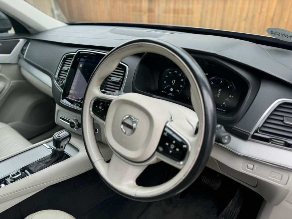 Boasting an impressively low mileage for its 2016 registration, this Volvo XC90 D5 Inscription is a testament to careful ownership, having had only two previous keepers. This Euro 6 compliant, four wheel drive model is powered by a robust 2.0L diesel engine, offering a brisk 0-60mph acceleration in just 7.4 seconds. With seating for seven, it's a practical choice for families, and its clear vehicle history check provides peace of mind. The Inscription trim level enhances the experience, featuring luxurious Nappa Soft Leather Contour Sports upholstery in Blond, a CD player, and seamless integration with Apple CarPlay.Further enhancing its appeal, this XC90 is equipped with a retractable towbar, capable of towing up to 2700 kg, making it ideal for larger loads or caravans. Safety and convenience are paramount, with the Blind Spot Information System (BLIS) including Cross Traffic Alert (CTA) and Rear Collision Mitigation, offering an added layer of security when manoeuvring. These features, combined with the vehicle's low mileage and excellent condition, clearly set it apart from other similar models on the market. .3in active tft crystal drivers information display, 12v socket, 2-zone electronic climate control with cleanzone air quality system with pollen filter, 20in alloy wheels - 10-spoke diamond cut light grey, 2nd row centre armrest with storage and cupholders, 3 spoke leather steering wheel and illuminated gear knob with chrome trim, 9in centre console touch screen, a-pillar parking ticket holder, adaptive brake lights including high level led brake light, adaptive cruise control, adjustable steering force, ambient door and instrument panel lighting, anti-theft alarm including immobiliser - volume sensor and level sensor, auto dimming interior and exterior mirrors, automatic headlight levelling system, b-pillar ventilation, bluetooth handsfree system, bright metal luggage compartment threshold, cargo divider with grocery bag holder, centre console cupholders and storage, chrome door handle deco strip and window surround, chrome lower side mouldings with inscription logo, city safety, colour co-ordinated autofolding heated power door mirrors, dab - digital audio broadcasting radio, distance alert, drive mode settings, driver knee airbag, drivers side lower dashboard storage compartment, dual integrated exhaust pipes, dual stage driver and passenger airbags, first aid kit, front footwell and side step illumination, front led fog lights with cornering function, front and rear power windows, front and rear reading lights - theatre lighting and centre armrest storage illumination, handsfree tailgate opening-closing, headlight cleaning system, heated front seats, height and reach adjustable steering column, hill descent control, hill start assist, home safe and approach lighting, ic - inflatable curtains, isofix attachment, illuminated vanity mirrors with ticket holder, illumination pack, integrated sun curtains - rear doors, key integrated remote control central locking including fuel flap with deadlocking system and auto open-close power windows, keyless drive with remote tag, keyless start, led active bending headlights with adaptive shadow technology, led headlights with active high beam incorporating day running lights, lane keeping aid with driver alert control, leather instrument panel and door tops, linear walnut inlays, lockable glovebox compartment with illumination, locking wheel nuts, luggage compartment illumination, luxury floor mats, matt silver front grille, mechanical child locks - rear doors, nappa leather coloured key integrated remote, outboard armrest with cupholder and storage for third row passengers, passenger airbag cut-off switch, passenger seat with power height adjustment and multi-directional lumbar support, pilot assist - up to 80mph, power driver seat with multi-directional lumbar support and memory for seat and exterior mirrors, power operated tailgate, power parking brake with auto hold function, power passenger seat with memory, private locking for glovebox and tailgate, puddle lights, rain sensor - automatic windscreen wiper activation, rear park assist, road edge detection, road sign information display, roof antenna, roof rails - raised silver, roof spoiler, run-off road protection, sips - side impact protection system, sips airbags - front seats, seatbelt reminder and pretensioners, semi-automatic load cover, sensus connect with high performance sound, sensus navigation, speed limiter, speed sensitive steering, stability and traction control, steering wheel remote infotainment controls, tailgate illumination, tempa spare wheel and jack, three 2nd row individual folding passenger seats with fore-aft adjustment, touring chassis, transmission - sport mode and manual change functions, two 3rd row individual folding passenger seats, tyre pressure monitoring system, underfloor cargo storage, vehicle deceleration control, visible vin plate, voice activated control for key functions, volvo on call with app, whips - whiplash protection system - front seats, warning triangle, xenium pack, power glass tilt and slide panoramic sunroof with sun curtain, retractable towbar, parking camera 360 surround view, blind spot information system - blis with cross traffic alert - cta and rear collision mitigation, dark tinted windows - rear doors and cargo area, winter pack, apple carplay, heated steering wheel, power front seat cushion extensions, cd player, nappa soft leather contour sports - blond