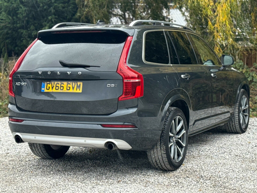 1 FORMER KEEPER2 KEYSSERVICE HISTORY - 6 SERVICESLOGBOOKEquipment:Navigation HDDParking Sensor(s)Climate ControlLeather Trim20'' Alloy WheelsPrivacy GlassThis 2016 Volvo XC90 D5 Momentum is a superb example, having had only two owners from new. This capable seven seat SUV is equipped with a powerful 2.0 litre diesel engine and a four wheel drive system, ensuring excellent performance and control in all conditions. As a Euro 6 compliant vehicle, it meets stringent emission standards. The Momentum trim level offers a refined driving experience, complemented by desirable features such as the Blind Spot Information System with Cross Traffic Alert and Rear Collision Mitigation, providing enhanced safety and awareness.Further enhancing its appeal, this XC90 boasts a 360 degree surround view parking camera system for effortless manoeuvring, alongside the Winter Plus Pack which includes LED headlights and a heated steering wheel for comfort during colder months. The striking 20 inch diamond cut alloy wheels and dark tinted rear windows add to its sophisticated appearance. With a towing weight of 2700 kg, it is well suited for a variety of needs. The impressive 0-60mph acceleration in just 7.4 seconds demonstrates the strong performance this vehicle delivers, setting it apart from many others in its class. in alloy wheels - 5-double-spoke diamond cut-matt tech - black, winter plus pack, parking camera 360 surround view, blind spot information system - blis with cross traffic alert - cta and rear collision mitigation, 12.3in active tft crystal drivers information display, dark tinted windows - rear doors and cargo area, illumination pack, dark flame birch inlays, heated steering wheel, leather-faced - charcoal, 12v socket, 19in alloy wheels - 10-spoke turbine, 2-zone electronic climate control with cleanzone air quality system with pollen filter, 2nd row centre armrest with storage and cupholders, 3 spoke leather steering wheel and illuminated gear knob with chrome trim, 8in active tft crystal drivers instrument display, 9in centre console touch screen, a-pillar parking ticket holder, adaptive brake lights including high level led brake light, adaptive cruise control, adjustable steering force, anti-theft alarm including immobiliser - volume sensor and level sensor, auto dimming interior and exterior mirrors, automatic headlight levelling system, b-pillar ventilation, bluetooth handsfree system, bright metal luggage compartment threshold, cargo divider with grocery bag holder, centre console cupholders and storage, chrome door handle deco strip and window surround, city safety, colour co-ordinated autofolding heated power door mirrors, cross brushed aluminium inlays, dab - digital audio broadcasting radio, distance alert, drive mode settings, driver knee airbag, drivers side lower dashboard storage compartment, dual stage driver and passenger airbags, first aid kit, floor mats, front footwell and side step illumination, front led fog lights with cornering function, front and rear aluminium tread plates, front and rear power windows, front and rear reading lights - theatre lighting and centre armrest storage illumination, handsfree tailgate opening-closing, heated front seats, height and reach adjustable steering column, hill descent control, hill start assist, home safe and approach lighting, ic - inflatable curtains, isofix attachment, illuminated vanity mirrors with ticket holder, key integrated remote control central locking including fuel flap with deadlocking system and auto open-close power windows, keyless drive with remote tag, keyless start, led headlights with active high beam incorporating day running lights, lane keeping aid with driver alert control, lockable glovebox compartment with illumination, locking wheel nuts, luggage compartment illumination, mechanical child locks - rear doors, outboard armrest with cupholder and storage for third row passengers, passenger airbag cut-off switch, passenger seat with power height adjustment and multi-directional lumbar support, piano black waterfall front grille, pilot assist - up to 80mph, power driver seat with multi-directional lumbar support and memory for seat and exterior mirrors, power operated tailgate, power parking brake with auto hold function, private locking for glovebox and tailgate, rain sensor - automatic windscreen wiper activation, rear park assist, road edge detection, road sign information display, roof antenna, roof rails - raised silver, roof spoiler, run-off road protection, sips - side impact protection system, sips airbags - front seats, seatbelt reminder and pretensioners, semi-automatic load cover, sensus connect with high performance sound, sensus navigation, speed limiter, speed sensitive steering, stability and traction control, steering wheel remote infotainment controls, tempa spare wheel and jack, three 2nd row individual folding passenger seats with fore-aft adjustment, touring chassis, transmission - sport mode and manual change functions, twin exhaust pipes with chrome sleeves, two 3rd row individual folding passenger seats, tyre pressure monitoring system, underfloor cargo storage, vehicle deceleration control, visible vin plate, voice activated control for key functions, volvo on call with app, whips - whiplash protection system - front seats, warning triangle