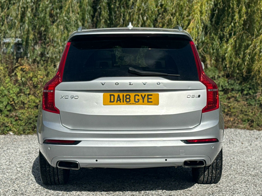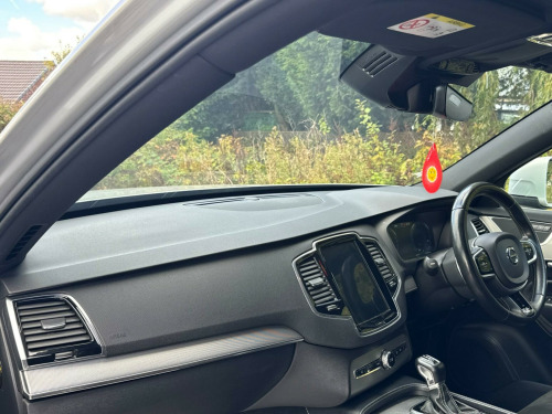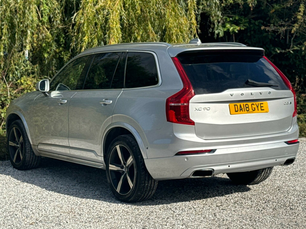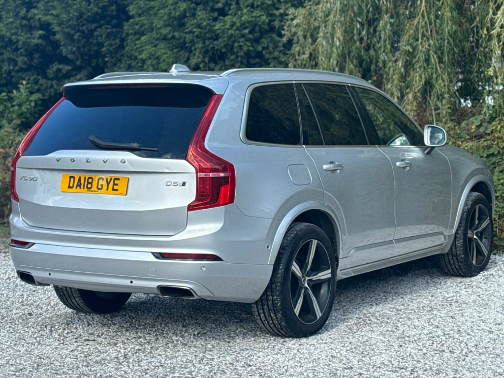 1 FORMER KEEPERSERVICE HISTORY - 5 SERVICES - 3 MAIN DEALER SERVICESLOGBOOKEURO 6ULEZ COMPLIANTOptional Equipment when new£700inc. VATMetallic Paint£700Bright silver metallic-NAPPA / NUBUCK CONTOUR SPORTS (STANDARD R-DESIGN)-Total price when new£53,700inc. VATEquipmentNavigation SystemNavigation HDDParking Sensor(s)Air Conditioning7 SeatsHalf Leather TrimAlloy WheelsPrivacy GlassThis 2018 Volvo XC90 D5 R Design is presented with a clear vehicle history check, offering peace of mind for its next owner. This seven seat, four wheel drive SUV is powered by a 2.0 litre diesel engine, meeting Euro 6 emissions standards. The R Design trim level enhances its already impressive specification, which includes front and rear park assist, LED headlights with active high beam and day running lights, and a 2 zone electronic climate control system featuring CleanZone air quality. Comfort is further elevated by power adjustable front seats, both with memory functions, and the driver's seat also benefits from multi directional lumbar support.The performance of this XC90 is noteworthy, achieving 0 to 60 miles per hour in just 7.4 seconds, demonstrating its capability. This acceleration figure indicates a more responsive driving experience compared to many vehicles in its class. With a substantial towing weight of 2700 kg, this Volvo XC90 is well equipped for a variety of needs, whether for family adventures or practical hauling. nter pack, nappa-nubuck leather contour sports - charcoal, 12.3in active tft crystal drivers information display, 12v socket, 2-zone electronic climate control with cleanzone air quality system with pollen filter, 20in alloy wheels - 5-spoke diamond cut matt black, 2nd row centre armrest with storage and cupholders, 9in centre console portrait touch screen, a-pillar parking ticket holder, adaptive brake lights including high level led brake light, adaptive cruise control, adjustable steering force, ambient door and instrument panel lighting, anti-theft alarm including immobiliser - volume sensor and level sensor, auto dimming interior and exterior mirrors, autofolding heated power door mirrors, automatic headlight levelling system, b-pillar ventilation, black headlining, bluetooth handsfree system, bright metal luggage compartment threshold, cargo divider with grocery bag holder, centre console cupholders and storage, city safety with steer assist, dab - digital audio broadcasting radio, dark tinted windows - rear doors and cargo area, distance alert, drive mode settings, driver knee airbag, drivers side lower dashboard storage compartment, dual integrated exhaust pipes with high gloss black surround, dual stage driver and passenger airbags, first aid kit, front footwell and side step illumination, front led fog lights with cornering function, front and rear door pocket and front cupholder illumination, front and rear park assist, front and rear power windows, front and rear reading lights - theatre lighting and centre armrest storage illumination, handsfree tailgate opening-closing, heated front seats, height and reach adjustable steering column, high gloss black deco lower front bumper, high gloss black mesh front grille with silk metal surround, hill descent control, hill start assist, home safe and approach lighting, ic - inflatable curtains - full length, isofix attachment, illuminated front and rear r-design tread plates, illuminated vanity mirrors with ticket holder, key integrated remote control central locking including fuel flap with deadlocking system and auto open-close power windows, keyless drive with remote tag, keyless start, led headlights with active high beam incorporating day running lights, lane keeping aid with driver alert control, lockable glovebox compartment with illumination, locking wheel nuts, luggage compartment illumination, mechanical child locks - rear doors, metal mesh inlays, multicolour theatre lighting, oncoming lane mitigation, outboard armrest with cupholder and storage for third row passengers, passenger airbag cut-off switch, passenger seat with power height adjustment and multi-directional lumbar support, perforated leather gear knob, perforated leather key integrated remote, perforated leather steering wheel with gear shift paddles, pilot assist - up to 80mph, power driver seat with multi-directional lumbar support and memory for seat and exterior mirrors, power front seat cushion extensions, power operated tailgate, power parking brake with auto hold function, power passenger seat with memory, private locking for glovebox and tailgate, puddle lights, rain sensor - automatic windscreen wiper activation, rear footwell and side step illumination, road edge detection, road sign information display, roof antenna, roof rails - integrated silver, roof spoiler, run-off road protection, sips - side impact protection system, sips airbags - front seats, seatbelt reminder and pretensioners, semi-automatic load cover, sensus connect with high performance sound, sensus navigation, silk metal window trim surround, silver matt door mirrors, speed limiter, speed sensitive steering, sports floor mats, sports pedals, stability and traction control, steering wheel remote infotainment controls, tailgate illumination, tempa spare wheel and jack, three 2nd row individual folding passenger seats with fore-aft adjustment, touring chassis, transmission - sport mode and manual change functions, two 3rd row individual folding passenger seats, tyre pressure monitoring system, underfloor cargo storage, vehicle deceleration control, visible vin plate, voice activated control for key functions, volvo on call with app, whips - whiplash protection system - front seats, warning triangle