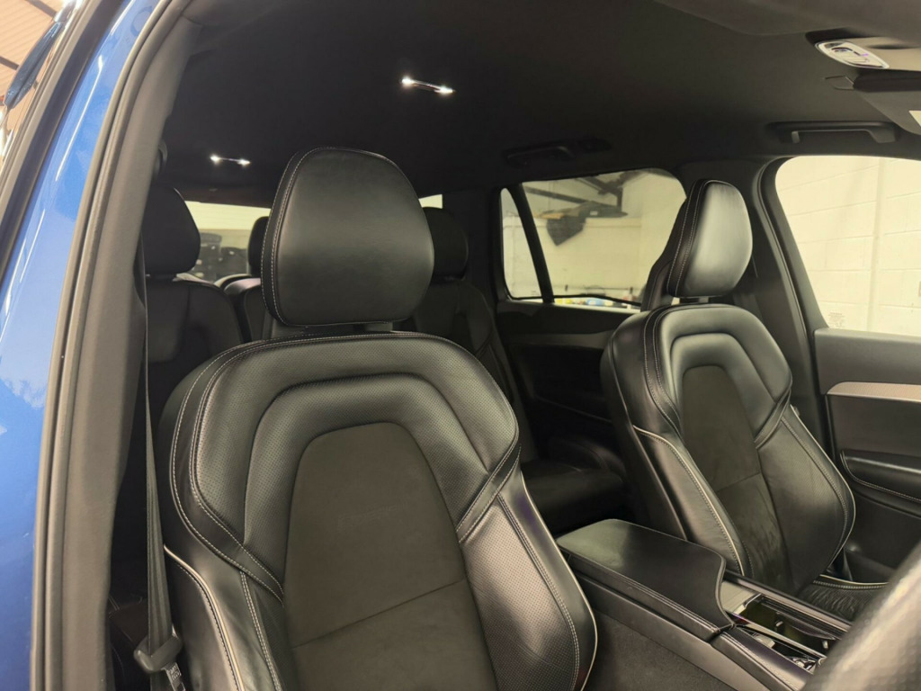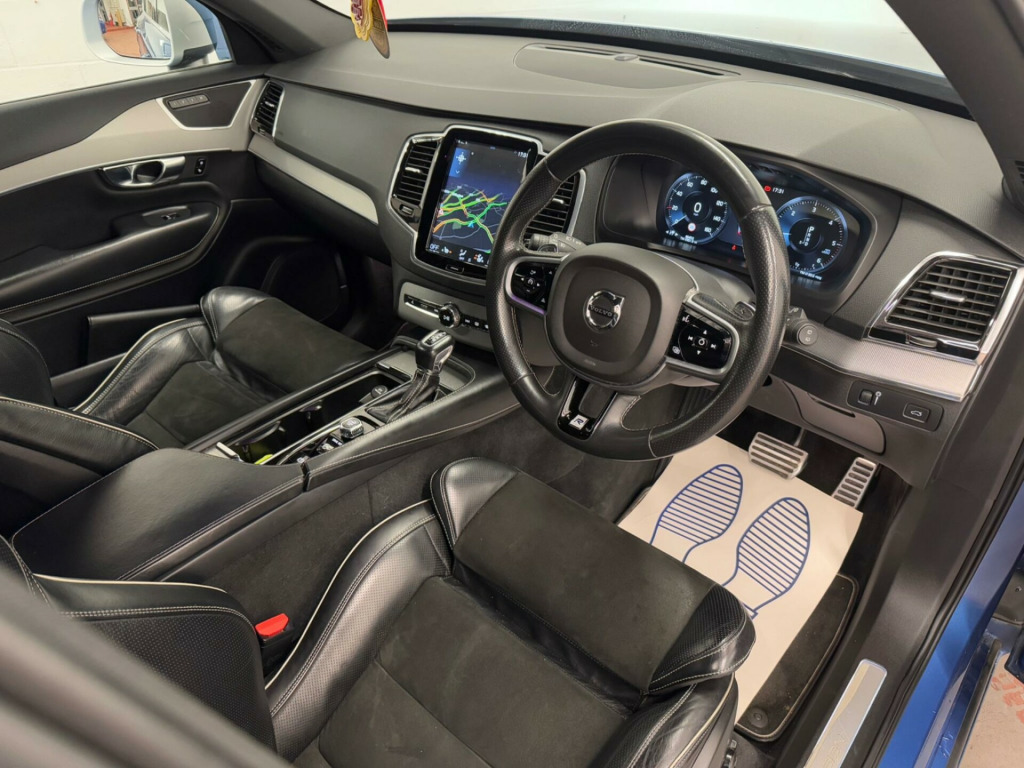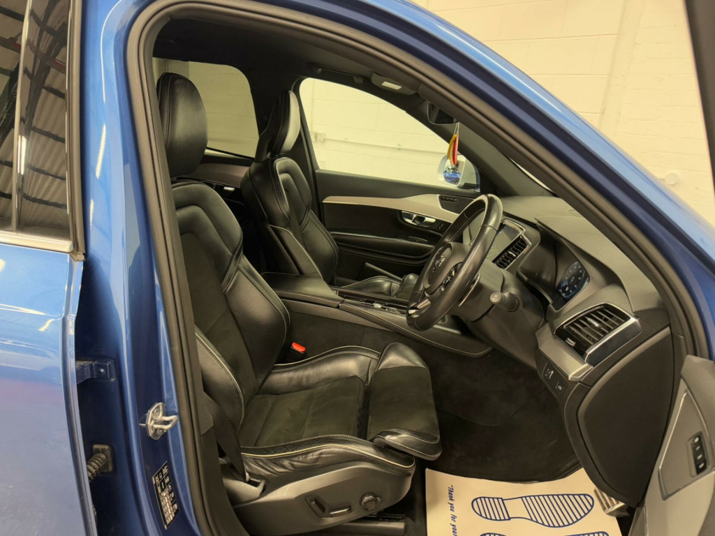 This superb specification XC90 finished in the ever popular Bursting Blue metallic is presented in immaculate condition through out. Complete with a full service history, one previous owner and supplied with both original keys. Spec includes winter pack, heated steering wheel and heated seats, electric folding tow bar, pilot assist, drivers support pack, adaptive cruise control, reverse camera, sat nav, apple car play, auto led day running lights, digital dashboard, park assist, rear blinds .3in active tft crystal drivers information display, 12v socket, 2-zone electronic climate control with cleanzone air quality system with pollen filter, 20in alloy wheels - 5-spoke diamond cut matt black, 2nd row centre armrest with storage and cupholders, 9in centre console portrait touch screen, a-pillar parking ticket holder, adaptive brake lights including high level led brake light, adaptive cruise control, adjustable steering force, ambient door and instrument panel lighting, anti-theft alarm including immobiliser - volume sensor and level sensor, auto dimming interior and exterior mirrors, autofolding heated power door mirrors, automatic headlight levelling system, b-pillar ventilation, black headlining, bluetooth handsfree system, bright metal luggage compartment threshold, cargo divider with grocery bag holder, centre console cupholders and storage, city safety with steer assist, dab - digital audio broadcasting radio, dark tinted windows - rear doors and cargo area, distance alert, drive mode settings, driver knee airbag, drivers side lower dashboard storage compartment, dual integrated exhaust pipes with high gloss black surround, dual stage driver and passenger airbags, first aid kit, front footwell and side step illumination, front led fog lights with cornering function, front and rear door pocket and front cupholder illumination, front and rear park assist, front and rear power windows, front and rear reading lights - theatre lighting and centre armrest storage illumination, handsfree tailgate opening-closing, heated front seats, height and reach adjustable steering column, high gloss black deco lower front bumper, high gloss black mesh front grille with silk metal surround, hill descent control, hill start assist, home safe and approach lighting, ic - inflatable curtains - full length, isofix attachment, illuminated front and rear r-design tread plates, illuminated vanity mirrors with ticket holder, key integrated remote control central locking including fuel flap with deadlocking system and auto open-close power windows, keyless drive with remote tag, keyless start, led headlights with active high beam incorporating day running lights, lane keeping aid with driver alert control, lockable glovebox compartment with illumination, locking wheel nuts, luggage compartment illumination, mechanical child locks - rear doors, metal mesh inlays, multicolour theatre lighting, oncoming lane mitigation, outboard armrest with cupholder and storage for third row passengers, passenger airbag cut-off switch, passenger seat with power height adjustment and multi-directional lumbar support, perforated leather gear knob, perforated leather key integrated remote, perforated leather steering wheel with gear shift paddles, pilot assist - up to 80mph, power driver seat with multi-directional lumbar support and memory for seat and exterior mirrors, power front seat cushion extensions, power operated tailgate, power parking brake with auto hold function, power passenger seat with memory, private locking for glovebox and tailgate, puddle lights, rain sensor - automatic windscreen wiper activation, rear footwell and side step illumination, road edge detection, road sign information display, roof antenna, roof rails - integrated silver, roof spoiler, run-off road protection, sips - side impact protection system, sips airbags - front seats, seatbelt reminder and pretensioners, semi-automatic load cover, sensus connect with high performance sound, sensus navigation, silk metal window trim surround, silver matt door mirrors, speed limiter, speed sensitive steering, sports floor mats, sports pedals, stability and traction control, steering wheel remote infotainment controls, tailgate illumination, tempa spare wheel and jack, three 2nd row individual folding passenger seats with fore-aft adjustment, touring chassis, transmission - sport mode and manual change functions, two 3rd row individual folding passenger seats, tyre pressure monitoring system, underfloor cargo storage, vehicle deceleration control, visible vin plate, voice activated control for key functions, volvo on call with app, whips - whiplash protection system - front seats, warning triangle, retractable towbar, winter pack, nappa-nubuck leather contour sports - charcoal
