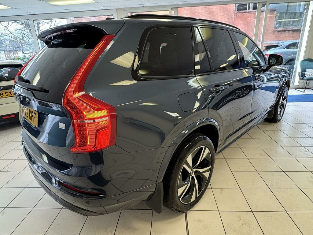 Serviced By Volvo At 11,894m , 24,593m and 37,330 miles in October 2025. 12v Socket - Front Tunnel Console - Rear Passenger Compartment and Luggage Compartment, 9in Centre Console Portrait Touch Screen, Bluetooth Handsfree System, DAB - Digital Audio Broadcasting Radio, Google Automotive Services, Premium Sound by Harman Kardon, Roof Antenna, Volvo Cars Services with App, Wireless-Inductive Mobile Phone Charging, Drive Mode Settings, Front and Rear Park Assist, Parking Camera 360 Surround View with Side Proximity Sensors, Road Sign Information Display, Tyre Pressure Monitoring System, 20in Alloy Wheels - 5-Spoke Diamond Cut - Black, Autofolding Heated Power Door Mirrors, Front and Rear Power Windows, Heated Windscreen, High Gloss Black Door Mirrors and Window Surround, High Gloss Black Front and Rear Bumper Deco, High Gloss Black Mesh Front Grille with Surround, Locking Wheel Nuts, Power Glass Tilt and Slide Panoramic Sunroof with Sun Curtain, Recharging Port Located in Nearside Front Wing, Roof Rails - Integrated High Gloss Black, Roof Spoiler, Tyre Sealant Kit and Compressor, Active Bending Headlights with Adaptive Shadow Technology, Automatic Headlight Levelling System, Automatic LED Headlights with Active High Beam incorporating Day Running Lights, Headlight Cleaning System, Home Safe and Approach Lighting, Puddle Lights, 12.3in Progressive Driver Display, 2nd Row Centre Armrest with Cupholders, 3 Spoke Tailored Steering Wheel with Chrome Trim, 3rd Row Air Conditioning, 4-Zone Electronic Climate Control, Advanced Interior Air Cleaner PM 2.5, Ambient Door and Instrument Panel Lighting, A-Pillar Parking Ticket Holder, Autodimming Interior and Exterior Mirrors, B-Pillar Ventilation, Bright Metal Luggage Compartment Threshold, Centre Console Cupholders and Storage, Floor Mats, Front and Rear Door Pocket and Front Cupholder Illumination, Front and Rear Reading Lights and Centre Armrest Storage Illumination, Front Footwell and Side Step Illumination, Front Seat Cushion Extensions, Handsfree Tailgate Opening-Closing, Heated Front and Rear Seats, Heated Steering Wheel, Height and Reach Adjustable Steering Column, Illuminated Recharge Aluminium Tread Plates, Illuminated Vanity Mirrors with Ticket Holder, Integrated Sun Curtains - Rear Doors, Load Protection Net, Lockable Glovebox Compartment with Illumination, Luggage Compartment Divider with Grocery Bag Holder, Luggage Compartment Illumination, Multi-Directional Lumbar Support, Outboard Armrest with Cupholder and Storage for Third Row Passengers, Power Driver Seat with Memory for Seat and Exterior Mirrors, Power Folding 2nd Row Headrests, Power Operated Tailgate, Power Passenger Seat with Memory, Private Locking for Glovebox and Tailgate, Rain Sensor - Automatic Windscreen Wiper Activation, Rear Footwell and Side Step Illumination, Semi-Automatic Load Cover, Steering Wheel Remote Infotainment Controls, Tailgate Illumination, Tailored Instrument Panel and Door Tops with Contrast Stitching, Three 2nd Row Individual Folding Passenger Seats with Fore-Aft Adjustment, Two 3rd Row Individual Folding Passenger Seats, Underfloor Luggage Compartment Storage, 7m 10amp Charge Cable with 3-Pin Plug and 7m 1-Phase 16amp Type 2-Mode 3 Charge Cable, Adjustable Steering Force, Electric Rear Axle Drive, Speed Limiter, Speed Sensitive Steering, Touring Chassis, Adaptive Brake Lights including High Level LED Brake Light, Anti-Theft Alarm including Immobiliser - Volume Sensor and Level Sensor, Care Key with User Defined Top Speed, City Safety with Steering Support, Driver Alert Control with Lane Keeping Aid, Driver Assistance - Pilot Assist and Adaptive Cruise Control, Driver Awareness, Driver Knee Airbag, Dual Stage Driver and Passenger Airbags, First Aid Kit, Hill Descent Control, Hill Start Assist, IC - Inflatable Curtains - Full Length, ISOFIX Attachment - 2nd Row Outer Seats, Key Integrated Remote Control Central Locking including Fuel Flap with Deadlocking System and Auto Open-Close Power Windows, Keyless Drive, Low Speed Exterior Sound Speaker, Oncoming Lane Mitigat.