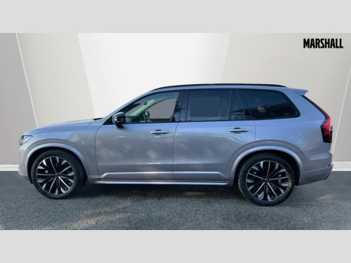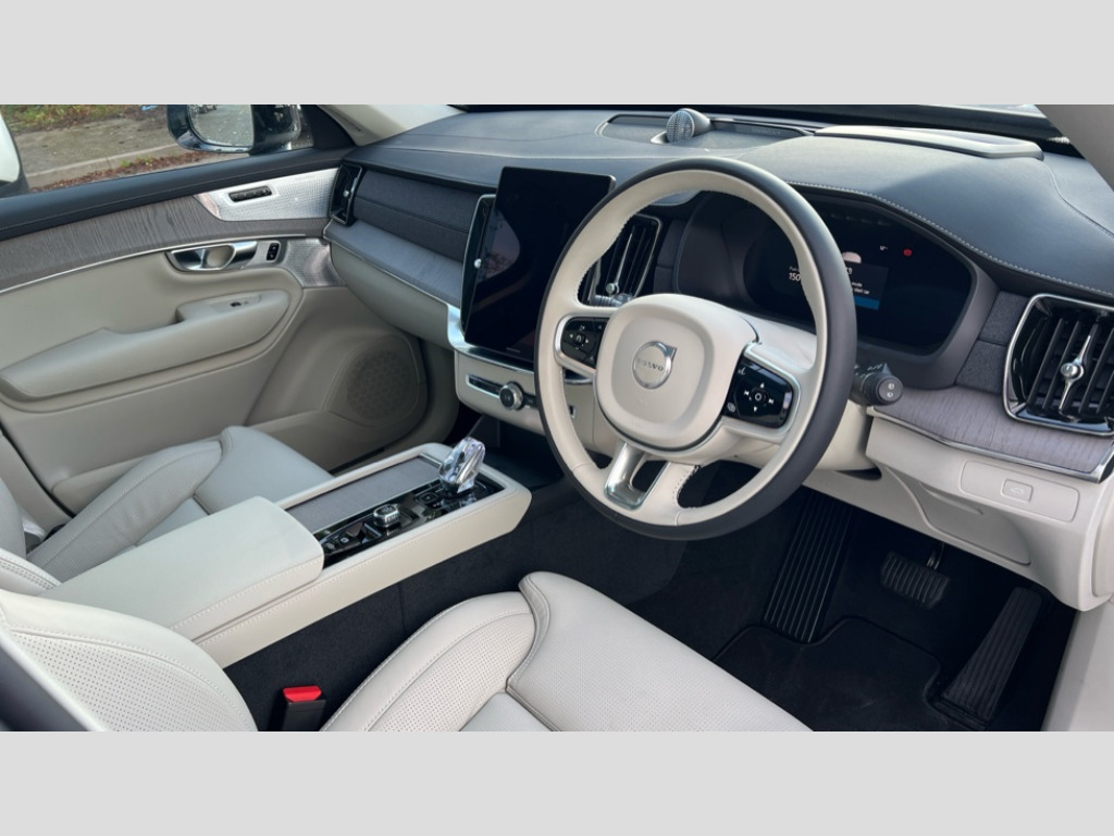 Volvo XC90 2.0 B5P Ultra Dark 5dr AWD Geartronic 11.2" centre console touch screen, 12.3" Progressive Driver Display, 360 degree surround view parking camera with side proximity sensors, Adjustable steering wheel force, Apple carplay (wired), Bluetooth handsfree system, Driver alert control with lane keeping aid, Driver assistance (pilot assist and adaptive cruise control), Driver awareness - Blind spot information system with steer assist, cross traffic alert with autobrake and rear collision warning and mitigation, Emergency call service, Front and rear park assist, Google Automotive Services - Navigation with Voice recoginition and google assistant, Handsfree power tailgate opening and closing, Intelligent speed assistance, Oncoming Lane Mitigation, PAS, Power operated tailgate, Service interval indicator, Speed sensitive steering, Trip computer, Volvo on call, Wireless/Inductive Mobile Phone Charging, 8 speed automatic transmission with start/stop + manual change functions, Active four C chassis - four corner adaptive dampers with electronic air suspension, DAB Radio (Digital Audio Broadcasting), Premium Sound by Bowers and Wilkins, dirac live, dolby pro logic II surround sound, 18 speakers/1400W output and fresh air subwoofer, Steering wheel remote infotainment controls, Adaptive brake lights with high level LED brake lights, Auto dimming interior + exterior mirrors, Auto folding and heated power door mirrors, Automatic headlight levelling system, Automatic matrix LED headlights with Adaptive shadow technology and Active high beam, incorporating Day running lights, Body colour bumpers, Dark tinted windows - rear side windows and rear screen, Front and rear power windows, Headlight cleaning system, High gloss black door mirrors and window surround, High gloss black front and rear bumper deco, High gloss black front grille and deco, Home safe and approach lighting, Integrated roof rails in high gloss black, Laminated side and rear windows, Power glass tilt and slide panoramic sunroof with sun curtain, Puddle lights, Rain sensor with automatic windscreen wiper activation, Rear side wing doors, Rear wash/wipe with intermittent wipe setting, Roof antenna, Roof spoiler, Visible VIN plate, 12V socket in luggage compartment, 2nd Row centre armrest with and cupholders, 3 Spoke tailored sport steering wheel with chrome trim, 4 zone electronic climate control with Clean zone air quality system + pollen filter, A-pillar parking ticket holder, Air conditioning for 3rd row of seats, Air purifier PM2.5, Ambient door and instrument panel lighting, B Pillar ventilation, Bright metal luggage scuff plate, Centre console cupholders and storage, Floor mats, Front and rear courtesy lights, Front and rear door pocket illumination, Front footwell and side step illumination, Front headrests, Front reading lights, Front seat cushion extensions, Front tunnel storage illumination, Glovebox compartment light, Heated front seats, Heated rear seats, Heated steering wheel, Height/reach adjustable steering column, Illuminated front and rear aluminium tread plates, Illuminated luggage compartment, Illuminated tailgate, Illuminated vanity mirrors + ticket holder, Inner door release handle illumination, Integrated sun curtains in rear doors, Isofix outer rear child seat preparation in 2nd row, Load cover, Load protection net, Lockable glovebox compartment, Luggage compartment divider with grocery bag holder, Outboard armrest with cupholder and storage for third row passengers, Power driver seat with multi directional lumbar support and memory for seat and exterior mirrors, Power folding 2nd row headrests, Power passenger seat with multi directional lumbar support and memory, Rear footwell and side step illumination, Rear headrests, Rear reading lights, Second row integrated child seat for centre seat, Single front passenger seat, Three 2nd row individual folding passenger seats with fore/aft adjustment, Two 3rd row individual folding passenger seats, Underfloor luggage compartment storage, 7 three point seatbelts, City safety with steering support includes pedestrian, cyclist detection, front collision warning with full auto brake and rear auto brake, Driver and passenger airbags, Drivers knee airbag, First aid kit, Front seats SIPS airbags, Hill descent control - off drive mode, Hill start assist, IC (Inflatable Curtains) - Full Length, Passenger airbag cut-off switch, Power child locks on rear doors, Power parking brake with auto hold function, Road sign information display, Run off Road Protection, Seatbelt reminder and pretensioners for all seats, SIPS (Side Impact Protection System), Slippery road and hazard light alert, Stability and Traction Control with Spin control, Engine Drag Control and Corner Traction Control, Tyre pressure monitoring system, Vehicle deceleration control with Anti-lock Brake System, Electronic Brake Distribution and Emergency Brake Assist, Warning triangle, WHIPS whiplash protection system - front, 2x Key integrated remote control central locking + deadlocking system and auto open/close windows, Anti-theft alarm including immobiliser/volume sensor + level sensor, Keyless drive includes keyless entry and keyless start, Locking wheel nuts, Tailored instrument panel and door tops, Tempa spare wheel and jack