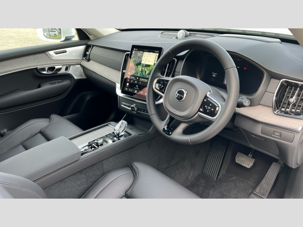 Volvo XC90 2.0 B5P Ultra Dark 5dr AWD Geartronic 11.2" centre console touch screen, 12.3" Progressive Driver Display, 360 degree surround view parking camera with side proximity sensors, Adjustable steering wheel force, Apple carplay (wired), Bluetooth handsfree system, Driver alert control with lane keeping aid, Driver assistance (pilot assist and adaptive cruise control), Driver awareness - Blind spot information system with steer assist, cross traffic alert with autobrake and rear collision warning and mitigation, Emergency call service, Front and rear park assist, Google Automotive Services - Navigation with Voice recoginition and google assistant, Handsfree power tailgate opening and closing, Intelligent speed assistance, Oncoming Lane Mitigation, PAS, Power operated tailgate, Service interval indicator, Speed sensitive steering, Trip computer, Volvo on call, Wireless/Inductive Mobile Phone Charging, 8 speed automatic transmission with start/stop + manual change functions, Active four C chassis - four corner adaptive dampers with electronic air suspension, DAB Radio (Digital Audio Broadcasting), Premium Sound by Bowers and Wilkins, dirac live, dolby pro logic II surround sound, 18 speakers/1400W output and fresh air subwoofer, Steering wheel remote infotainment controls, Adaptive brake lights with high level LED brake lights, Auto dimming interior + exterior mirrors, Auto folding and heated power door mirrors, Automatic headlight levelling system, Automatic matrix LED headlights with Adaptive shadow technology and Active high beam, incorporating Day running lights, Body colour bumpers, Dark tinted windows - rear side windows and rear screen, Front and rear power windows, Headlight cleaning system, High gloss black door mirrors and window surround, High gloss black front and rear bumper deco, High gloss black front grille and deco, Home safe and approach lighting, Integrated roof rails in high gloss black, Laminated side and rear windows, Power glass tilt and slide panoramic sunroof with sun curtain, Puddle lights, Rain sensor with automatic windscreen wiper activation, Rear side wing doors, Rear wash/wipe with intermittent wipe setting, Roof antenna, Roof spoiler, Visible VIN plate, 12V socket in luggage compartment, 2nd Row centre armrest with and cupholders, 3 Spoke tailored sport steering wheel with chrome trim, 4 zone electronic climate control with Clean zone air quality system + pollen filter, A-pillar parking ticket holder, Air conditioning for 3rd row of seats, Air purifier PM2.5, Ambient door and instrument panel lighting, B Pillar ventilation, Bright metal luggage scuff plate, Centre console cupholders and storage, Floor mats, Front and rear courtesy lights, Front and rear door pocket illumination, Front footwell and side step illumination, Front headrests, Front reading lights, Front seat cushion extensions, Front tunnel storage illumination, Glovebox compartment light, Heated front seats, Heated rear seats, Heated steering wheel, Height/reach adjustable steering column, Illuminated front and rear aluminium tread plates, Illuminated luggage compartment, Illuminated tailgate, Illuminated vanity mirrors + ticket holder, Inner door release handle illumination, Integrated sun curtains in rear doors, Isofix outer rear child seat preparation in 2nd row, Load cover, Load protection net, Lockable glovebox compartment, Luggage compartment divider with grocery bag holder, Outboard armrest with cupholder and storage for third row passengers, Power driver seat with multi directional lumbar support and memory for seat and exterior mirrors, Power folding 2nd row headrests, Power passenger seat with multi directional lumbar support and memory, Rear footwell and side step illumination, Rear headrests, Rear reading lights, Second row integrated child seat for centre seat, Single front passenger seat, Three 2nd row individual folding passenger seats with fore/aft adjustment, Two 3rd row individual folding passenger seats, Underfloor luggage compartment storage, 7 three point seatbelts, City safety with steering support includes pedestrian, cyclist detection, front collision warning with full auto brake and rear auto brake, Driver and passenger airbags, Drivers knee airbag, First aid kit, Front seats SIPS airbags, Hill descent control - off drive mode, Hill start assist, IC (Inflatable Curtains) - Full Length, Passenger airbag cut-off switch, Power child locks on rear doors, Power parking brake with auto hold function, Road sign information display, Run off Road Protection, Seatbelt reminder and pretensioners for all seats, SIPS (Side Impact Protection System), Slippery road and hazard light alert, Stability and Traction Control with Spin control, Engine Drag Control and Corner Traction Control, Tyre pressure monitoring system, Vehicle deceleration control with Anti-lock Brake System, Electronic Brake Distribution and Emergency Brake Assist, Warning triangle, WHIPS whiplash protection system - front, 2x Key integrated remote control central locking + deadlocking system and auto open/close windows, Anti-theft alarm including immobiliser/volume sensor + level sensor, Keyless drive includes keyless entry and keyless start, Locking wheel nuts, Tailored instrument panel and door tops, Tempa spare wheel and jack