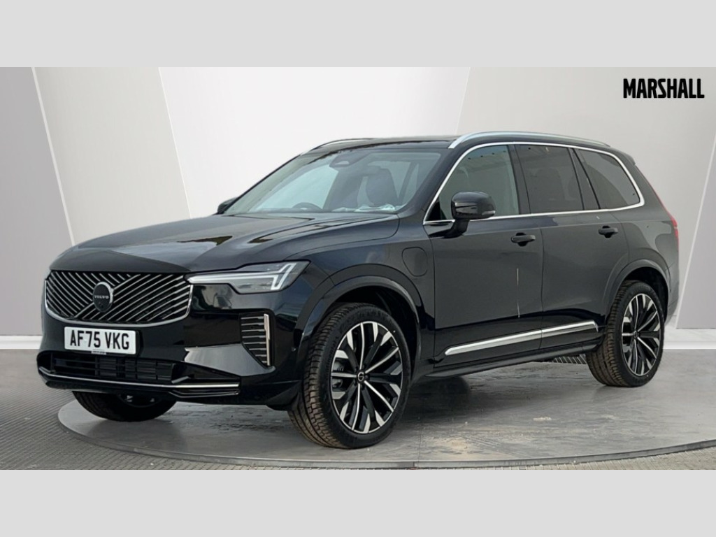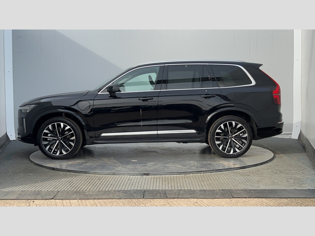 Volvo XC90 2.0 T8 PHEV Ultra Dark 5dr AWD Geartronic 12.3" Progressive Driver Display, 360 degree surround view parking camera with side proximity sensors, 9" centre console portrait touch screen, Adjustable steering wheel force, Bluetooth hands free telephone connection, Drive mode settings, Driver alert control with lane keeping aid, Driver assistance (pilot assist and adaptive cruise control), Driver awareness - Blind spot information system with steer assist, cross traffic alert with autobrake and rear collision warning and mitigation, Emergency call service, Front and rear park assist, Google Automotive Services - Navigation with Voice recoginition and google assistant, Handsfree power tailgate opening and closing, Oncoming Lane Mitigation, Power operated tailgate, Service interval indicator, Speed limiter, Speed sensitive steering, Trip computer, Volvo on call, Wireless Mobile Phone Charger, 6m 3 phase 16amp Type 2 / mode 3 charge cable, 7m 10amp charge cable with 3 pin plug, 8 speed automatic transmission with start/stop + manual change functions, Active four C chassis - four corner adaptive dampers with electronic air suspension, Electric rear axle drive, Lithium-ion battery, On board charger - 6.4 kW 2 phase/3.7kW single phase, Recharging port located in nearside front wing, DAB Radio (Digital Audio Broadcasting), Low speed exterior sound speaker, Premium Sound by Bowers and Wilkins, dirac live, dolby pro logic II surround sound, 18 speakers/1400W output and fresh air subwoofer, Steering wheel remote infotainment controls, Active bending headlights with adaptive shadow technology, Adaptive brake lights with high level LED brake lights, Auto dimming interior + exterior mirrors, Auto folding and heated power door mirrors, Automatic headlight levelling system, Automatic LED Headlights + Active high beam incorporating daytime running lights, Body colour bumpers, Chrome front and rear bumper deco, Chrome lower side mouldings, Chrome window surround, Colour coordinated door mirrors, Dark tinted windows - rear side windows and rear screen, Front and rear power windows, Headlight cleaning system, Home safe and approach lighting, Integrated roof rails in silver, Matt silver front grille with chrome detailing, Power glass tilt and slide panoramic sunroof with sun curtain, Puddle lights, Rain sensor with automatic windscreen wiper activation, Rear side wing doors, Rear wash/wipe with intermittent wipe setting, Roof antenna, Roof spoiler, Visible VIN plate, 12V socket front tunnel console, rear passenger compartment and cargo area, 2 seat bench in 3rd row, 2nd Row centre armrest with and cupholders, 3 seat bench in 2nd row, 4 zone electronic climate control with Clean zone air quality system + pollen filter, A-pillar parking ticket holder, Advanced interior air cleaner PM2.5, Air conditioning for 3rd row of seats, Ambient door and instrument panel lighting, B Pillar ventilation, Bright metal luggage threshold, Centre console cupholders and storage, Floor mats, Front and rear door pocket and front cupholder illumination, Front and rear reading lights, Theatre lighting and centre armrest storage illumination, Front footwell and side step illumination, Front headrests, Front seat cushion extensions, Heated front seats, Heated rear seats, Heated steering wheel, Height/reach adjustable steering column, Illuminated front and rear tread plates, Illuminated luggage compartment, Illuminated tailgate, Illuminated vanity mirrors + ticket holder, Illumination lockable glovebox compartment, Integrated sun curtains in rear doors, Isofix outer rear child seat preparation in 2nd row, Load protection net, Luggage compartment divider with grocery bag holder, Outboard armrest with cupholder and storage for third row passengers, Power driver seat with multi directional lumbar support and memory for seat and exterior mirrors, Power folding 2nd row headrests, Power passenger seat with multi directional lumbar support and memory, Rear footwell and side step illumination, Rear headrests, Semi automatic load cover, Single front passenger seat, Underfloor luggage compartment storage, 7 three point seatbelts, City safety with steering support includes pedestrian, cyclist and large animal detection and front collision warning with full auto brake, Drivers knee airbag, Dual stage driver/passenger airbags, First aid kit, Front seats SIPS airbags, Hill descent control - off drive mode, Hill start assist, IC (Inflatable Curtains) - Full Length, Passenger airbag cut-off switch, Power child locks on rear doors, Power parking brake with auto hold function, Road sign information display, Run off Road Mitigation, Run off Road Protection, Seatbelt reminder and pretensioners for all seats, SIPS (Side Impact Protection System), Slippery road and hazard light alert, Stability and Traction Control with Spin control, Engine Drag Control and Corner Traction Control, Tyre pressure monitoring system, Vehicle deceleration control with Anti-lock Brake System, Electronic Brake Distribution and Emergency Brake Assist, Warning triangle, WHIPS whiplash protection system - front, Anti-theft alarm including immobiliser/volume sensor + level sensor, Care key with user defined top speed, Key integrated remote control central locking + fuel flap with deadlocking system and auto open/close power windows, Keyless drive includes keyless entry and keyless start, Locking wheel nuts, Private locking for glovebox and tailgate, Tailored Instrument Panel and Door Tops with Contrast Stitching, Tyre sealant kit and compressor