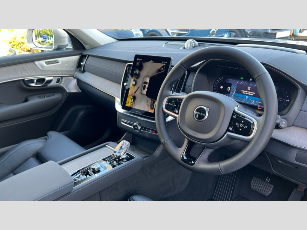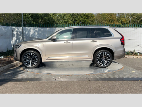 Volvo XC90 2.0 T8 PHEV Ultra Dark 5dr AWD Geartronic 12.3" Progressive Driver Display, 360 degree surround view parking camera with side proximity sensors, 9" centre console portrait touch screen, Adjustable steering wheel force, Bluetooth hands free telephone connection, Drive mode settings, Driver alert control with lane keeping aid, Driver assistance (pilot assist and adaptive cruise control), Driver awareness - Blind spot information system with steer assist, cross traffic alert with autobrake and rear collision warning and mitigation, Emergency call service, Front and rear park assist, Google Automotive Services - Navigation with Voice recoginition and google assistant, Handsfree power tailgate opening and closing, Oncoming Lane Mitigation, Power operated tailgate, Service interval indicator, Speed limiter, Speed sensitive steering, Trip computer, Volvo on call, Wireless Mobile Phone Charger, 6m 3 phase 16amp Type 2 / mode 3 charge cable, 7m 10amp charge cable with 3 pin plug, 8 speed automatic transmission with start/stop + manual change functions, Active four C chassis - four corner adaptive dampers with electronic air suspension, Electric rear axle drive, Lithium-ion battery, On board charger - 6.4 kW 2 phase/3.7kW single phase, Recharging port located in nearside front wing, DAB Radio (Digital Audio Broadcasting), Low speed exterior sound speaker, Premium Sound by Bowers and Wilkins, dirac live, dolby pro logic II surround sound, 18 speakers/1400W output and fresh air subwoofer, Steering wheel remote infotainment controls, Active bending headlights with adaptive shadow technology, Adaptive brake lights with high level LED brake lights, Auto dimming interior + exterior mirrors, Auto folding and heated power door mirrors, Automatic headlight levelling system, Automatic LED Headlights + Active high beam incorporating daytime running lights, Body colour bumpers, Chrome front and rear bumper deco, Chrome lower side mouldings, Chrome window surround, Colour coordinated door mirrors, Dark tinted windows - rear side windows and rear screen, Front and rear power windows, Headlight cleaning system, Home safe and approach lighting, Integrated roof rails in silver, Matt silver front grille with chrome detailing, Power glass tilt and slide panoramic sunroof with sun curtain, Puddle lights, Rain sensor with automatic windscreen wiper activation, Rear side wing doors, Rear wash/wipe with intermittent wipe setting, Roof antenna, Roof spoiler, Visible VIN plate, 12V socket front tunnel console, rear passenger compartment and cargo area, 2 seat bench in 3rd row, 2nd Row centre armrest with and cupholders, 3 seat bench in 2nd row, 4 zone electronic climate control with Clean zone air quality system + pollen filter, A-pillar parking ticket holder, Advanced interior air cleaner PM2.5, Air conditioning for 3rd row of seats, Ambient door and instrument panel lighting, B Pillar ventilation, Bright metal luggage threshold, Centre console cupholders and storage, Floor mats, Front and rear door pocket and front cupholder illumination, Front and rear reading lights, Theatre lighting and centre armrest storage illumination, Front footwell and side step illumination, Front headrests, Front seat cushion extensions, Heated front seats, Heated rear seats, Heated steering wheel, Height/reach adjustable steering column, Illuminated front and rear tread plates, Illuminated luggage compartment, Illuminated tailgate, Illuminated vanity mirrors + ticket holder, Illumination lockable glovebox compartment, Integrated sun curtains in rear doors, Isofix outer rear child seat preparation in 2nd row, Load protection net, Luggage compartment divider with grocery bag holder, Outboard armrest with cupholder and storage for third row passengers, Power driver seat with multi directional lumbar support and memory for seat and exterior mirrors, Power folding 2nd row headrests, Power passenger seat with multi directional lumbar support and memory, Rear footwell and side step illumination, Rear headrests, Semi automatic load cover, Single front passenger seat, Underfloor luggage compartment storage, 7 three point seatbelts, City safety with steering support includes pedestrian, cyclist and large animal detection and front collision warning with full auto brake, Drivers knee airbag, Dual stage driver/passenger airbags, First aid kit, Front seats SIPS airbags, Hill descent control - off drive mode, Hill start assist, IC (Inflatable Curtains) - Full Length, Passenger airbag cut-off switch, Power child locks on rear doors, Power parking brake with auto hold function, Road sign information display, Run off Road Mitigation, Run off Road Protection, Seatbelt reminder and pretensioners for all seats, SIPS (Side Impact Protection System), Slippery road and hazard light alert, Stability and Traction Control with Spin control, Engine Drag Control and Corner Traction Control, Tyre pressure monitoring system, Vehicle deceleration control with Anti-lock Brake System, Electronic Brake Distribution and Emergency Brake Assist, Warning triangle, WHIPS whiplash protection system - front, Anti-theft alarm including immobiliser/volume sensor + level sensor, Care key with user defined top speed, Key integrated remote control central locking + fuel flap with deadlocking system and auto open/close power windows, Keyless drive includes keyless entry and keyless start, Locking wheel nuts, Private locking for glovebox and tailgate, Tailored Instrument Panel and Door Tops with Contrast Stitching, Tyre sealant kit and compressor