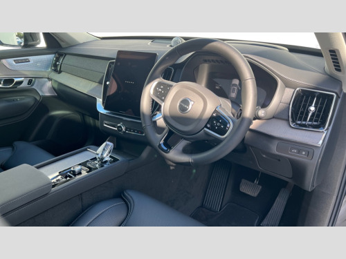 Volvo XC90 2.0 T8 PHEV Ultra Dark 5dr AWD Geartronic 11.2" centre console touch screen, 12.3" Progressive Driver Display, 360 degree surround view parking camera with side proximity sensors, Adjustable steering wheel force, Apple carplay (wired), Bluetooth handsfree system, Drive mode settings, Driver alert control with lane keeping aid, Driver assistance (pilot assist and adaptive cruise control), Driver awareness - Blind spot information system with steer assist, cross traffic alert with autobrake and rear collision warning and mitigation, Emergency call service, Front and rear park assist, Google Automotive Services - Navigation with Voice recoginition and google assistant, Handsfree power tailgate opening and closing, Intelligent speed assistance, Oncoming Lane Mitigation, PAS, Power operated tailgate, Service interval indicator, Speed sensitive steering, Trip computer, Volvo on call, Wireless/Inductive Mobile Phone Charging, 6m 3 phase 16amp Type 2 / mode 3 charge cable, 8 speed automatic transmission with start/stop + manual change functions, Active four C chassis - four corner adaptive dampers with electronic air suspension, Electric rear axle drive, Lithium-ion battery, On board charger - 6.4 kW 2 phase/3.7kW single phase, Recharging port located in nearside front wing, DAB Radio (Digital Audio Broadcasting), Low speed exterior sound speaker, Premium Sound by Bowers and Wilkins, dirac live, dolby pro logic II surround sound, 18 speakers/1400W output and fresh air subwoofer, Steering wheel remote infotainment controls, Adaptive brake lights with high level LED brake lights, Auto dimming interior + exterior mirrors, Auto folding and heated power door mirrors, Automatic headlight levelling system, Automatic matrix LED headlights with Adaptive shadow technology and Active high beam, incorporating Day running lights, Body colour bumpers, Bright chrome front grille and deco, Chrome front and rear bumper deco, Chrome lower side mouldings, Chrome window surround, Colour coordinated door mirrors, Dark tinted windows - rear side windows and rear screen, Front and rear power windows, Headlight cleaning system, Home safe and approach lighting, Integrated roof rails in Chrome, Laminated side and rear windows, Power glass tilt and slide panoramic sunroof with sun curtain, Puddle lights, Rain sensor with automatic windscreen wiper activation, Rear side wing doors, Rear wash/wipe with intermittent wipe setting, Roof antenna, Roof spoiler, Visible VIN plate, 12V socket in luggage compartment, 2nd Row centre armrest with and cupholders, 3 Spoke tailored sport steering wheel with chrome trim, 4 zone electronic climate control with Clean zone air quality system + pollen filter, A-pillar parking ticket holder, Air conditioning for 3rd row of seats, Air purifier PM2.5, Ambient door and instrument panel lighting, B Pillar ventilation, Bright metal luggage scuff plate, Centre console cupholders and storage, Floor mats, Front and rear courtesy lights, Front and rear door pocket illumination, Front footwell and side step illumination, Front headrests, Front reading lights, Front seat cushion extensions, Front tunnel storage illumination, Glovebox compartment light, Heated front seats, Heated rear seats, Heated steering wheel, Height/reach adjustable steering column, Illuminated front and rear aluminium tread plates, Illuminated luggage compartment, Illuminated tailgate, Illuminated vanity mirrors + ticket holder, Inner door release handle illumination, Integrated sun curtains in rear doors, Isofix outer rear child seat preparation in 2nd row, Load cover, Load protection net, Lockable glovebox compartment, Luggage compartment divider with grocery bag holder, Outboard armrest with cupholder and storage for third row passengers, Power driver seat with multi directional lumbar support and memory for seat and exterior mirrors, Power folding 2nd row headrests, Power passenger seat with multi directional lumbar support and memory, Rear footwell and side step illumination, Rear headrests, Rear reading lights, Second row integrated child seat for centre seat, Single front passenger seat, Three 2nd row individual folding passenger seats with fore/aft adjustment, Two 3rd row individual folding passenger seats, Underfloor luggage compartment storage, 7 three point seatbelts, City safety with steering support includes pedestrian, cyclist detection, front collision warning with full auto brake and rear auto brake, Driver and passenger airbags, Drivers knee airbag, First aid kit, Front seats SIPS airbags, Hill descent control - off drive mode, Hill start assist, IC (Inflatable Curtains) - Full Length, Passenger airbag cut-off switch, Power child locks on rear doors, Power parking brake with auto hold function, Road sign information display, Run off Road Protection, Seatbelt reminder and pretensioners for all seats, SIPS (Side Impact Protection System), Slippery road and hazard light alert, Stability and Traction Control with Spin control, Engine Drag Control and Corner Traction Control, Tyre pressure monitoring system, Vehicle deceleration control with Anti-lock Brake System, Electronic Brake Distribution and Emergency Brake Assist, Warning triangle, WHIPS whiplash protection system - front, 2x Key integrated remote control central locking + deadlocking system and auto open/close windows, Anti-theft alarm including immobiliser/volume sensor + level sensor, Keyless drive includes keyless entry and keyless start, Locking wheel nuts, Tailored instrument panel and door tops, Tyre sealant kit and compressor