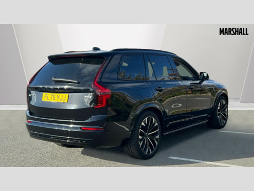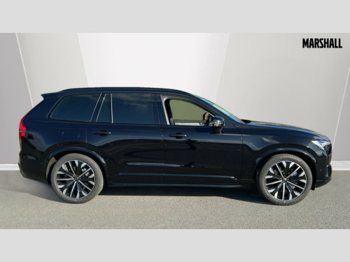 Volvo XC90 2.0 T8 PHEV Ultra Dark 5dr AWD Geartronic 12.3" Progressive Driver Display, 360 degree surround view parking camera with side proximity sensors, 9" centre console portrait touch screen, Adjustable steering wheel force, Bluetooth hands free telephone connection, Drive mode settings, Driver alert control with lane keeping aid, Driver assistance (pilot assist and adaptive cruise control), Driver awareness - Blind spot information system with steer assist, cross traffic alert with autobrake and rear collision warning and mitigation, Emergency call service, Front and rear park assist, Google Automotive Services - Navigation with Voice recoginition and google assistant, Handsfree power tailgate opening and closing, Oncoming Lane Mitigation, Power operated tailgate, Service interval indicator, Speed limiter, Speed sensitive steering, Trip computer, Volvo on call, Wireless Mobile Phone Charger, 6m 3 phase 16amp Type 2 / mode 3 charge cable, 7m 10amp charge cable with 3 pin plug, 8 speed automatic transmission with start/stop + manual change functions, Active four C chassis - four corner adaptive dampers with electronic air suspension, Electric rear axle drive, Lithium-ion battery, On board charger - 6.4 kW 2 phase/3.7kW single phase, Recharging port located in nearside front wing, DAB Radio (Digital Audio Broadcasting), Low speed exterior sound speaker, Premium Sound by Bowers and Wilkins, dirac live, dolby pro logic II surround sound, 18 speakers/1400W output and fresh air subwoofer, Steering wheel remote infotainment controls, Active bending headlights with adaptive shadow technology, Adaptive brake lights with high level LED brake lights, Auto dimming interior + exterior mirrors, Auto folding and heated power door mirrors, Automatic headlight levelling system, Automatic LED Headlights + Active high beam incorporating daytime running lights, Body colour bumpers, Dark tinted windows - rear side windows and rear screen, Front and rear power windows, Headlight cleaning system, High gloss black door mirrors and window surround, High gloss black front and rear bumper deco, High gloss black mesh front grille with surround, Home safe and approach lighting, Integrated roof rails in high gloss black, Power glass tilt and slide panoramic sunroof with sun curtain, Puddle lights, Rain sensor with automatic windscreen wiper activation, Rear side wing doors, Rear wash/wipe with intermittent wipe setting, Roof antenna, Roof spoiler, Visible VIN plate, 12V socket front tunnel console, rear passenger compartment and cargo area, 2 seat bench in 3rd row, 2nd Row centre armrest with and cupholders, 3 seat bench in 2nd row, 4 zone electronic climate control with Clean zone air quality system + pollen filter, A-pillar parking ticket holder, Advanced interior air cleaner PM2.5, Air conditioning for 3rd row of seats, Ambient door and instrument panel lighting, B Pillar ventilation, Bright metal luggage threshold, Centre console cupholders and storage, Floor mats, Front and rear door pocket and front cupholder illumination, Front and rear reading lights, Theatre lighting and centre armrest storage illumination, Front footwell and side step illumination, Front headrests, Front seat cushion extensions, Heated front seats, Heated rear seats, Heated steering wheel, Height/reach adjustable steering column, Illuminated front and rear tread plates, Illuminated luggage compartment, Illuminated tailgate, Illuminated vanity mirrors + ticket holder, Illumination lockable glovebox compartment, Integrated sun curtains in rear doors, Isofix outer rear child seat preparation in 2nd row, Load protection net, Luggage compartment divider with grocery bag holder, Outboard armrest with cupholder and storage for third row passengers, Power driver seat with multi directional lumbar support and memory for seat and exterior mirrors, Power folding 2nd row headrests, Power passenger seat with multi directional lumbar support and memory, Rear footwell and side step illumination, Rear headrests, Semi automatic load cover, Single front passenger seat, Underfloor luggage compartment storage, 7 three point seatbelts, City safety with steering support includes pedestrian, cyclist and large animal detection and front collision warning with full auto brake, Drivers knee airbag, Dual stage driver/passenger airbags, First aid kit, Front seats SIPS airbags, Hill descent control - off drive mode, Hill start assist, IC (Inflatable Curtains) - Full Length, Passenger airbag cut-off switch, Power child locks on rear doors, Power parking brake with auto hold function, Road sign information display, Run off Road Mitigation, Run off Road Protection, Seatbelt reminder and pretensioners for all seats, SIPS (Side Impact Protection System), Slippery road and hazard light alert, Stability and Traction Control with Spin control, Engine Drag Control and Corner Traction Control, Tyre pressure monitoring system, Vehicle deceleration control with Anti-lock Brake System, Electronic Brake Distribution and Emergency Brake Assist, Warning triangle, WHIPS whiplash protection system - front, Anti-theft alarm including immobiliser/volume sensor + level sensor, Care key with user defined top speed, Key integrated remote control central locking + fuel flap with deadlocking system and auto open/close power windows, Keyless drive includes keyless entry and keyless start, Locking wheel nuts, Private locking for glovebox and tailgate, Tailored Instrument Panel and Door Tops with Contrast Stitching, Tyre sealant kit and compressor