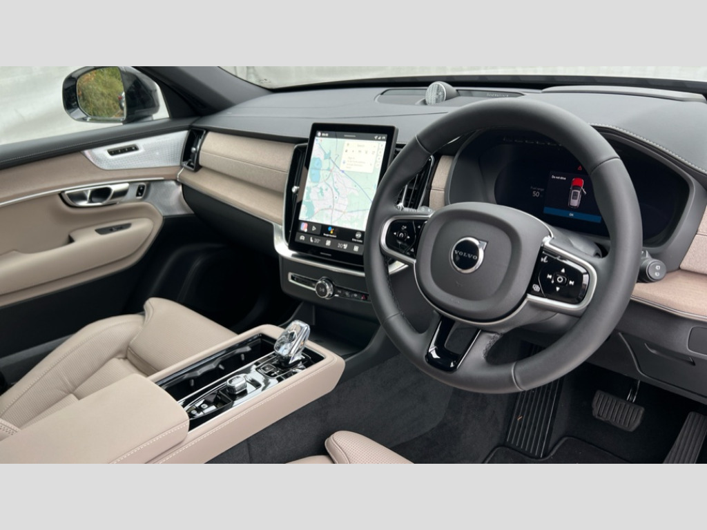 Volvo XC90 2.0 T8 PHEV Ultra Dark 5dr AWD Geartronic 11.2" centre console touch screen, 12.3" Progressive Driver Display, 360 degree surround view parking camera with side proximity sensors, Adjustable steering wheel force, Apple carplay (wired), Bluetooth handsfree system, Drive mode settings, Driver alert control with lane keeping aid, Driver assistance (pilot assist and adaptive cruise control), Driver awareness - Blind spot information system with steer assist, cross traffic alert with autobrake and rear collision warning and mitigation, Emergency call service, Front and rear park assist, Google Automotive Services - Navigation with Voice recoginition and google assistant, Handsfree power tailgate opening and closing, Intelligent speed assistance, Oncoming Lane Mitigation, PAS, Power operated tailgate, Service interval indicator, Speed sensitive steering, Trip computer, Volvo on call, Wireless/Inductive Mobile Phone Charging, 6m 3 phase 16amp Type 2 / mode 3 charge cable, 8 speed automatic transmission with start/stop + manual change functions, Active four C chassis - four corner adaptive dampers with electronic air suspension, Electric rear axle drive, Lithium-ion battery, On board charger - 6.4 kW 2 phase/3.7kW single phase, Recharging port located in nearside front wing, DAB Radio (Digital Audio Broadcasting), Low speed exterior sound speaker, Premium Sound by Bowers and Wilkins, dirac live, dolby pro logic II surround sound, 18 speakers/1400W output and fresh air subwoofer, Steering wheel remote infotainment controls, Adaptive brake lights with high level LED brake lights, Auto dimming interior + exterior mirrors, Auto folding and heated power door mirrors, Automatic headlight levelling system, Automatic matrix LED headlights with Adaptive shadow technology and Active high beam, incorporating Day running lights, Body colour bumpers, Dark tinted windows - rear side windows and rear screen, Front and rear power windows, Headlight cleaning system, High gloss black door mirrors and window surround, High gloss black front and rear bumper deco, High gloss black front grille and deco, Home safe and approach lighting, Integrated roof rails in high gloss black, Laminated side and rear windows, Power glass tilt and slide panoramic sunroof with sun curtain, Puddle lights, Rain sensor with automatic windscreen wiper activation, Rear side wing doors, Rear wash/wipe with intermittent wipe setting, Roof antenna, Roof spoiler, Visible VIN plate, 12V socket in luggage compartment, 2nd Row centre armrest with and cupholders, 3 Spoke tailored sport steering wheel with chrome trim, 4 zone electronic climate control with Clean zone air quality system + pollen filter, A-pillar parking ticket holder, Air conditioning for 3rd row of seats, Air purifier PM2.5, Ambient door and instrument panel lighting, B Pillar ventilation, Bright metal luggage scuff plate, Centre console cupholders and storage, Floor mats, Front and rear courtesy lights, Front and rear door pocket illumination, Front footwell and side step illumination, Front headrests, Front reading lights, Front seat cushion extensions, Front tunnel storage illumination, Glovebox compartment light, Heated front seats, Heated rear seats, Heated steering wheel, Height/reach adjustable steering column, Illuminated front and rear aluminium tread plates, Illuminated luggage compartment, Illuminated tailgate, Illuminated vanity mirrors + ticket holder, Inner door release handle illumination, Integrated sun curtains in rear doors, Isofix outer rear child seat preparation in 2nd row, Load cover, Load protection net, Lockable glovebox compartment, Luggage compartment divider with grocery bag holder, Outboard armrest with cupholder and storage for third row passengers, Power driver seat with multi directional lumbar support and memory for seat and exterior mirrors, Power folding 2nd row headrests, Power passenger seat with multi directional lumbar support and memory, Rear footwell and side step illumination, Rear headrests, Rear reading lights, Second row integrated child seat for centre seat, Single front passenger seat, Three 2nd row individual folding passenger seats with fore/aft adjustment, Two 3rd row individual folding passenger seats, Underfloor luggage compartment storage, 7 three point seatbelts, City safety with steering support includes pedestrian, cyclist detection, front collision warning with full auto brake and rear auto brake, Driver and passenger airbags, Drivers knee airbag, First aid kit, Front seats SIPS airbags, Hill descent control - off drive mode, Hill start assist, IC (Inflatable Curtains) - Full Length, Passenger airbag cut-off switch, Power child locks on rear doors, Power parking brake with auto hold function, Road sign information display, Run off Road Protection, Seatbelt reminder and pretensioners for all seats, SIPS (Side Impact Protection System), Slippery road and hazard light alert, Stability and Traction Control with Spin control, Engine Drag Control and Corner Traction Control, Tyre pressure monitoring system, Vehicle deceleration control with Anti-lock Brake System, Electronic Brake Distribution and Emergency Brake Assist, Warning triangle, WHIPS whiplash protection system - front, 2x Key integrated remote control central locking + deadlocking system and auto open/close windows, Anti-theft alarm including immobiliser/volume sensor + level sensor, Keyless drive includes keyless entry and keyless start, Locking wheel nuts, Tailored instrument panel and door tops, Tyre sealant kit and compressor