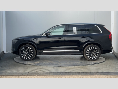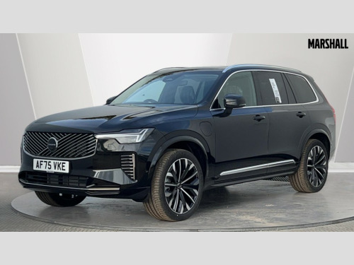 Volvo XC90 2.0 T8 PHEV Ultra Dark 5dr AWD Geartronic 12.3" Progressive Driver Display, 360 degree surround view parking camera with side proximity sensors, 9" centre console portrait touch screen, Adjustable steering wheel force, Bluetooth hands free telephone connection, Drive mode settings, Driver alert control with lane keeping aid, Driver assistance (pilot assist and adaptive cruise control), Driver awareness - Blind spot information system with steer assist, cross traffic alert with autobrake and rear collision warning and mitigation, Emergency call service, Front and rear park assist, Google Automotive Services - Navigation with Voice recoginition and google assistant, Handsfree power tailgate opening and closing, Oncoming Lane Mitigation, Power operated tailgate, Service interval indicator, Speed limiter, Speed sensitive steering, Trip computer, Volvo on call, Wireless Mobile Phone Charger, 6m 3 phase 16amp Type 2 / mode 3 charge cable, 7m 10amp charge cable with 3 pin plug, 8 speed automatic transmission with start/stop + manual change functions, Active four C chassis - four corner adaptive dampers with electronic air suspension, Electric rear axle drive, Lithium-ion battery, On board charger - 6.4 kW 2 phase/3.7kW single phase, Recharging port located in nearside front wing, DAB Radio (Digital Audio Broadcasting), Low speed exterior sound speaker, Premium Sound by Bowers and Wilkins, dirac live, dolby pro logic II surround sound, 18 speakers/1400W output and fresh air subwoofer, Steering wheel remote infotainment controls, Active bending headlights with adaptive shadow technology, Adaptive brake lights with high level LED brake lights, Auto dimming interior + exterior mirrors, Auto folding and heated power door mirrors, Automatic headlight levelling system, Automatic LED Headlights + Active high beam incorporating daytime running lights, Body colour bumpers, Dark tinted windows - rear side windows and rear screen, Front and rear power windows, Headlight cleaning system, High gloss black door mirrors and window surround, High gloss black front and rear bumper deco, High gloss black mesh front grille with surround, Home safe and approach lighting, Integrated roof rails in high gloss black, Power glass tilt and slide panoramic sunroof with sun curtain, Puddle lights, Rain sensor with automatic windscreen wiper activation, Rear side wing doors, Rear wash/wipe with intermittent wipe setting, Roof antenna, Roof spoiler, Visible VIN plate, 12V socket front tunnel console, rear passenger compartment and cargo area, 2 seat bench in 3rd row, 2nd Row centre armrest with and cupholders, 3 seat bench in 2nd row, 4 zone electronic climate control with Clean zone air quality system + pollen filter, A-pillar parking ticket holder, Advanced interior air cleaner PM2.5, Air conditioning for 3rd row of seats, Ambient door and instrument panel lighting, B Pillar ventilation, Bright metal luggage threshold, Centre console cupholders and storage, Floor mats, Front and rear door pocket and front cupholder illumination, Front and rear reading lights, Theatre lighting and centre armrest storage illumination, Front footwell and side step illumination, Front headrests, Front seat cushion extensions, Heated front seats, Heated rear seats, Heated steering wheel, Height/reach adjustable steering column, Illuminated front and rear tread plates, Illuminated luggage compartment, Illuminated tailgate, Illuminated vanity mirrors + ticket holder, Illumination lockable glovebox compartment, Integrated sun curtains in rear doors, Isofix outer rear child seat preparation in 2nd row, Load protection net, Luggage compartment divider with grocery bag holder, Outboard armrest with cupholder and storage for third row passengers, Power driver seat with multi directional lumbar support and memory for seat and exterior mirrors, Power folding 2nd row headrests, Power passenger seat with multi directional lumbar support and memory, Rear footwell and side step illumination, Rear headrests, Semi automatic load cover, Single front passenger seat, Underfloor luggage compartment storage, 7 three point seatbelts, City safety with steering support includes pedestrian, cyclist and large animal detection and front collision warning with full auto brake, Drivers knee airbag, Dual stage driver/passenger airbags, First aid kit, Front seats SIPS airbags, Hill descent control - off drive mode, Hill start assist, IC (Inflatable Curtains) - Full Length, Passenger airbag cut-off switch, Power child locks on rear doors, Power parking brake with auto hold function, Road sign information display, Run off Road Mitigation, Run off Road Protection, Seatbelt reminder and pretensioners for all seats, SIPS (Side Impact Protection System), Slippery road and hazard light alert, Stability and Traction Control with Spin control, Engine Drag Control and Corner Traction Control, Tyre pressure monitoring system, Vehicle deceleration control with Anti-lock Brake System, Electronic Brake Distribution and Emergency Brake Assist, Warning triangle, WHIPS whiplash protection system - front, Anti-theft alarm including immobiliser/volume sensor + level sensor, Care key with user defined top speed, Key integrated remote control central locking + fuel flap with deadlocking system and auto open/close power windows, Keyless drive includes keyless entry and keyless start, Locking wheel nuts, Private locking for glovebox and tailgate, Tailored Instrument Panel and Door Tops with Contrast Stitching, Tyre sealant kit and compressor