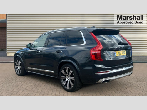 Volvo XC90 2.0 B5D [235] Inscription Pro 5dr AWD Geartronic 12.3" Active TFT crystal driver's instrument display, 9" centre console portrait touch screen, Adjustable steering wheel force, Bluetooth hands free telephone connection, Drive mode settings, Driver alert control with lane keeping aid, Front and rear park assist, Handsfree power tailgate opening and closing, Intellisafe assist - Adaptive cruise control with pilot assist, Oncoming Lane Mitigation, Sensus navigation with European mapping and traffic information, Service interval indicator, Speed limiter, Speed sensitive steering, Trip computer, Voice activated control for key functions, Volvo on call, Wireless internet connection, 8 speed automatic transmission with start/stop + manual change functions, Active four C chassis - four corner adaptive dampers with electronic air suspension, All wheel drive system, Touring chassis, DAB Radio (Digital Audio Broadcasting), Steering wheel audio controls, Steering wheel remote infotainment controls, Active bending headlights with adaptive shadow technology, Adaptive brake lights with high level LED brake lights, Auto dimming interior + exterior mirrors, Automatic headlight levelling system, Automatic LED Headlights + Active high beam incorporating daytime running lights, Body colour bumpers, Chrome door handles deco strip and window surround, Chrome lower side moulding trim with Inscription logo, Colour coordinated auto folding and heated power door mirrors, Dual integrated exhaust pipes, Front and rear power windows, Front LED fog lights with cornering function, Full width chrome detailing strip rear bumper, Home safe and approach lighting, Integrated roof rails in silver, Matt Silver front grille, Puddle lights, Rain sensor with automatic windscreen wiper activation, Rear wash/wipe with intermittent wipe setting, Roof antenna, Roof spoiler, Visible VIN plate, 2nd Row centre armrest with storage and cupholders, 3 spoke leather steering wheel and illuminated gear knob with chrome trim, A-pillar parking ticket holder, Ambient door and instrument panel lighting, B Pillar ventilation, Bright metal luggage threshold, Cargo divider with grocery bag holder, Centre console cupholders and storage, Driver's side lower dashboard storage compartment, Front and rear door pocket and front cupholder illumination, Front and rear reading lights, multi-colour theatre lighting and centre armrest storage illumination, Front footwell and side step illumination, Front headrests, Front seat backrest massage, Front seat cushion extension and power adjustable front seats side support, Heated front seats, Height/reach adjustable steering column, Illuminated front and rear tread plates, Illuminated luggage compartment, Illuminated tailgate, Illuminated vanity mirrors + ticket holder, Illumination lockable glovebox compartment, Isofix outer rear child seat preparation in 2nd row, Load protection net, Luxury floor mats, Nappa Leather Key Integrated Remote, Orrefors Crystal gear lever knob, Outboard armrest with cupholder and storage for third row passengers, Passenger seat electric height adjuster, Perforated and ventilated nappa soft leather upholstery, Power driver seat with multi directional lumbar support and memory for seat and exterior mirrors, Rear footwell and side step illumination, Rear headrests, Semi automatic load cover, Three 2nd row individual folding passenger seats with fore/aft adjustment, Two 3rd row individual folding passenger seats, Underfloor cargo storage, 7 three point seatbelts, City safety includes pedestrian, cyclist and large animal detection and front collision warning with full auto brake, Drivers knee airbag, Dual stage driver/passenger airbags, First aid kit, Front and rear curtain airbags, Front seat side impact airbags, Front seats SIPS airbags, Hill descent control, Hill start assist, IC (Inflatable Curtains) - Full Length, Passenger airbag cut-off switch, Power parking brake with auto hold function, Road sign information display, Run off Road Mitigation, Run off Road Protection, Seatbelt reminder and pretensioners for all seats, SIPS (Side Impact Protection System), Slippery road and hazard light alert, Stability and Traction Control with Spin control, Engine Drag Control and Corner Traction Control, Tyre pressure monitoring system, Vehicle deceleration control with Anti-lock Brake System, Electronic Brake Distribution and Emergency Brake Assist, Warning triangle, WHIPS whiplash protection system - front, Anti-theft alarm including immobiliser/volume sensor + level sensor, Key integrated remote control central locking + fuel flap with deadlocking system and auto open/close power windows, Keyless drive (includes keyless entry and keyless start) with remote tag, Locking wheel nuts, Private locking for glovebox and tailgate, Tailored instrument panel and door tops, Tempa spare wheel and jack