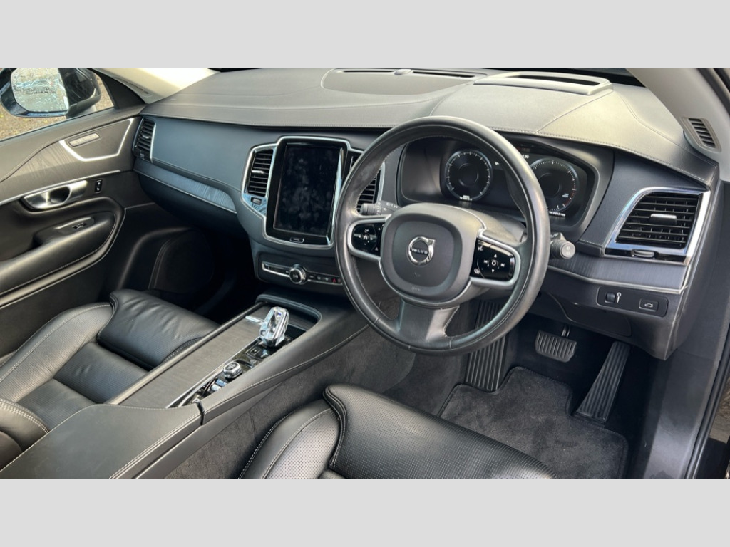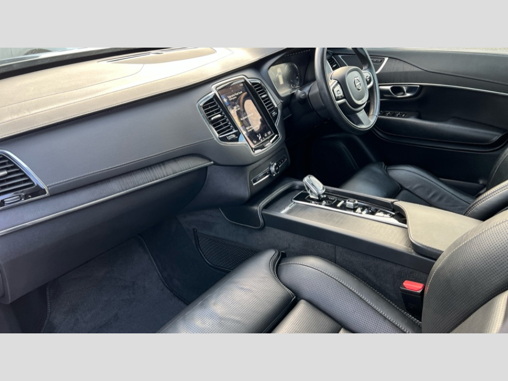Volvo XC90 2.0 B5D [235] Inscription Pro 5dr AWD Geartronic 12.3" Active TFT crystal driver's instrument display, 9" centre console portrait touch screen, Adjustable steering wheel force, Bluetooth hands free telephone connection, Drive mode settings, Driver alert control with lane keeping aid, Handsfree power tailgate opening and closing, Intellisafe assist - Adaptive cruise control with pilot assist, Oncoming Lane Mitigation, Remote engine start, Sensus navigation with European mapping and traffic information, Service interval indicator, Speed limiter, Speed sensitive steering, Trip computer, Voice activated control for key functions, Volvo on call, 8 speed automatic transmission with start/stop + manual change functions, Active four C chassis - four corner adaptive dampers with electronic air suspension, All wheel drive system, DAB Radio (Digital Audio Broadcasting), Steering wheel audio controls, Steering wheel remote infotainment controls, Active bending headlights with adaptive shadow technology, Adaptive brake lights with high level LED brake lights, Auto dimming interior + exterior mirrors, Automatic headlight levelling system, Automatic LED Headlights + Active high beam incorporating daytime running lights, Body colour bumpers, Chrome door handles deco strip and window surround, Chrome lower side moulding trim with Inscription logo, Colour coordinated auto folding and heated power door mirrors, Dual integrated exhaust pipes, Front and rear power windows, Front LED fog lights with cornering function, Heated washer nozzles, Home safe and approach lighting, Integrated roof rails in silver, Matt silver front grille with chrome detailing, Puddle lights, Rain sensor with automatic windscreen wiper activation, Rear wash/wipe with intermittent wipe setting, Roof antenna, Roof spoiler, Visible VIN plate, 12V socket front tunnel console, rear passenger compartment and cargo area, 2nd Row centre armrest with storage and cupholders, 3 spoke leather steering wheel and illuminated gear knob with chrome trim, Ambient door and instrument panel lighting, B Pillar ventilation, Bright metal luggage threshold, Cargo divider with grocery bag holder, Centre console cupholders and storage, Driver's side lower dashboard storage compartment, Front and rear door pocket and front cupholder illumination, Front footwell and side step illumination, Front headrests, Front seat backrest massage, Front seat cushion extension and power adjustable front seats side support, Heated front seats, Height/reach adjustable steering column, Illuminated front and rear tread plates, Illuminated luggage compartment, Illuminated tailgate, Illuminated vanity mirrors + ticket holder, Illumination lockable glovebox compartment, Integrated sun curtains in rear doors, Load protection net, Luxury floor mats, Multicolour theatre lighting, Orrefors Crystal gear lever knob, Outboard armrest with cupholder and storage for third row passengers, Perforated and ventilated nappa soft leather upholstery, Power driver seat with multi directional lumbar support and memory for seat and exterior mirrors, Power folding 2nd row headrests, Power passenger seat with lumbar support, Rear footwell and side step illumination, Rear headrests, Semi automatic load cover, Three 2nd row individual folding passenger seats with fore/aft adjustment, Two 3rd row individual folding passenger seats, Underfloor cargo storage, 7 three point seatbelts, City safety includes pedestrian, cyclist and large animal detection and front collision warning with full auto brake, Drivers knee airbag, Dual stage driver/passenger airbags, First aid kit, Front seats SIPS airbags, Hill descent control, Hill start assist, IC (Inflatable Curtains) - Full Length, Passenger airbag cut-off switch, Power parking brake with auto hold function, Run off Road Mitigation, Run off Road Protection, Seatbelt reminder and pretensioners for all seats, SIPS (Side Impact Protection System), Slippery road and hazard light alert, Stability and Traction Control with Spin control, Engine Drag Control and Corner Traction Control, Tyre pressure monitoring system, Vehicle deceleration control with Anti-lock Brake System, Electronic Brake Distribution and Emergency Brake Assist, Warning triangle, WHIPS whiplash protection system - front, Anti-theft alarm including immobiliser/volume sensor + level sensor, Care key with user defined top speed, Key integrated remote control central locking + fuel flap with deadlocking system and auto open/close power windows, Keyless drive (includes keyless entry and keyless start) with remote tag, Locking wheel nuts, Private locking for glovebox and tailgate, Tailored instrument panel and door tops, Tempa spare wheel and jack