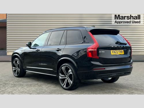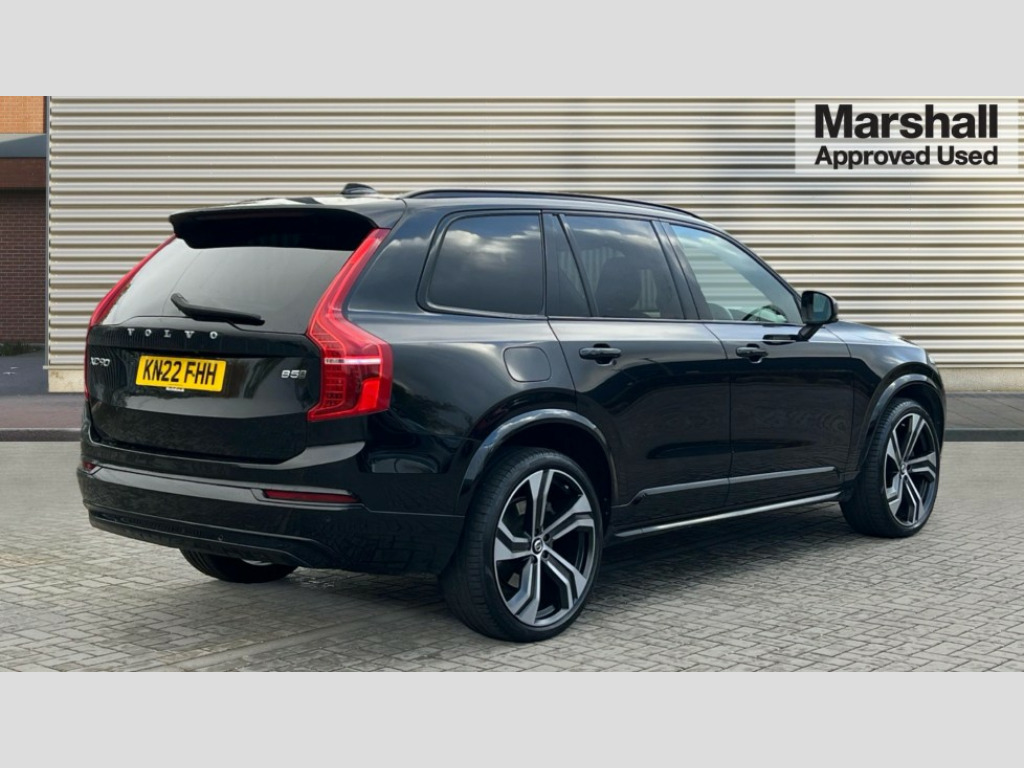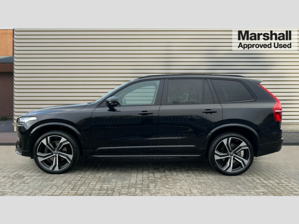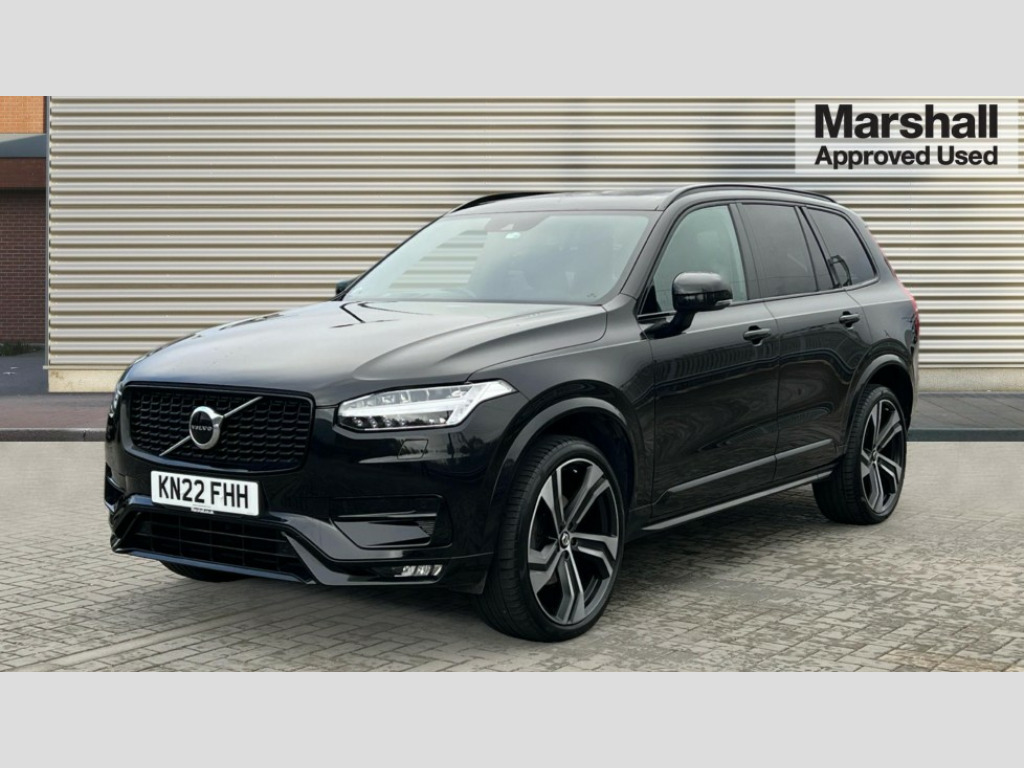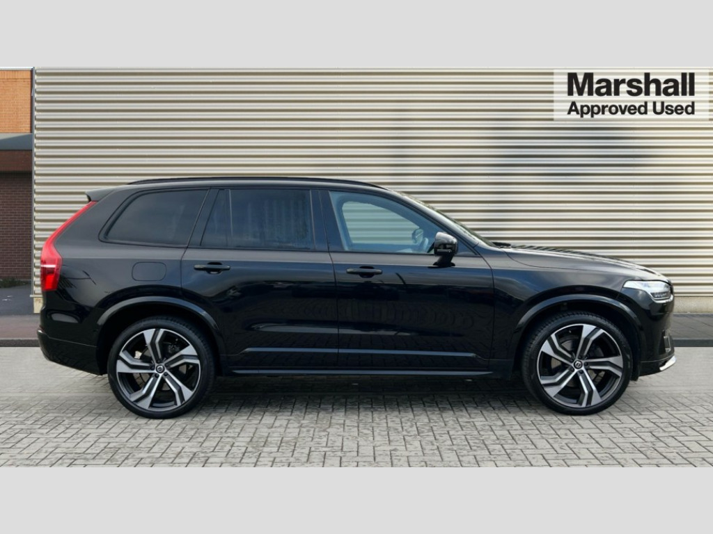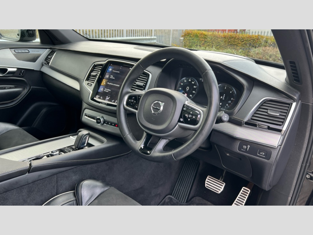 Volvo XC90 2.0 B5D [235] R DESIGN Pro 5dr AWD Geartronic 12.3" Active TFT crystal driver's instrument display, 9" centre console portrait touch screen, Adjustable steering wheel force, Bluetooth hands free telephone connection, Drive mode settings, Driver alert control with lane keeping aid, Driver assistance (pilot assist and adaptive cruise control), Driver awareness - Blind spot information system with steer assist, cross traffic alert with autobrake and rear collision warning and mitigation, Emergency call service, Front and rear park assist, Handsfree power tailgate opening and closing, Oncoming Lane Mitigation, Remote engine start, Sensus navigation with European mapping and traffic information, Service interval indicator, Smartphone integration with Apple CarPlay and Android auto, Speed limiter, Speed sensitive steering, Trip computer, Voice activated control for key functions, Volvo on call, 8 speed automatic transmission with start/stop + manual change functions, Active four C chassis - four corner adaptive dampers with electronic air suspension, All wheel drive system, DAB Radio (Digital Audio Broadcasting), Steering wheel remote infotainment controls, Adaptive brake lights with high level LED brake lights, Auto dimming interior + exterior mirrors, Automatic headlight levelling system, Automatic LED Headlights + Active high beam incorporating daytime running lights, Body colour bumpers, Dark tinted windows for rear side windows and cargo area, Dual integrated exhaust pipes with high gloss black surround, Electric folding and heated door mirrors, Front and rear power windows, Heated washer nozzles, High gloss black Deco lower front bumper, High gloss black door mirrors, High gloss black lower rear valance, High gloss black mesh front grille with surround, High gloss black window surround, Home safe and approach lighting, Integrated roof rails in high gloss black, Puddle lights, Rain sensor with automatic windscreen wiper activation, Rear side wing doors, Rear wash/wipe with intermittent wipe setting, Roof antenna, Roof spoiler, Visible VIN plate, 12V socket front tunnel console, rear passenger compartment and cargo area, 2 seat bench in 3rd row, 3 seat bench in 2nd row, A-pillar parking ticket holder, Ambient door and instrument panel lighting, B Pillar ventilation, Bright metal luggage threshold, Cargo divider with grocery bag holder, Centre console cupholders and storage, Charcoal headlining, Driver's side lower dashboard storage compartment, Front and rear door pocket and front cupholder illumination, Front footwell and side step illumination, Front headrests, Front seat cushion extensions, Heated front seats, Height/reach adjustable steering column, Illuminated front and rear tread plates, Illuminated luggage compartment, Illuminated tailgate, Illuminated vanity mirrors + ticket holder, Illumination lockable glovebox compartment, Integrated sun curtains in rear doors, Load protection net, Lower dashboard, tunnel console, Lower door panel in blond, Multicolour theatre lighting, Outboard armrest with cupholder and storage for third row passengers, Power driver seat with multi directional lumbar support and memory for seat and exterior mirrors, Power folding 2nd row headrests, Power passenger seat with multi directional lumbar support and memory, Rear footwell and side step illumination, Rear headrests, Semi automatic load cover, Single front passenger seat, Sports floor mats, Sports leather gear knob, Sports pedals, Underfloor cargo storage, Lighting pack - XC90, 7 three point seatbelts, City safety includes pedestrian, cyclist and large animal detection and front collision warning with full auto brake, Drivers knee airbag, Dual stage driver/passenger airbags, First aid kit, Front seats SIPS airbags, Hill descent control, Hill start assist, IC (Inflatable Curtains) - Full Length, Passenger airbag cut-off switch, Power parking brake with auto hold function, Road sign information display, Run off Road Mitigation, Run off Road Protection, Seatbelt reminder and pretensioners for all seats, SIPS (Side Impact Protection System), Slippery road and hazard light alert, Stability and Traction Control with Spin control, Engine Drag Control and Corner Traction Control, Tyre pressure monitoring system, Vehicle deceleration control with Anti-lock Brake System, Electronic Brake Distribution and Emergency Brake Assist, Warning triangle, WHIPS whiplash protection system - front, Anti-theft alarm including immobiliser/volume sensor + level sensor, Care key with user defined top speed, Key integrated remote control central locking + fuel flap with deadlocking system and auto open/close power windows, Keyless drive (includes keyless entry and keyless start) with remote tag, Locking wheel nuts, Private locking for glovebox and tailgate, Metal mesh inlays, Tailored Instrument Panel and Door Tops with Contrast Stitching, Tempa spare wheel and jack