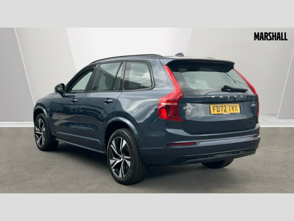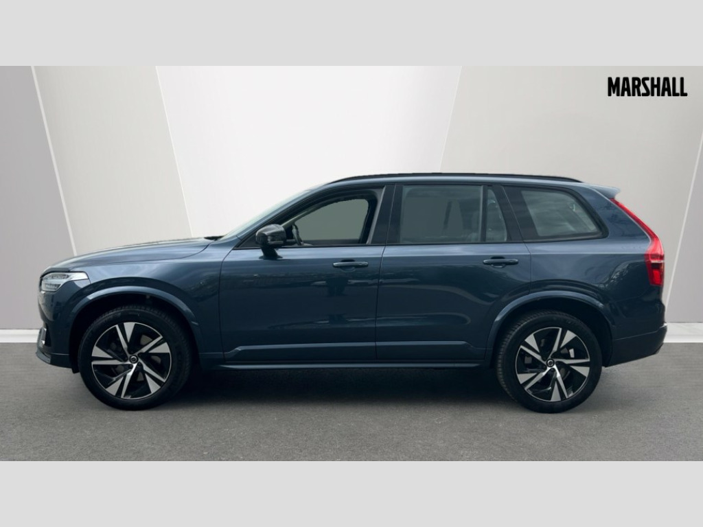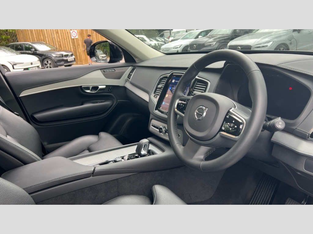 Volvo XC90 2.0 B5P [250] Plus Dark 5dr AWD Geartronic 12.3" Progressive Driver Display, 360 degree surround view parking camera with side proximity sensors, 9" centre console portrait touch screen, Adjustable steering wheel force, Bluetooth hands free telephone connection, Driver alert control with lane keeping aid, Driver assistance (pilot assist and adaptive cruise control), Driver awareness - Blind spot information system with steer assist, cross traffic alert with autobrake and rear collision warning and mitigation, Emergency call service, Front and rear park assist, Google Automotive Services - Navigation with Voice recoginition and google assistant, Handsfree power tailgate opening and closing, Oncoming Lane Mitigation, Power operated tailgate, Service interval indicator, Speed limiter, Speed sensitive steering, Trip computer, Volvo on call, Wireless Mobile Phone Charger, 8 speed automatic transmission with start/stop + manual change functions, Touring chassis, DAB Radio (Digital Audio Broadcasting), Premium Sound by Harman Kardon, dirac unison, dolby pro logic II surround sound, 13 speakers/600W output and fresh air subwoofer, Steering wheel remote infotainment controls, Active bending headlights with adaptive shadow technology, Adaptive brake lights with high level LED brake lights, Auto dimming interior + exterior mirrors, Auto folding and heated power door mirrors, Automatic headlight levelling system, Automatic LED Headlights + Active high beam incorporating daytime running lights, Body colour bumpers, Front and rear power windows, Headlight cleaning system, Heated front windscreen, High gloss black door mirrors and window surround, High gloss black front and rear bumper deco, High gloss black mesh front grille with surround, Home safe and approach lighting, Integrated roof rails in high gloss black, LED front fog lights with cornering light function, Power glass tilt and slide panoramic sunroof with sun curtain, Puddle lights, Rain sensor with automatic windscreen wiper activation, Rear side wing doors, Rear wash/wipe with intermittent wipe setting, Roof antenna, Roof spoiler, Visible VIN plate, 12V socket front tunnel console, rear passenger compartment and cargo area, 2 seat bench in 3rd row, 2nd Row centre armrest with and cupholders, 3 seat bench in 2nd row, 4 zone electronic climate control with Clean zone air quality system + pollen filter, A-pillar parking ticket holder, Advanced interior air cleaner PM2.5, Air conditioning for 3rd row of seats, Ambient door and instrument panel lighting, B Pillar ventilation, Bright metal luggage threshold, Centre console cupholders and storage, Floor mats, Front and rear door pocket and front cupholder illumination, Front and rear reading lights, Theatre lighting and centre armrest storage illumination, Front footwell and side step illumination, Front headrests, Front seat cushion extensions, Heated front seats, Heated rear seats, Heated steering wheel, Height/reach adjustable steering column, Illuminated front and rear tread plates, Illuminated luggage compartment, Illuminated tailgate, Illuminated vanity mirrors + ticket holder, Illumination lockable glovebox compartment, Integrated sun curtains in rear doors, Isofix outer rear child seat preparation in 2nd row, Load protection net, Luggage compartment divider with grocery bag holder, Outboard armrest with cupholder and storage for third row passengers, Power driver seat with multi directional lumbar support and memory for seat and exterior mirrors, Power folding 2nd row headrests, Power passenger seat with multi directional lumbar support and memory, Rear footwell and side step illumination, Rear headrests, Semi automatic load cover, Single front passenger seat, Underfloor luggage compartment storage, 7 three point seatbelts, City safety with steering support includes pedestrian, cyclist and large animal detection and front collision warning with full auto brake, Drivers knee airbag, Dual stage driver/passenger airbags, First aid kit, Front seats SIPS airbags, Hill descent control - off drive mode, Hill start assist, IC (Inflatable Curtains) - Full Length, Passenger airbag cut-off switch, Power child locks on rear doors, Power parking brake with auto hold function, Road sign information display, Run off Road Mitigation, Run off Road Protection, Seatbelt reminder and pretensioners for all seats, SIPS (Side Impact Protection System), Slippery road and hazard light alert, Stability and Traction Control with Spin control, Engine Drag Control and Corner Traction Control, Tyre pressure monitoring system, Vehicle deceleration control with Anti-lock Brake System, Electronic Brake Distribution and Emergency Brake Assist, Warning triangle, WHIPS whiplash protection system - front, Anti-theft alarm including immobiliser/volume sensor + level sensor, Care key with user defined top speed, Key integrated remote control central locking + fuel flap with deadlocking system and auto open/close power windows, Keyless drive includes keyless entry and keyless start, Locking wheel nuts, Private locking for glovebox and tailgate, Tailored Instrument Panel and Door Tops with Contrast Stitching, Tempa spare wheel and jack