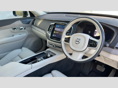 Volvo XC90 2.0 B5P [250] Plus Dark 5dr AWD Geartronic 12.3" Progressive Driver Display, 360 degree surround view parking camera with side proximity sensors, 9" centre console portrait touch screen, Adjustable steering wheel force, Bluetooth hands free telephone connection, Driver alert control with lane keeping aid, Driver assistance (pilot assist and adaptive cruise control), Driver awareness - Blind spot information system with steer assist, cross traffic alert with autobrake and rear collision warning and mitigation, Emergency call service, Front and rear park assist, Google Automotive Services - Navigation with Voice recoginition and google assistant, Handsfree power tailgate opening and closing, Oncoming Lane Mitigation, Power operated tailgate, Service interval indicator, Speed limiter, Speed sensitive steering, Trip computer, Volvo on call, Wireless Mobile Phone Charger, 8 speed automatic transmission with start/stop + manual change functions, Touring chassis, DAB Radio (Digital Audio Broadcasting), Premium Sound by Harman Kardon, dirac unison, dolby pro logic II surround sound, 13 speakers/600W output and fresh air subwoofer, Steering wheel remote infotainment controls, Active bending headlights with adaptive shadow technology, Adaptive brake lights with high level LED brake lights, Auto dimming interior + exterior mirrors, Auto folding and heated power door mirrors, Automatic headlight levelling system, Automatic LED Headlights + Active high beam incorporating daytime running lights, Body colour bumpers, Front and rear power windows, Headlight cleaning system, Heated front windscreen, High gloss black door mirrors and window surround, High gloss black front and rear bumper deco, High gloss black mesh front grille with surround, Home safe and approach lighting, Integrated roof rails in high gloss black, LED front fog lights with cornering light function, Power glass tilt and slide panoramic sunroof with sun curtain, Puddle lights, Rain sensor with automatic windscreen wiper activation, Rear side wing doors, Rear wash/wipe with intermittent wipe setting, Roof antenna, Roof spoiler, Visible VIN plate, 12V socket front tunnel console, rear passenger compartment and cargo area, 2 seat bench in 3rd row, 2nd Row centre armrest with and cupholders, 3 seat bench in 2nd row, 4 zone electronic climate control with Clean zone air quality system + pollen filter, A-pillar parking ticket holder, Advanced interior air cleaner PM2.5, Air conditioning for 3rd row of seats, Ambient door and instrument panel lighting, B Pillar ventilation, Bright metal luggage threshold, Centre console cupholders and storage, Floor mats, Front and rear door pocket and front cupholder illumination, Front and rear reading lights, Theatre lighting and centre armrest storage illumination, Front footwell and side step illumination, Front headrests, Front seat cushion extensions, Heated front seats, Heated rear seats, Heated steering wheel, Height/reach adjustable steering column, Illuminated front and rear tread plates, Illuminated luggage compartment, Illuminated tailgate, Illuminated vanity mirrors + ticket holder, Illumination lockable glovebox compartment, Integrated sun curtains in rear doors, Isofix outer rear child seat preparation in 2nd row, Load protection net, Luggage compartment divider with grocery bag holder, Outboard armrest with cupholder and storage for third row passengers, Power driver seat with multi directional lumbar support and memory for seat and exterior mirrors, Power folding 2nd row headrests, Power passenger seat with multi directional lumbar support and memory, Rear footwell and side step illumination, Rear headrests, Semi automatic load cover, Single front passenger seat, Underfloor luggage compartment storage, 7 three point seatbelts, City safety with steering support includes pedestrian, cyclist and large animal detection and front collision warning with full auto brake, Drivers knee airbag, Dual stage driver/passenger airbags, First aid kit, Front seats SIPS airbags, Hill descent control - off drive mode, Hill start assist, IC (Inflatable Curtains) - Full Length, Passenger airbag cut-off switch, Power child locks on rear doors, Power parking brake with auto hold function, Road sign information display, Run off Road Mitigation, Run off Road Protection, Seatbelt reminder and pretensioners for all seats, SIPS (Side Impact Protection System), Slippery road and hazard light alert, Stability and Traction Control with Spin control, Engine Drag Control and Corner Traction Control, Tyre pressure monitoring system, Vehicle deceleration control with Anti-lock Brake System, Electronic Brake Distribution and Emergency Brake Assist, Warning triangle, WHIPS whiplash protection system - front, Anti-theft alarm including immobiliser/volume sensor + level sensor, Care key with user defined top speed, Key integrated remote control central locking + fuel flap with deadlocking system and auto open/close power windows, Keyless drive includes keyless entry and keyless start, Locking wheel nuts, Private locking for glovebox and tailgate, Tailored Instrument Panel and Door Tops with Contrast Stitching, Tempa spare wheel and jack
