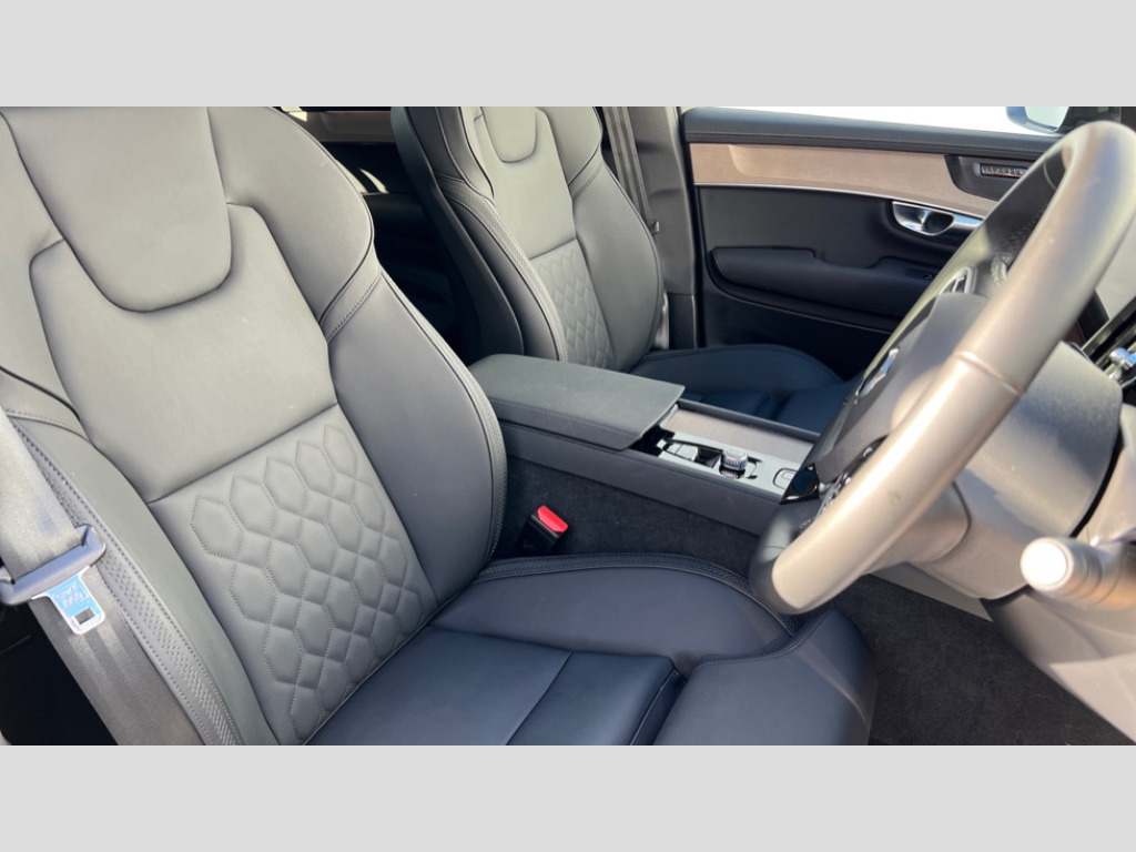 Volvo XC90 2.0 B5P Plus Dark 5dr AWD Geartronic 11.2" centre console touch screen, 12.3" Progressive Driver Display, 360 degree surround view parking camera with side proximity sensors, Adjustable steering wheel force, Apple carplay (wired), Bluetooth handsfree system, Driver alert control with lane keeping aid, Driver assistance (pilot assist and adaptive cruise control), Driver awareness - Blind spot information system with steer assist, cross traffic alert with autobrake and rear collision warning and mitigation, Driver monitoring system, Emergency call service, Front and rear park assist, Google Automotive Services - Navigation with Voice recoginition and google assistant, Handsfree power tailgate opening and closing, Intelligent speed assistance, Oncoming Lane Mitigation, PAS, Power operated tailgate, Service interval indicator, Speed sensitive steering, Trip computer, Volvo on call, Wireless/Inductive Mobile Phone Charging, 8 speed automatic transmission with start/stop + manual change functions, Active four C chassis - four corner adaptive dampers with electronic air suspension, DAB Radio (Digital Audio Broadcasting), Premium Sound by Harman Kardon, dirac unison, dolby pro logic II surround sound, 13 speakers/600W output and fresh air subwoofer, Steering wheel remote infotainment controls, Adaptive brake lights with high level LED brake lights, Auto dimming interior + exterior mirrors, Auto folding and heated power door mirrors, Automatic headlight levelling system, Automatic matrix LED headlights with Adaptive shadow technology and Active high beam, incorporating Day running lights, Body colour bumpers, Front and rear power windows, Headlight cleaning system, Heated front windscreen, High gloss black door mirrors and window surround, High gloss black front and rear bumper deco, High gloss black front grille and deco, Home safe and approach lighting, Integrated roof rails in high gloss black, Power glass tilt and slide panoramic sunroof with sun curtain, Puddle lights, Rain sensor with automatic windscreen wiper activation, Rear side wing doors, Rear wash/wipe with intermittent wipe setting, Roof antenna, Roof spoiler, Visible VIN plate, 12V socket in luggage compartment, 2nd Row centre armrest with and cupholders, 3 Spoke tailored sport steering wheel with chrome trim, 4 zone electronic climate control with Clean zone air quality system + pollen filter, A-pillar parking ticket holder, Air conditioning for 3rd row of seats, Air purifier PM2.5, Ambient door and instrument panel lighting, B Pillar ventilation, Bright metal luggage scuff plate, Centre console cupholders and storage, Floor mats, Front and rear courtesy lights, Front and rear door pocket illumination, Front footwell and side step illumination, Front headrests, Front reading lights, Front seat cushion extensions, Front tunnel storage illumination, Glovebox compartment light, Heated front seats, Heated rear seats, Heated steering wheel, Height/reach adjustable steering column, Illuminated front and rear aluminium tread plates, Illuminated luggage compartment, Illuminated tailgate, Illuminated vanity mirrors + ticket holder, Inner door release handle illumination, Isofix outer rear child seat preparation in 2nd row, Load cover, Load protection net, Lockable glovebox compartment, Luggage compartment divider with grocery bag holder, Outboard armrest with cupholder and storage for third row passengers, Power driver seat with multi directional lumbar support and memory for seat and exterior mirrors, Power folding 2nd row headrests, Power passenger seat with multi directional lumbar support and memory, Rear footwell and side step illumination, Rear headrests, Rear reading lights, Second row integrated child seat for centre seat, Single front passenger seat, Textile headlining, Three 2nd row individual folding passenger seats with fore/aft adjustment, Two 3rd row individual folding passenger seats, Underfloor luggage compartment storage, 7 three point seatbelts, City safety with steering support includes pedestrian, cyclist detection, front collision warning with full auto brake and rear auto brake, Driver and passenger airbags, Drivers knee airbag, First aid kit, Front seats SIPS airbags, Hill descent control - off drive mode, Hill start assist, IC (Inflatable Curtains) - Full Length, Passenger airbag cut-off switch, Power child locks on rear doors, Power parking brake with auto hold function, Road sign information display, Run off Road Protection, Seatbelt reminder and pretensioners for all seats, SIPS (Side Impact Protection System), Slippery road and hazard light alert, Stability and Traction Control with Spin control, Engine Drag Control and Corner Traction Control, Tyre pressure monitoring system, Vehicle deceleration control with Anti-lock Brake System, Electronic Brake Distribution and Emergency Brake Assist, Warning triangle, WHIPS whiplash protection system - front, 2x Key integrated remote control central locking + deadlocking system and auto open/close windows, Anti-theft alarm including immobiliser/volume sensor + level sensor, Keyless drive includes keyless entry and keyless start, Locking wheel nuts, Tailored instrument panel and door tops, Tempa spare wheel and jack