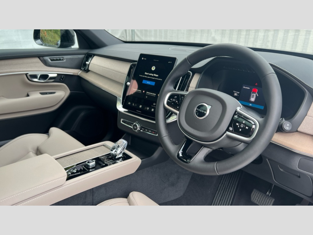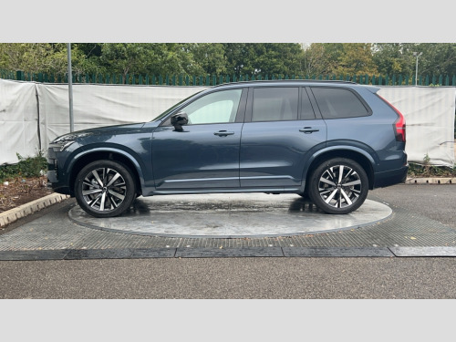 Volvo XC90 2.0 B5P Plus Dark 5dr AWD Geartronic 11.2" centre console touch screen, 12.3" Progressive Driver Display, 360 degree surround view parking camera with side proximity sensors, Adjustable steering wheel force, Apple carplay (wired), Bluetooth handsfree system, Driver alert control with lane keeping aid, Driver assistance (pilot assist and adaptive cruise control), Driver awareness - Blind spot information system with steer assist, cross traffic alert with autobrake and rear collision warning and mitigation, Driver monitoring system, Emergency call service, Front and rear park assist, Google Automotive Services - Navigation with Voice recoginition and google assistant, Handsfree power tailgate opening and closing, Intelligent speed assistance, Oncoming Lane Mitigation, PAS, Power operated tailgate, Service interval indicator, Speed sensitive steering, Trip computer, Volvo on call, Wireless/Inductive Mobile Phone Charging, 8 speed automatic transmission with start/stop + manual change functions, Active four C chassis - four corner adaptive dampers with electronic air suspension, DAB Radio (Digital Audio Broadcasting), Premium Sound by Harman Kardon, dirac unison, dolby pro logic II surround sound, 13 speakers/600W output and fresh air subwoofer, Steering wheel remote infotainment controls, Adaptive brake lights with high level LED brake lights, Auto dimming interior + exterior mirrors, Auto folding and heated power door mirrors, Automatic headlight levelling system, Automatic matrix LED headlights with Adaptive shadow technology and Active high beam, incorporating Day running lights, Body colour bumpers, Front and rear power windows, Headlight cleaning system, Heated front windscreen, High gloss black door mirrors and window surround, High gloss black front and rear bumper deco, High gloss black front grille and deco, Home safe and approach lighting, Integrated roof rails in high gloss black, Power glass tilt and slide panoramic sunroof with sun curtain, Puddle lights, Rain sensor with automatic windscreen wiper activation, Rear side wing doors, Rear wash/wipe with intermittent wipe setting, Roof antenna, Roof spoiler, Visible VIN plate, 12V socket in luggage compartment, 2nd Row centre armrest with and cupholders, 3 Spoke tailored sport steering wheel with chrome trim, 4 zone electronic climate control with Clean zone air quality system + pollen filter, A-pillar parking ticket holder, Air conditioning for 3rd row of seats, Air purifier PM2.5, Ambient door and instrument panel lighting, B Pillar ventilation, Bright metal luggage scuff plate, Centre console cupholders and storage, Floor mats, Front and rear courtesy lights, Front and rear door pocket illumination, Front footwell and side step illumination, Front headrests, Front reading lights, Front seat cushion extensions, Front tunnel storage illumination, Glovebox compartment light, Heated front seats, Heated rear seats, Heated steering wheel, Height/reach adjustable steering column, Illuminated front and rear aluminium tread plates, Illuminated luggage compartment, Illuminated tailgate, Illuminated vanity mirrors + ticket holder, Inner door release handle illumination, Isofix outer rear child seat preparation in 2nd row, Load cover, Load protection net, Lockable glovebox compartment, Luggage compartment divider with grocery bag holder, Nordico quilted upholstery, Outboard armrest with cupholder and storage for third row passengers, Power driver seat with multi directional lumbar support and memory for seat and exterior mirrors, Power folding 2nd row headrests, Power passenger seat with multi directional lumbar support and memory, Rear footwell and side step illumination, Rear headrests, Rear reading lights, Second row integrated child seat for centre seat, Single front passenger seat, Textile headlining, Three 2nd row individual folding passenger seats with fore/aft adjustment, Two 3rd row individual folding passenger seats, Underfloor luggage compartment storage, 7 three point seatbelts, City safety with steering support includes pedestrian, cyclist detection, front collision warning with full auto brake and rear auto brake, Driver and passenger airbags, Drivers knee airbag, First aid kit, Front seats SIPS airbags, Hill descent control - off drive mode, Hill start assist, IC (Inflatable Curtains) - Full Length, Passenger airbag cut-off switch, Power child locks on rear doors, Power parking brake with auto hold function, Road sign information display, Run off Road Protection, Seatbelt reminder and pretensioners for all seats, SIPS (Side Impact Protection System), Slippery road and hazard light alert, Stability and Traction Control with Spin control, Engine Drag Control and Corner Traction Control, Tyre pressure monitoring system, Vehicle deceleration control with Anti-lock Brake System, Electronic Brake Distribution and Emergency Brake Assist, Warning triangle, WHIPS whiplash protection system - front, 2x Key integrated remote control central locking + deadlocking system and auto open/close windows, Anti-theft alarm including immobiliser/volume sensor + level sensor, Keyless drive includes keyless entry and keyless start, Locking wheel nuts, Tailored instrument panel and door tops, Tempa spare wheel and jack
