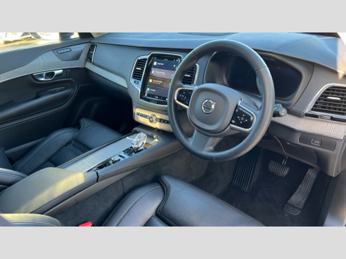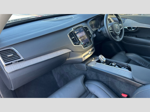 Volvo XC90 2.0 B5P Plus Edition Dark 5dr AWD Geartronic 12.3" Progressive Driver Display, 360 degree surround view parking camera with side proximity sensors, 9" centre console portrait touch screen, Adjustable steering wheel force, Apple carplay (wired), Bluetooth handsfree system, Driver alert control with lane keeping aid, Driver assistance (pilot assist and adaptive cruise control), Driver awareness - Blind spot information system with steer assist, cross traffic alert with autobrake and rear collision warning and mitigation, Emergency call service, Front and rear park assist, Google Automotive Services - Navigation with Voice recoginition and google assistant, Handsfree power tailgate opening and closing, Intelligent speed assistance, Oncoming Lane Mitigation, Power operated tailgate, Service interval indicator, Speed sensitive steering, Trip computer, Volvo on call, Wireless/Inductive Mobile Phone Charging, 8 speed automatic transmission with start/stop + manual change functions, Touring chassis, DAB Radio (Digital Audio Broadcasting), Premium Sound by Harman Kardon, dirac unison, dolby pro logic II surround sound, 13 speakers/600W output and fresh air subwoofer, Steering wheel remote infotainment controls, Active bending headlights with adaptive shadow technology, Adaptive brake lights with high level LED brake lights, Auto dimming interior + exterior mirrors, Auto folding and heated power door mirrors, Automatic headlight levelling system, Automatic LED Headlights + Active high beam incorporating daytime running lights, Body colour bumpers, Dark tinted windows - rear side windows and rear screen, Front and rear power windows, Headlight cleaning system, Heated front windscreen, High gloss black door mirrors and window surround, High gloss black front and rear bumper deco, High gloss black mesh front grille with surround, Home safe and approach lighting, Integrated roof rails in high gloss black, Laminated side and rear windows, LED front fog lights with cornering light function, Power glass tilt and slide panoramic sunroof with sun curtain, Puddle lights, Rain sensor with automatic windscreen wiper activation, Rear side step illumination, Rear side wing doors, Rear wash/wipe with intermittent wipe setting, Roof antenna, Roof spoiler, Visible VIN plate, 12V socket front tunnel console, rear passenger compartment, 2nd Row centre armrest with and cupholders, 3 Spoke tailored steering wheel with chrome trim, 4 zone electronic climate control with Clean zone air quality system + pollen filter, A-pillar parking ticket holder, Air conditioning for 3rd row of seats, Air purifier PM2.5, Ambient door and instrument panel lighting, B Pillar ventilation, Bright metal luggage scuff plate, Centre console cupholders and storage, Floor mats, Front and rear courtesy lights, Front and rear door pocket illumination, Front footwell and side step illumination, Front headrests, Front reading lights, Front seat cushion extensions, Front seat power side support, Front tunnel storage illumination, Heated front seats, Heated rear seats, Heated steering wheel, Height/reach adjustable steering column, Illuminated front and rear tread plates, Illuminated luggage compartment, Illuminated tailgate, Illuminated vanity mirrors + ticket holder, Illumination lockable glovebox compartment, Inner door release handle illumination, Integrated sun curtains in rear doors, Isofix outer rear child seat preparation in 2nd row, Load cover, Load protection net, Lockable glovebox compartment, Luggage compartment divider with grocery bag holder, Nappa soft leather perforated /ventilated upholstery, Outboard armrest with cupholder and storage for third row passengers, Power driver seat with multi directional lumbar support and memory for seat and exterior mirrors, Power folding 2nd row headrests, Power passenger seat with multi directional lumbar support and memory, Rear footwell illumination, Rear headrests, Rear reading lights, Single front passenger seat, Three 2nd row individual folding passenger seats with fore/aft adjustment, Two 3rd row individual folding passenger seats, Underfloor luggage compartment storage, 7 three point seatbelts, City safety with steering support includes pedestrian, cyclist detection, front collision warning with full auto brake and rear auto brake, Driver and passenger airbags, Drivers knee airbag, First aid kit, Front seats SIPS airbags, Hill descent control - off drive mode, Hill start assist, IC (Inflatable Curtains) - Full Length, Passenger airbag cut-off switch, Power child locks on rear doors, Power parking brake with auto hold function, Road sign information display, Run off Road Mitigation, Run off Road Protection, Seatbelt reminder and pretensioners for all seats, SIPS (Side Impact Protection System), Slippery road and hazard light alert, Stability and Traction Control with Spin control, Engine Drag Control and Corner Traction Control, Tyre pressure monitoring system, Vehicle deceleration control with Anti-lock Brake System, Electronic Brake Distribution and Emergency Brake Assist, Warning triangle, WHIPS whiplash protection system - front, 2x Key integrated remote control central locking + deadlocking system and auto open/close windows, Anti-theft alarm including immobiliser/volume sensor + level sensor, Care key with user defined top speed, Keyless drive includes keyless entry and keyless start, Locking wheel nuts, Tailored Instrument Panel and Door Tops with Contrast Stitching, 21" 5 double spoke diamond cut black alloy wheels, Tempa spare wheel and jack