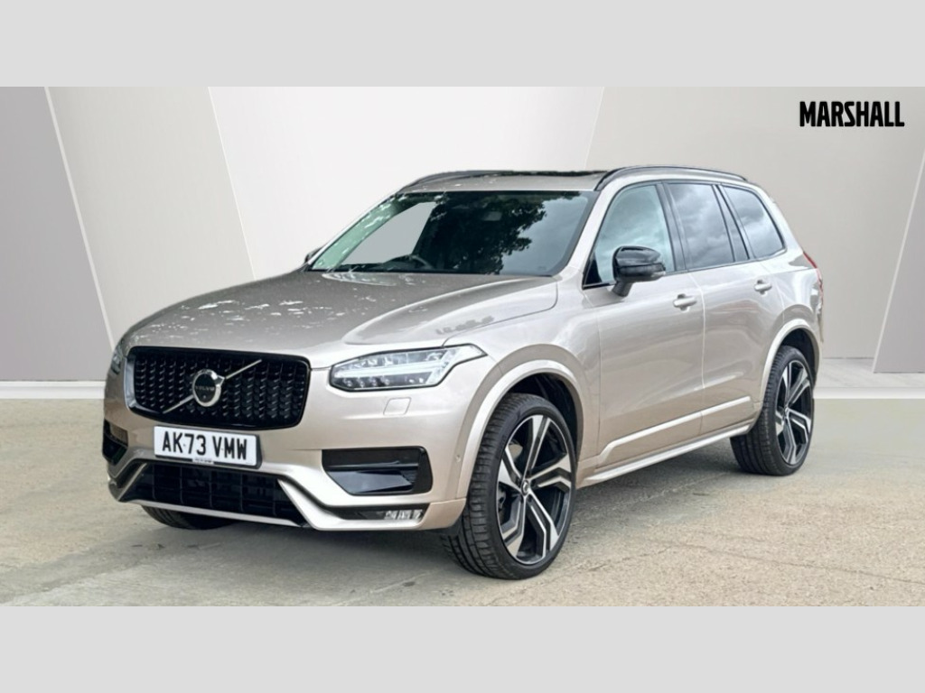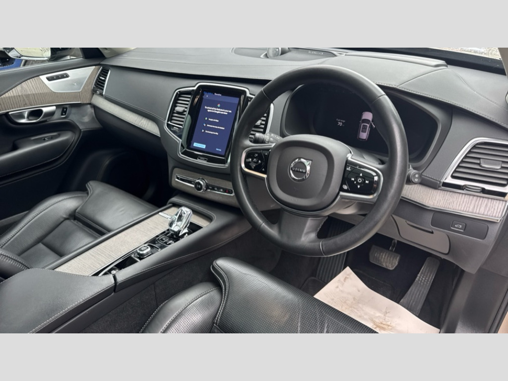 Volvo XC90 2.0 B5P Ultimate Dark 5dr AWD Geartronic 12.3" Progressive Driver Display, 360 degree surround view parking camera with side proximity sensors, 9" centre console portrait touch screen, Adjustable steering wheel force, Bluetooth hands free telephone connection, Driver alert control with lane keeping aid, Driver assistance (pilot assist and adaptive cruise control), Driver awareness - Blind spot information system with steer assist, cross traffic alert with autobrake and rear collision warning and mitigation, Emergency call service, Front and rear park assist, Google Automotive Services - Navigation with Voice recoginition and google assistant, Handsfree power tailgate opening and closing, Oncoming Lane Mitigation, Power operated tailgate, Service interval indicator, Speed limiter, Speed sensitive steering, Trip computer, Volvo on call, Wireless Mobile Phone Charger, 8 speed automatic transmission with start/stop + manual change functions, Active four C chassis - four corner adaptive dampers with electronic air suspension, DAB Radio (Digital Audio Broadcasting), Premium Sound by Bowers and Wilkins, dirac live, dolby pro logic II surround sound, 18 speakers/1400W output and fresh air subwoofer, Steering wheel remote infotainment controls, Active bending headlights with adaptive shadow technology, Adaptive brake lights with high level LED brake lights, Auto dimming interior + exterior mirrors, Auto folding and heated power door mirrors, Automatic headlight levelling system, Automatic LED Headlights + Active high beam incorporating daytime running lights, Body colour bumpers, Dark tinted windows - rear side windows and rear screen, Front and rear power windows, Headlight cleaning system, High gloss black door mirrors and window surround, High gloss black front and rear bumper deco, High gloss black mesh front grille with surround, Home safe and approach lighting, Integrated roof rails in high gloss black, LED front fog lights with cornering light function, Power glass tilt and slide panoramic sunroof with sun curtain, Puddle lights, Rain sensor with automatic windscreen wiper activation, Rear side wing doors, Rear wash/wipe with intermittent wipe setting, Roof antenna, Roof spoiler, Visible VIN plate, 12V socket front tunnel console, rear passenger compartment and cargo area, 2 seat bench in 3rd row, 2nd Row centre armrest with and cupholders, 3 seat bench in 2nd row, 4 zone electronic climate control with Clean zone air quality system + pollen filter, A-pillar parking ticket holder, Advanced interior air cleaner PM2.5, Air conditioning for 3rd row of seats, Ambient door and instrument panel lighting, B Pillar ventilation, Bright metal luggage threshold, Centre console cupholders and storage, Floor mats, Front and rear door pocket and front cupholder illumination, Front and rear reading lights, Theatre lighting and centre armrest storage illumination, Front footwell and side step illumination, Front headrests, Front seat cushion extensions, Heated front seats, Heated rear seats, Heated steering wheel, Height/reach adjustable steering column, Illuminated front and rear tread plates, Illuminated luggage compartment, Illuminated tailgate, Illuminated vanity mirrors + ticket holder, Illumination lockable glovebox compartment, Integrated sun curtains in rear doors, Isofix outer rear child seat preparation in 2nd row, Load protection net, Luggage compartment divider with grocery bag holder, Outboard armrest with cupholder and storage for third row passengers, Power driver seat with multi directional lumbar support and memory for seat and exterior mirrors, Power folding 2nd row headrests, Power passenger seat with multi directional lumbar support and memory, Rear footwell and side step illumination, Rear headrests, Semi automatic load cover, Single front passenger seat, Underfloor luggage compartment storage, 7 three point seatbelts, City safety with steering support includes pedestrian, cyclist and large animal detection and front collision warning with full auto brake, Drivers knee airbag, Dual stage driver/passenger airbags, First aid kit, Front seats SIPS airbags, Hill descent control - off drive mode, Hill start assist, IC (Inflatable Curtains) - Full Length, Passenger airbag cut-off switch, Power child locks on rear doors, Power parking brake with auto hold function, Road sign information display, Run off Road Mitigation, Run off Road Protection, Seatbelt reminder and pretensioners for all seats, SIPS (Side Impact Protection System), Slippery road and hazard light alert, Stability and Traction Control with Spin control, Engine Drag Control and Corner Traction Control, Tyre pressure monitoring system, Vehicle deceleration control with Anti-lock Brake System, Electronic Brake Distribution and Emergency Brake Assist, Warning triangle, WHIPS whiplash protection system - front, Anti-theft alarm including immobiliser/volume sensor + level sensor, Care key with user defined top speed, Key integrated remote control central locking + fuel flap with deadlocking system and auto open/close power windows, Keyless drive includes keyless entry and keyless start, Locking wheel nuts, Private locking for glovebox and tailgate, Tailored Instrument Panel and Door Tops with Contrast Stitching, Tempa spare wheel and jack