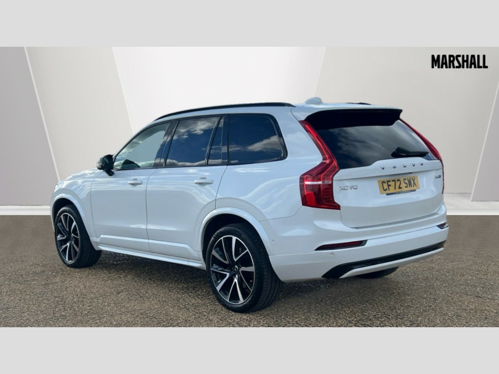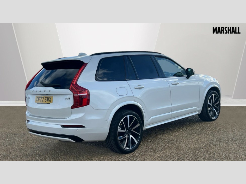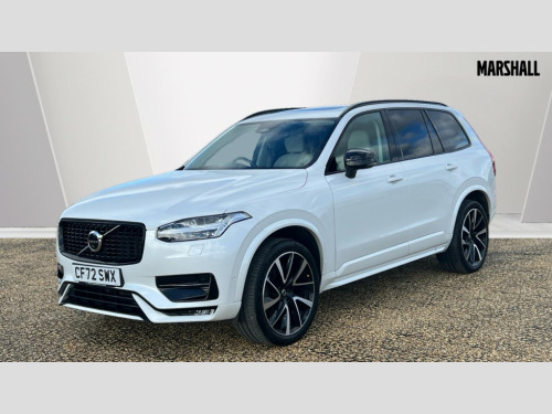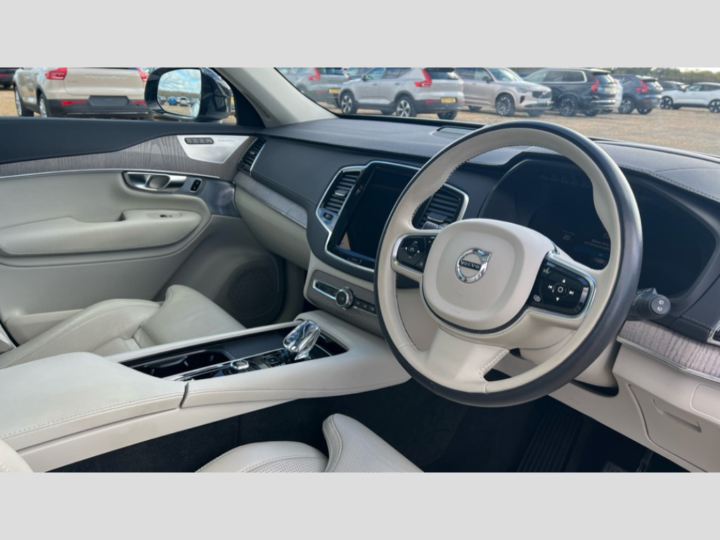 Volvo XC90 2.0 B5P Ultimate Dark 5dr AWD Geartronic 12.3" Progressive Driver Display, 360 degree surround view parking camera with side proximity sensors, 9" centre console portrait touch screen, Adjustable steering wheel force, Bluetooth hands free telephone connection, Driver alert control with lane keeping aid, Driver assistance (pilot assist and adaptive cruise control), Driver awareness - Blind spot information system with steer assist, cross traffic alert with autobrake and rear collision warning and mitigation, Emergency call service, Front and rear park assist, Google Automotive Services - Navigation with Voice recoginition and google assistant, Handsfree power tailgate opening and closing, Oncoming Lane Mitigation, Power operated tailgate, Service interval indicator, Speed limiter, Speed sensitive steering, Trip computer, Volvo on call, Wireless Mobile Phone Charger, 8 speed automatic transmission with start/stop + manual change functions, Active four C chassis - four corner adaptive dampers with electronic air suspension, DAB Radio (Digital Audio Broadcasting), Premium Sound by Bowers and Wilkins, dirac live, dolby pro logic II surround sound, 18 speakers/1400W output and fresh air subwoofer, Steering wheel remote infotainment controls, Active bending headlights with adaptive shadow technology, Adaptive brake lights with high level LED brake lights, Auto dimming interior + exterior mirrors, Auto folding and heated power door mirrors, Automatic headlight levelling system, Automatic LED Headlights + Active high beam incorporating daytime running lights, Body colour bumpers, Dark tinted windows - rear side windows and rear screen, Front and rear power windows, Headlight cleaning system, High gloss black door mirrors and window surround, High gloss black front and rear bumper deco, High gloss black mesh front grille with surround, Home safe and approach lighting, Integrated roof rails in high gloss black, LED front fog lights with cornering light function, Power glass tilt and slide panoramic sunroof with sun curtain, Puddle lights, Rain sensor with automatic windscreen wiper activation, Rear side wing doors, Rear wash/wipe with intermittent wipe setting, Roof antenna, Roof spoiler, Visible VIN plate, 12V socket front tunnel console, rear passenger compartment and cargo area, 2 seat bench in 3rd row, 2nd Row centre armrest with and cupholders, 3 seat bench in 2nd row, 4 zone electronic climate control with Clean zone air quality system + pollen filter, A-pillar parking ticket holder, Advanced interior air cleaner PM2.5, Air conditioning for 3rd row of seats, Ambient door and instrument panel lighting, B Pillar ventilation, Bright metal luggage threshold, Centre console cupholders and storage, Floor mats, Front and rear door pocket and front cupholder illumination, Front and rear reading lights, Theatre lighting and centre armrest storage illumination, Front footwell and side step illumination, Front headrests, Front seat cushion extensions, Heated front seats, Heated rear seats, Heated steering wheel, Height/reach adjustable steering column, Illuminated front and rear tread plates, Illuminated luggage compartment, Illuminated tailgate, Illuminated vanity mirrors + ticket holder, Illumination lockable glovebox compartment, Integrated sun curtains in rear doors, Isofix outer rear child seat preparation in 2nd row, Load protection net, Luggage compartment divider with grocery bag holder, Outboard armrest with cupholder and storage for third row passengers, Power driver seat with multi directional lumbar support and memory for seat and exterior mirrors, Power folding 2nd row headrests, Power passenger seat with multi directional lumbar support and memory, Rear footwell and side step illumination, Rear headrests, Semi automatic load cover, Single front passenger seat, Underfloor luggage compartment storage, 7 three point seatbelts, City safety with steering support includes pedestrian, cyclist and large animal detection and front collision warning with full auto brake, Drivers knee airbag, Dual stage driver/passenger airbags, First aid kit, Front seats SIPS airbags, Hill descent control - off drive mode, Hill start assist, IC (Inflatable Curtains) - Full Length, Passenger airbag cut-off switch, Power child locks on rear doors, Power parking brake with auto hold function, Road sign information display, Run off Road Mitigation, Run off Road Protection, Seatbelt reminder and pretensioners for all seats, SIPS (Side Impact Protection System), Slippery road and hazard light alert, Stability and Traction Control with Spin control, Engine Drag Control and Corner Traction Control, Tyre pressure monitoring system, Vehicle deceleration control with Anti-lock Brake System, Electronic Brake Distribution and Emergency Brake Assist, Warning triangle, WHIPS whiplash protection system - front, Anti-theft alarm including immobiliser/volume sensor + level sensor, Care key with user defined top speed, Key integrated remote control central locking + fuel flap with deadlocking system and auto open/close power windows, Keyless drive includes keyless entry and keyless start, Locking wheel nuts, Private locking for glovebox and tailgate, Tailored Instrument Panel and Door Tops with Contrast Stitching, Tempa spare wheel and jack