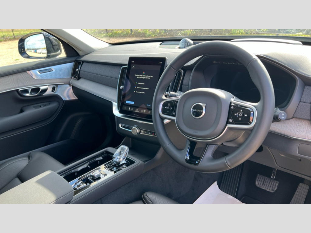 Volvo XC90 2.0 B5P Ultra Dark 5dr AWD Geartronic 11.2" centre console touch screen, 12.3" Progressive Driver Display, 360 degree surround view parking camera with side proximity sensors, Adjustable steering wheel force, Apple carplay (wired), Bluetooth handsfree system, Driver alert control with lane keeping aid, Driver assistance (pilot assist and adaptive cruise control), Driver awareness - Blind spot information system with steer assist, cross traffic alert with autobrake and rear collision warning and mitigation, Emergency call service, Front and rear park assist, Google Automotive Services - Navigation with Voice recoginition and google assistant, Handsfree power tailgate opening and closing, Intelligent speed assistance, Oncoming Lane Mitigation, PAS, Power operated tailgate, Service interval indicator, Speed sensitive steering, Trip computer, Volvo on call, Wireless/Inductive Mobile Phone Charging, 8 speed automatic transmission with start/stop + manual change functions, Active four C chassis - four corner adaptive dampers with electronic air suspension, DAB Radio (Digital Audio Broadcasting), Premium Sound by Bowers and Wilkins, dirac live, dolby pro logic II surround sound, 18 speakers/1400W output and fresh air subwoofer, Steering wheel remote infotainment controls, Adaptive brake lights with high level LED brake lights, Auto dimming interior + exterior mirrors, Auto folding and heated power door mirrors, Automatic headlight levelling system, Automatic matrix LED headlights with Adaptive shadow technology and Active high beam, incorporating Day running lights, Body colour bumpers, Bright chrome front grille and deco, Chrome front and rear bumper deco, Chrome lower side mouldings, Chrome window surround, Colour coordinated door mirrors, Dark tinted windows - rear side windows and rear screen, Front and rear power windows, Headlight cleaning system, Home safe and approach lighting, Integrated roof rails in Chrome, Laminated side and rear windows, Power glass tilt and slide panoramic sunroof with sun curtain, Puddle lights, Rain sensor with automatic windscreen wiper activation, Rear side wing doors, Rear wash/wipe with intermittent wipe setting, Roof antenna, Roof spoiler, Visible VIN plate, 12V socket in luggage compartment, 2nd Row centre armrest with and cupholders, 3 Spoke tailored sport steering wheel with chrome trim, 4 zone electronic climate control with Clean zone air quality system + pollen filter, A-pillar parking ticket holder, Air conditioning for 3rd row of seats, Air purifier PM2.5, Ambient door and instrument panel lighting, B Pillar ventilation, Bright metal luggage scuff plate, Centre console cupholders and storage, Floor mats, Front and rear courtesy lights, Front and rear door pocket illumination, Front footwell and side step illumination, Front headrests, Front reading lights, Front seat cushion extensions, Front tunnel storage illumination, Glovebox compartment light, Heated front seats, Heated rear seats, Heated steering wheel, Height/reach adjustable steering column, Illuminated front and rear aluminium tread plates, Illuminated luggage compartment, Illuminated tailgate, Illuminated vanity mirrors + ticket holder, Inner door release handle illumination, Integrated sun curtains in rear doors, Isofix outer rear child seat preparation in 2nd row, Load cover, Load protection net, Lockable glovebox compartment, Luggage compartment divider with grocery bag holder, Outboard armrest with cupholder and storage for third row passengers, Power driver seat with multi directional lumbar support and memory for seat and exterior mirrors, Power folding 2nd row headrests, Power passenger seat with multi directional lumbar support and memory, Rear footwell and side step illumination, Rear headrests, Rear reading lights, Second row integrated child seat for centre seat, Single front passenger seat, Three 2nd row individual folding passenger seats with fore/aft adjustment, Two 3rd row individual folding passenger seats, Underfloor luggage compartment storage, 7 three point seatbelts, City safety with steering support includes pedestrian, cyclist detection, front collision warning with full auto brake and rear auto brake, Driver and passenger airbags, Drivers knee airbag, First aid kit, Front seats SIPS airbags, Hill descent control - off drive mode, Hill start assist, IC (Inflatable Curtains) - Full Length, Passenger airbag cut-off switch, Power child locks on rear doors, Power parking brake with auto hold function, Road sign information display, Run off Road Protection, Seatbelt reminder and pretensioners for all seats, SIPS (Side Impact Protection System), Slippery road and hazard light alert, Stability and Traction Control with Spin control, Engine Drag Control and Corner Traction Control, Tyre pressure monitoring system, Vehicle deceleration control with Anti-lock Brake System, Electronic Brake Distribution and Emergency Brake Assist, Warning triangle, WHIPS whiplash protection system - front, 2x Key integrated remote control central locking + deadlocking system and auto open/close windows, Anti-theft alarm including immobiliser/volume sensor + level sensor, Keyless drive includes keyless entry and keyless start, Locking wheel nuts, Tailored instrument panel and door tops, Tempa spare wheel and jack