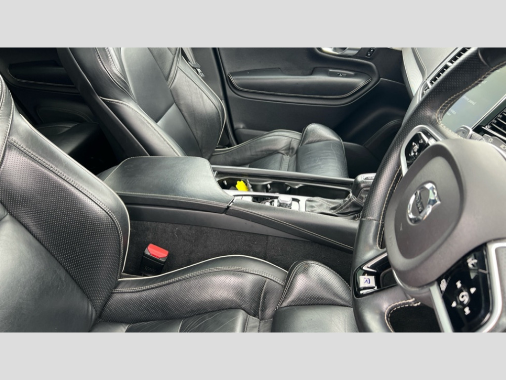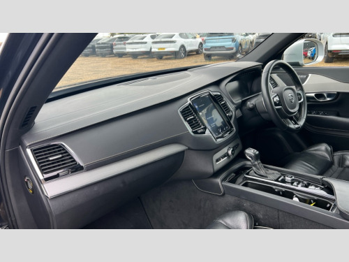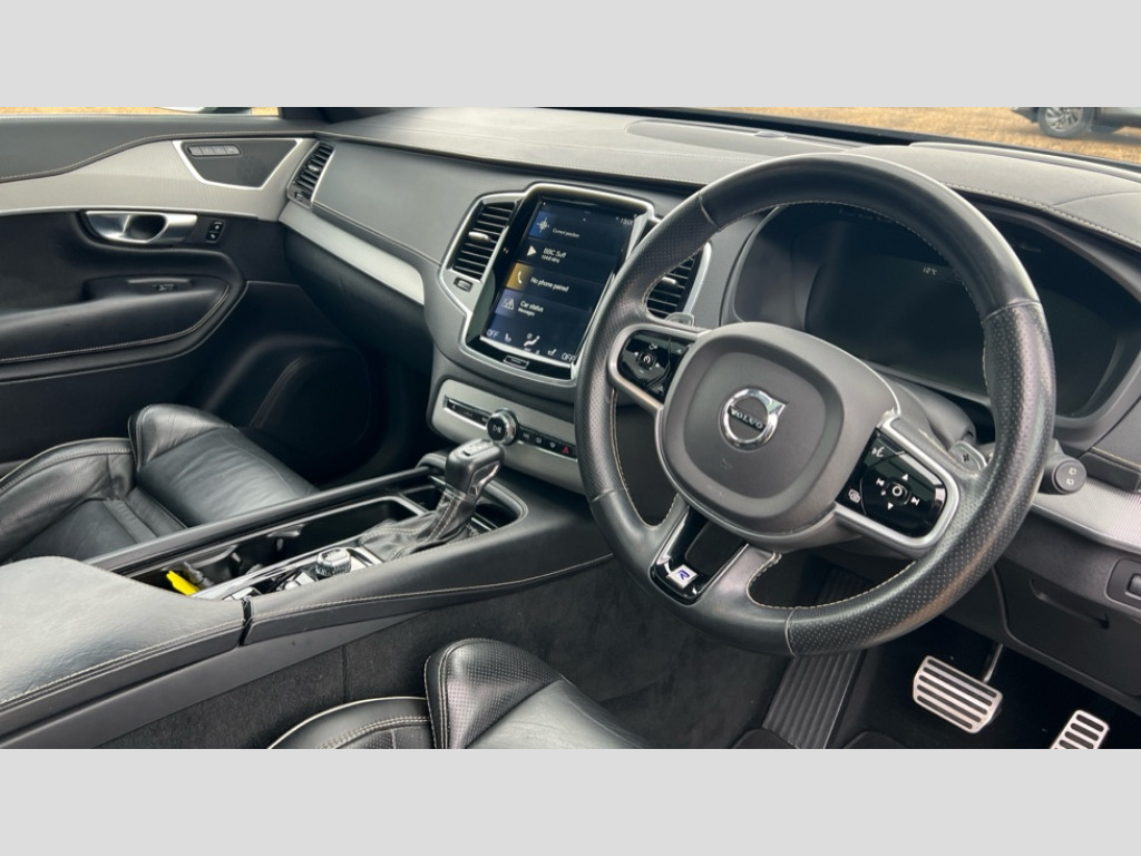 Volvo XC90 2.0 D5 PowerPulse R DESIGN Pro 5dr AWD Geartronic 12.3" Active TFT crystal driver's instrument display, Adaptive cruise control with pilot assist, Bluetooth hands free telephone connection, Drive mode settings, adjustable steering wheel force + hill descent control, Forward collision warning, Handsfree power boot opening and closing, Lane departure warning with driver alert control, Oncoming Lane Mitigation, Power tailgate, Service interval indicator, Speed dependant power steering system, Speed limiter, Touch screen centre multi info display, Trip computer, Voice control system, Volvo on call, Wireless internet connection, Active four C chassis - four corner adaptive dampers with electronic air suspension, Touring chassis, DAB Digital radio, Steering wheel audio controls, Active bending headlights, Adaptive brake lights, Auto dimming door mirrors, Auto dimming rear view mirror, Body colour bumpers, Cornering light, Dark tinted rear windows, Day time running light, Dual integrated exhaust pipes with high gloss black surround, Electric adjustable/heated/folding door mirrors, Front and rear electric windows, Headlamp cleaning system, Headlamp levelling, Heated washer nozzles, High beam assist, High gloss black lower front bumper, High gloss black mesh grille, Home safe and approach lighting, Illuminated side steps, LED front fog lights, LED Headlights, Matt silver finish door mirrors, Puddle lights, Rain sensor windscreen wipers, Rear wash/wipe with intermittent wipe setting, Roof spoiler, Silk metal grille surround, Silk metal window trim, Silver roof rails, 12V Accessory socket in centre console, 12V power point in luggage area, 12V socket in rear tunnel console, 2 individual folding 3rd row seats, 3 individual folding 2nd row seats, A-pillar parking ticket holder, Ambient lighting in door panels, B Pillar ventilation, Bright metal luggage threshold, Centre console storage box, Driver/passenger lumbar adjustment, Driver/passenger sunvisors and illuminated vanity mirrors, Electric front cushion extensions, Electric memory driver's seat + door mirror memory, Electrically adjustable passenger seat with memory, Front and rear centre armrests with cupholders, Front footwell illumination, Front headrests, Front/rear reading lights, Gearshift paddles, Grocery bag holder, Heated front seats, Heated steering wheel, Height/reach adjustable steering column, Illuminated front and rear tread plates, Illuminated front cupholder, Illuminated front/rear door pockets, Illuminated glovebox with lock, Illuminated luggage compartment, Illuminated tailgate, Instrument panel illumination control, Isofix rear child seat preparation in 2nd row, Leather instrument panel and door tops, Load cover, Multicolour theatre lights, Outboard armrest with cupholder and storage for 3rd row, Passenger seat electric height adjuster, Perforated leather gearknob, Perforated Leather Key Integrated Remote, Perforated leather steering wheel, Pollen filter, Rear footwell illumination, Rear headrests, Sports floor mats, Sports pedals, Sun curtain - rear side doors, Underfloor stowage compartment, 7 three point seatbelts, ABS/EBD, City safety braking system, Drivers knee airbag, Dual stage driver/passenger airbags, EBA, Electronic parking brake with auto hold, Front and rear curtain airbags, Front seat side impact airbags, Hill start assist, Inflatable curtain, Passenger airbag cut-off device, Pedestrian and Cyclist Detection, Road sign information display, Run off Road Protection, Seatbelt pre-tensioners, Seatbelt warning, STC - Stability and traction control, Tyre pressure monitoring system, Warning triangle and first aid kit, WHIPS whiplash protection system - front, Anti-theft alarm including immobiliser/volume sensor + level sensor, Deadlocking system, Keyless drive, Locking wheel nuts, Private locking, Remote central locking - doors and fuel cap, Tempa spare wheel