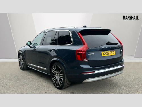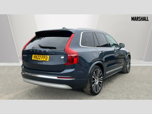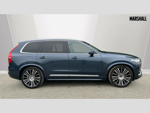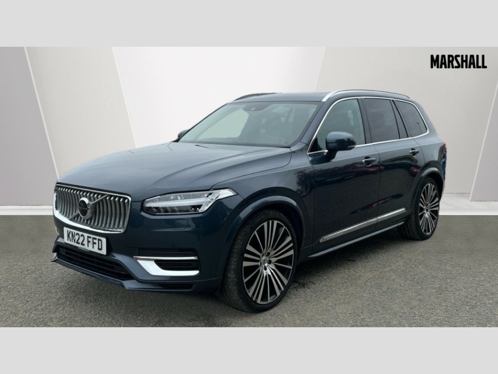 Volvo XC90 2.0 T8 [455] RC PHEV Inscription Pro 5dr AWD Auto 12.3" Active TFT crystal driver's instrument display, 9" centre console portrait touch screen, Adjustable steering wheel force, Bluetooth hands free telephone connection, Drive mode settings, Driver alert control with lane keeping aid, Driver assistance (pilot assist and adaptive cruise control), Driver awareness - Blind spot information system with steer assist, cross traffic alert with autobrake and rear collision warning and mitigation, Emergency call service, Front and rear park assist, Handsfree power tailgate opening and closing, Oncoming Lane Mitigation, Sensus navigation with European mapping and traffic information, Service interval indicator, Smartphone integration with Apple CarPlay and Android auto, Speed limiter, Speed sensitive steering, Trip computer, Voice activated control for key functions, Volvo on call, 7m Charge Cable with 3 Pin Plug, 7m Type 2/mode 3 charge cable, 8 speed automatic transmission with start/stop + manual change functions, Active four C chassis - four corner adaptive dampers with electronic air suspension, All wheel drive system, Electric rear axle drive, Lithium-ion battery, Recharging port located in nearside front wing, DAB Radio (Digital Audio Broadcasting), Steering wheel remote infotainment controls, Adaptive brake lights with high level LED brake lights, Auto dimming interior + exterior mirrors, Automatic headlight levelling system, Automatic LED Headlights + Active high beam incorporating daytime running lights, Body colour bumpers, Chrome Front and Rear Bumper plus Lower Side Mouldings, Chrome window surround, Colour coordinated auto folding and heated power door mirrors, Dual integrated exhaust pipes, Front and rear power windows, Heated washer nozzles, Home safe and approach lighting, Integrated roof rails in silver, Matt silver front grille with chrome detailing, Puddle lights, Rain sensor with automatic windscreen wiper activation, Rear side wing doors, Rear wash/wipe with intermittent wipe setting, Roof antenna, Roof spoiler, Visible VIN plate, 12V socket front tunnel console, rear passenger compartment and cargo area, 2 seat bench in 3rd row, 3 seat bench in 2nd row, 4 Zone electronic climate control + cooled glovebox, A-pillar parking ticket holder, Ambient door and instrument panel lighting, B Pillar ventilation, Bright metal luggage threshold, Cargo divider with grocery bag holder, Centre console cupholders and storage, Driver's side lower dashboard storage compartment, Front and rear door pocket and front cupholder illumination, Front footwell and side step illumination, Front headrests, Front seat backrest massage, Front seat cushion extension and power adjustable front seats side support, Heated front seats, Height/reach adjustable steering column, Illuminated luggage compartment, Illuminated tailgate, Illuminated vanity mirrors + ticket holder, Illumination lockable glovebox compartment, Integrated sun curtains in rear doors, Load protection net, Luxury floor mats, Multicolour theatre lighting, Orrefors Crystal gear lever knob, Outboard armrest with cupholder and storage for third row passengers, Perforated and ventilated nappa soft leather upholstery, Power driver seat with multi directional lumbar support and memory for seat and exterior mirrors, Power folding 2nd row headrests, Power passenger seat with multi directional lumbar support and memory, Rear footwell and side step illumination, Rear headrests, Recharge aluminium tread plates, Semi automatic load cover, Single front passenger seat, Underfloor cargo storage, Lighting pack - XC90 Recharge, 7 three point seatbelts, City safety includes pedestrian, cyclist and large animal detection and front collision warning with full auto brake, Drivers knee airbag, Dual stage driver/passenger airbags, First aid kit, Front seats SIPS airbags, Hill descent control, Hill start assist, IC (Inflatable Curtains) - Full Length, Passenger airbag cut-off switch, Power parking brake with auto hold function, Road sign information display, Run off Road Mitigation, Run off Road Protection, Seatbelt reminder and pretensioners for all seats, SIPS (Side Impact Protection System), Slippery road and hazard light alert, Stability and Traction Control with Spin control, Engine Drag Control and Corner Traction Control, Tyre pressure monitoring system, Vehicle deceleration control with Anti-lock Brake System, Electronic Brake Distribution and Emergency Brake Assist, Warning triangle, WHIPS whiplash protection system - front, Anti-theft alarm including immobiliser/volume sensor + level sensor, Care key with user defined top speed, Key integrated remote control central locking + fuel flap with deadlocking system and auto open/close power windows, Keyless drive (includes keyless entry and keyless start) with remote tag, Locking wheel nuts, Private locking for glovebox and tailgate, Grey ash inlays, Tailored instrument panel and door tops, Tyre sealant kit + 12v compressor