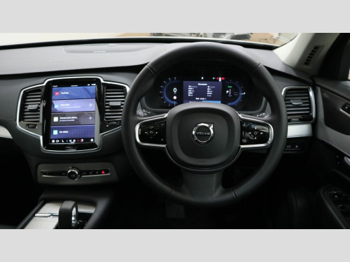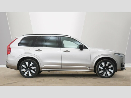 Volvo XC90 2.0 T8 [455] RC PHEV Plus Dark 5dr AWD Geartronic 12.3" Progressive Driver Display, 360 degree surround view parking camera with side proximity sensors, 9" centre console portrait touch screen, Adjustable steering wheel force, Bluetooth hands free telephone connection, Drive mode settings, Driver alert control with lane keeping aid, Driver assistance (pilot assist and adaptive cruise control), Driver awareness - Blind spot information system with steer assist, cross traffic alert with autobrake and rear collision warning and mitigation, Emergency call service, Front and rear park assist, Google Automotive Services - Navigation with Voice recoginition and google assistant, Handsfree power tailgate opening and closing, Oncoming Lane Mitigation, Power operated tailgate, Service interval indicator, Speed limiter, Speed sensitive steering, Trip computer, Volvo on call, Wireless Mobile Phone Charger, 3.7 kW monophase on board charger, 6m 3 phase 16amp Type 2 / mode 3 charge cable, 7m 10amp charge cable with 3 pin plug, 8 speed automatic transmission with start/stop + manual change functions, Electric rear axle drive, Lithium-ion battery, On board charger - 6.4 kW 2 phase/3.7kW single phase, Recharging port located in nearside front wing, Touring chassis, DAB Radio (Digital Audio Broadcasting), Low speed exterior sound speaker, Premium Sound by Harman Kardon, dirac unison, dolby pro logic II surround sound, 13 speakers/600W output and fresh air subwoofer, Steering wheel remote infotainment controls, Active bending headlights with adaptive shadow technology, Adaptive brake lights with high level LED brake lights, Auto dimming interior + exterior mirrors, Auto folding and heated power door mirrors, Automatic headlight levelling system, Automatic LED Headlights + Active high beam incorporating daytime running lights, Body colour bumpers, Front and rear power windows, Headlight cleaning system, Heated front windscreen, High gloss black door mirrors and window surround, High gloss black front and rear bumper deco, High gloss black mesh front grille with surround, Home safe and approach lighting, Integrated roof rails in high gloss black, Power glass tilt and slide panoramic sunroof with sun curtain, Puddle lights, Rain sensor with automatic windscreen wiper activation, Rear side wing doors, Rear wash/wipe with intermittent wipe setting, Roof antenna, Roof spoiler, Visible VIN plate, 12V socket front tunnel console, rear passenger compartment and cargo area, 2 seat bench in 3rd row, 2nd Row centre armrest with and cupholders, 3 seat bench in 2nd row, 4 zone electronic climate control with Clean zone air quality system + pollen filter, A-pillar parking ticket holder, Advanced interior air cleaner PM2.5, Air conditioning for 3rd row of seats, Ambient door and instrument panel lighting, B Pillar ventilation, Bright metal luggage threshold, Centre console cupholders and storage, Floor mats, Front and rear door pocket and front cupholder illumination, Front and rear reading lights, Theatre lighting and centre armrest storage illumination, Front footwell and side step illumination, Front headrests, Front seat cushion extensions, Heated front seats, Heated rear seats, Heated steering wheel, Height/reach adjustable steering column, Illuminated front and rear tread plates, Illuminated luggage compartment, Illuminated tailgate, Illuminated vanity mirrors + ticket holder, Illumination lockable glovebox compartment, Integrated sun curtains in rear doors, Isofix outer rear child seat preparation in 2nd row, Load protection net, Luggage compartment divider with grocery bag holder, Outboard armrest with cupholder and storage for third row passengers, Power driver seat with multi directional lumbar support and memory for seat and exterior mirrors, Power folding 2nd row headrests, Power passenger seat with multi directional lumbar support and memory, Rear footwell and side step illumination, Rear headrests, Recharge aluminium tread plates, Semi automatic load cover, Single front passenger seat, Underfloor luggage compartment storage, 7 three point seatbelts, City safety with steering support includes pedestrian, cyclist and large animal detection and front collision warning with full auto brake, Drivers knee airbag, Dual stage driver/passenger airbags, First aid kit, Front seats SIPS airbags, Hill descent control - off drive mode, Hill start assist, IC (Inflatable Curtains) - Full Length, Passenger airbag cut-off switch, Power child locks on rear doors, Power parking brake with auto hold function, Road sign information display, Run off Road Mitigation, Run off Road Protection, Seatbelt reminder and pretensioners for all seats, SIPS (Side Impact Protection System), Slippery road and hazard light alert, Stability and Traction Control with Spin control, Engine Drag Control and Corner Traction Control, Tyre pressure monitoring system, Vehicle deceleration control with Anti-lock Brake System, Electronic Brake Distribution and Emergency Brake Assist, Warning triangle, WHIPS whiplash protection system - front, Anti-theft alarm including immobiliser/volume sensor + level sensor, Care key with user defined top speed, Key integrated remote control central locking + fuel flap with deadlocking system and auto open/close power windows, Keyless drive includes keyless entry and keyless start, Locking wheel nuts, Private locking for glovebox and tailgate, Tailored Instrument Panel and Door Tops with Contrast Stitching, Tyre sealant kit and compressor
