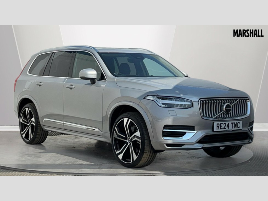Volvo XC90 2.0 T8 [455] RC PHEV Ultimate Dark 5dr AWD Gtron 12.3" Progressive Driver Display, 360 degree surround view parking camera with side proximity sensors, 9" centre console portrait touch screen, Adjustable steering wheel force, Bluetooth hands free telephone connection, Drive mode settings, Driver alert control with lane keeping aid, Driver assistance (pilot assist and adaptive cruise control), Driver awareness - Blind spot information system with steer assist, cross traffic alert with autobrake and rear collision warning and mitigation, Emergency call service, Front and rear park assist, Google Automotive Services - Navigation with Voice recoginition and google assistant, Handsfree power tailgate opening and closing, Oncoming Lane Mitigation, Power operated tailgate, Service interval indicator, Speed limiter, Speed sensitive steering, Trip computer, Volvo on call, Wireless Mobile Phone Charger, 3.7 kW monophase on board charger, 6m 3 phase 16amp Type 2 / mode 3 charge cable, 7m 10amp charge cable with 3 pin plug, 8 speed automatic transmission with start/stop + manual change functions, Active four C chassis - four corner adaptive dampers with electronic air suspension, Electric rear axle drive, Lithium-ion battery, On board charger - 6.4 kW 2 phase/3.7kW single phase, Recharging port located in nearside front wing, DAB Radio (Digital Audio Broadcasting), Low speed exterior sound speaker, Premium Sound by Bowers and Wilkins, dirac live, dolby pro logic II surround sound, 18 speakers/1400W output and fresh air subwoofer, Steering wheel remote infotainment controls, Active bending headlights with adaptive shadow technology, Adaptive brake lights with high level LED brake lights, Auto dimming interior + exterior mirrors, Auto folding and heated power door mirrors, Automatic headlight levelling system, Automatic LED Headlights + Active high beam incorporating daytime running lights, Body colour bumpers, Dark tinted windows - rear side windows and rear screen, Front and rear power windows, Headlight cleaning system, High gloss black door mirrors and window surround, High gloss black front and rear bumper deco, High gloss black mesh front grille with surround, Home safe and approach lighting, Integrated roof rails in high gloss black, Power glass tilt and slide panoramic sunroof with sun curtain, Puddle lights, Rain sensor with automatic windscreen wiper activation, Rear side wing doors, Rear wash/wipe with intermittent wipe setting, Roof antenna, Roof spoiler, Visible VIN plate, 12V socket front tunnel console, rear passenger compartment and cargo area, 2 seat bench in 3rd row, 2nd Row centre armrest with and cupholders, 3 seat bench in 2nd row, 4 zone electronic climate control with Clean zone air quality system + pollen filter, A-pillar parking ticket holder, Advanced interior air cleaner PM2.5, Air conditioning for 3rd row of seats, Ambient door and instrument panel lighting, B Pillar ventilation, Bright metal luggage threshold, Centre console cupholders and storage, Floor mats, Front and rear door pocket and front cupholder illumination, Front and rear reading lights, Theatre lighting and centre armrest storage illumination, Front footwell and side step illumination, Front headrests, Front seat cushion extensions, Heated front seats, Heated rear seats, Heated steering wheel, Height/reach adjustable steering column, Illuminated front and rear tread plates, Illuminated luggage compartment, Illuminated tailgate, Illuminated vanity mirrors + ticket holder, Illumination lockable glovebox compartment, Integrated sun curtains in rear doors, Isofix outer rear child seat preparation in 2nd row, Load protection net, Luggage compartment divider with grocery bag holder, Outboard armrest with cupholder and storage for third row passengers, Power driver seat with multi directional lumbar support and memory for seat and exterior mirrors, Power folding 2nd row headrests, Power passenger seat with multi directional lumbar support and memory, Rear footwell and side step illumination, Rear headrests, Recharge aluminium tread plates, Semi automatic load cover, Single front passenger seat, Underfloor luggage compartment storage, 7 three point seatbelts, City safety with steering support includes pedestrian, cyclist and large animal detection and front collision warning with full auto brake, Drivers knee airbag, Dual stage driver/passenger airbags, First aid kit, Front seats SIPS airbags, Hill descent control - off drive mode, Hill start assist, IC (Inflatable Curtains) - Full Length, Passenger airbag cut-off switch, Power child locks on rear doors, Power parking brake with auto hold function, Road sign information display, Run off Road Mitigation, Run off Road Protection, Seatbelt reminder and pretensioners for all seats, SIPS (Side Impact Protection System), Slippery road and hazard light alert, Stability and Traction Control with Spin control, Engine Drag Control and Corner Traction Control, Tyre pressure monitoring system, Vehicle deceleration control with Anti-lock Brake System, Electronic Brake Distribution and Emergency Brake Assist, Warning triangle, WHIPS whiplash protection system - front, Anti-theft alarm including immobiliser/volume sensor + level sensor, Care key with user defined top speed, Key integrated remote control central locking + fuel flap with deadlocking system and auto open/close power windows, Keyless drive includes keyless entry and keyless start, Locking wheel nuts, Private locking for glovebox and tailgate, Tailored Instrument Panel and Door Tops with Contrast Stitching, Tyre sealant kit and compressor