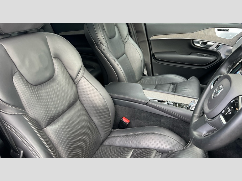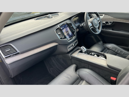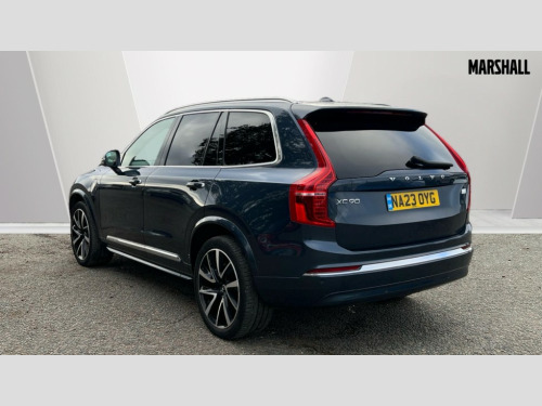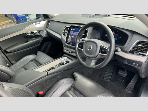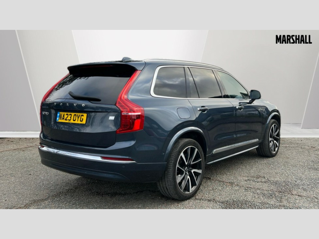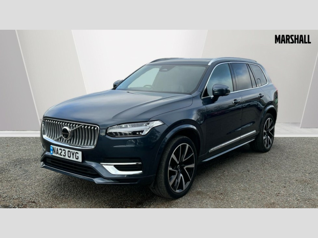 Volvo XC90 2.0 T8 [455] RC PHEV Ultimate Dark 5dr AWD Gtron 12.3" Progressive Driver Display, 360 degree surround view parking camera with side proximity sensors, 9" centre console portrait touch screen, Adjustable steering wheel force, Bluetooth hands free telephone connection, Drive mode settings, Driver alert control with lane keeping aid, Driver assistance (pilot assist and adaptive cruise control), Driver awareness - Blind spot information system with steer assist, cross traffic alert with autobrake and rear collision warning and mitigation, Emergency call service, Front and rear park assist, Google Automotive Services - Navigation with Voice recoginition and google assistant, Handsfree power tailgate opening and closing, Oncoming Lane Mitigation, Power operated tailgate, Service interval indicator, Speed limiter, Speed sensitive steering, Trip computer, Volvo on call, Wireless Mobile Phone Charger, 3.7 kW monophase on board charger, 7m 10amp Charge Cable with 3 Pin Plug and 7m 1-Phase 16amp Type 2 / Mode 3 Charge Cable, 8 speed automatic transmission with start/stop + manual change functions, Active four C chassis - four corner adaptive dampers with electronic air suspension, Electric rear axle drive, Lithium-ion battery, On board charger - 6.4 kW 2 phase/3.7kW single phase, Recharging port located in nearside front wing, DAB Radio (Digital Audio Broadcasting), Low speed exterior sound speaker, Premium Sound by Bowers and Wilkins, dirac live, dolby pro logic II surround sound, 18 speakers/1400W output and fresh air subwoofer, Steering wheel remote infotainment controls, Active bending headlights with adaptive shadow technology, Adaptive brake lights with high level LED brake lights, Auto dimming interior + exterior mirrors, Auto folding and heated power door mirrors, Automatic headlight levelling system, Automatic LED Headlights + Active high beam incorporating daytime running lights, Body colour bumpers, Dark tinted windows - rear side windows and rear screen, Front and rear power windows, Headlight cleaning system, High gloss black door mirrors and window surround, High gloss black front and rear bumper deco, High gloss black mesh front grille with surround, Home safe and approach lighting, Integrated roof rails in high gloss black, Power glass tilt and slide panoramic sunroof with sun curtain, Puddle lights, Rain sensor with automatic windscreen wiper activation, Rear side wing doors, Rear wash/wipe with intermittent wipe setting, Roof antenna, Roof spoiler, Visible VIN plate, 12V socket front tunnel console, rear passenger compartment and cargo area, 2 seat bench in 3rd row, 2nd Row centre armrest with and cupholders, 3 seat bench in 2nd row, 4 zone electronic climate control with Clean zone air quality system + pollen filter, A-pillar parking ticket holder, Advanced interior air cleaner PM2.5, Air conditioning for 3rd row of seats, Ambient door and instrument panel lighting, B Pillar ventilation, Bright metal luggage threshold, Centre console cupholders and storage, Floor mats, Front and rear door pocket and front cupholder illumination, Front and rear reading lights, Theatre lighting and centre armrest storage illumination, Front footwell and side step illumination, Front headrests, Front seat cushion extensions, Heated front seats, Heated rear seats, Heated steering wheel, Height/reach adjustable steering column, Illuminated front and rear tread plates, Illuminated luggage compartment, Illuminated tailgate, Illuminated vanity mirrors + ticket holder, Illumination lockable glovebox compartment, Integrated sun curtains in rear doors, Isofix outer rear child seat preparation in 2nd row, Load protection net, Luggage compartment divider with grocery bag holder, Outboard armrest with cupholder and storage for third row passengers, Power driver seat with multi directional lumbar support and memory for seat and exterior mirrors, Power folding 2nd row headrests, Power passenger seat with multi directional lumbar support and memory, Rear footwell and side step illumination, Rear headrests, Recharge aluminium tread plates, Semi automatic load cover, Single front passenger seat, Underfloor luggage compartment storage, 7 three point seatbelts, City safety with steering support includes pedestrian, cyclist and large animal detection and front collision warning with full auto brake, Drivers knee airbag, Dual stage driver/passenger airbags, First aid kit, Front seats SIPS airbags, Hill descent control - off drive mode, Hill start assist, IC (Inflatable Curtains) - Full Length, Passenger airbag cut-off switch, Power child locks on rear doors, Power parking brake with auto hold function, Road sign information display, Run off Road Mitigation, Run off Road Protection, Seatbelt reminder and pretensioners for all seats, SIPS (Side Impact Protection System), Slippery road and hazard light alert, Stability and Traction Control with Spin control, Engine Drag Control and Corner Traction Control, Tyre pressure monitoring system, Vehicle deceleration control with Anti-lock Brake System, Electronic Brake Distribution and Emergency Brake Assist, Warning triangle, WHIPS whiplash protection system - front, Anti-theft alarm including immobiliser/volume sensor + level sensor, Care key with user defined top speed, Key integrated remote control central locking + fuel flap with deadlocking system and auto open/close power windows, Keyless drive includes keyless entry and keyless start, Locking wheel nuts, Private locking for glovebox and tailgate, Tailored Instrument Panel and Door Tops with Contrast Stitching, Tyre sealant kit and compressor