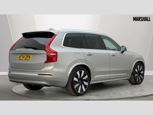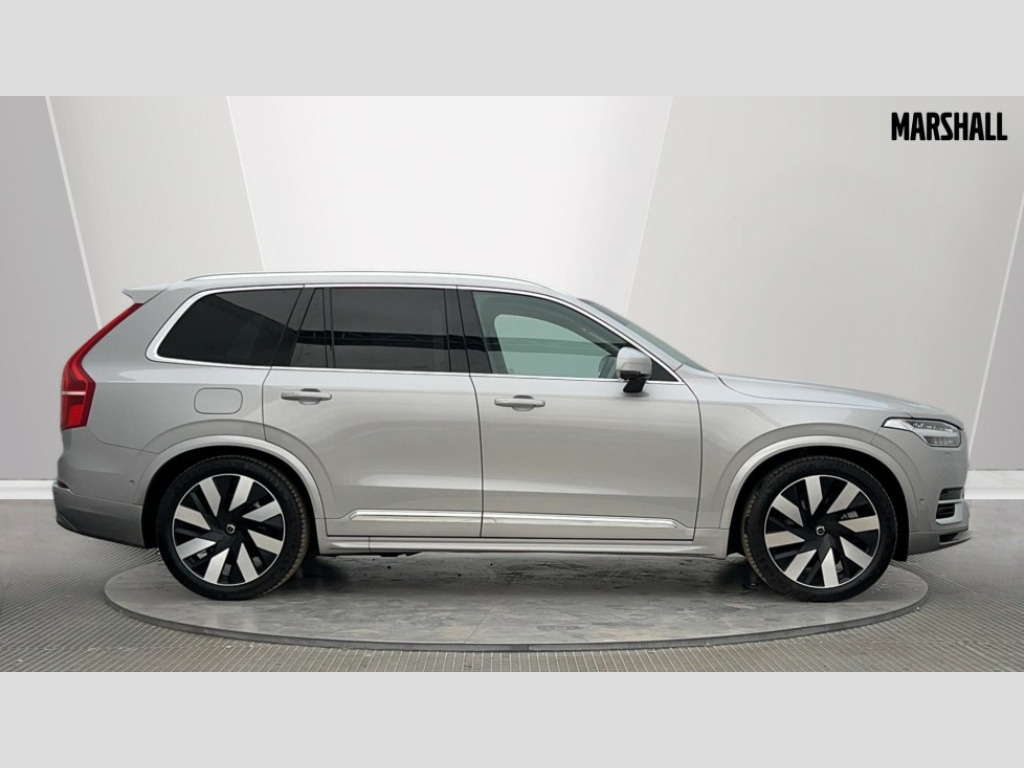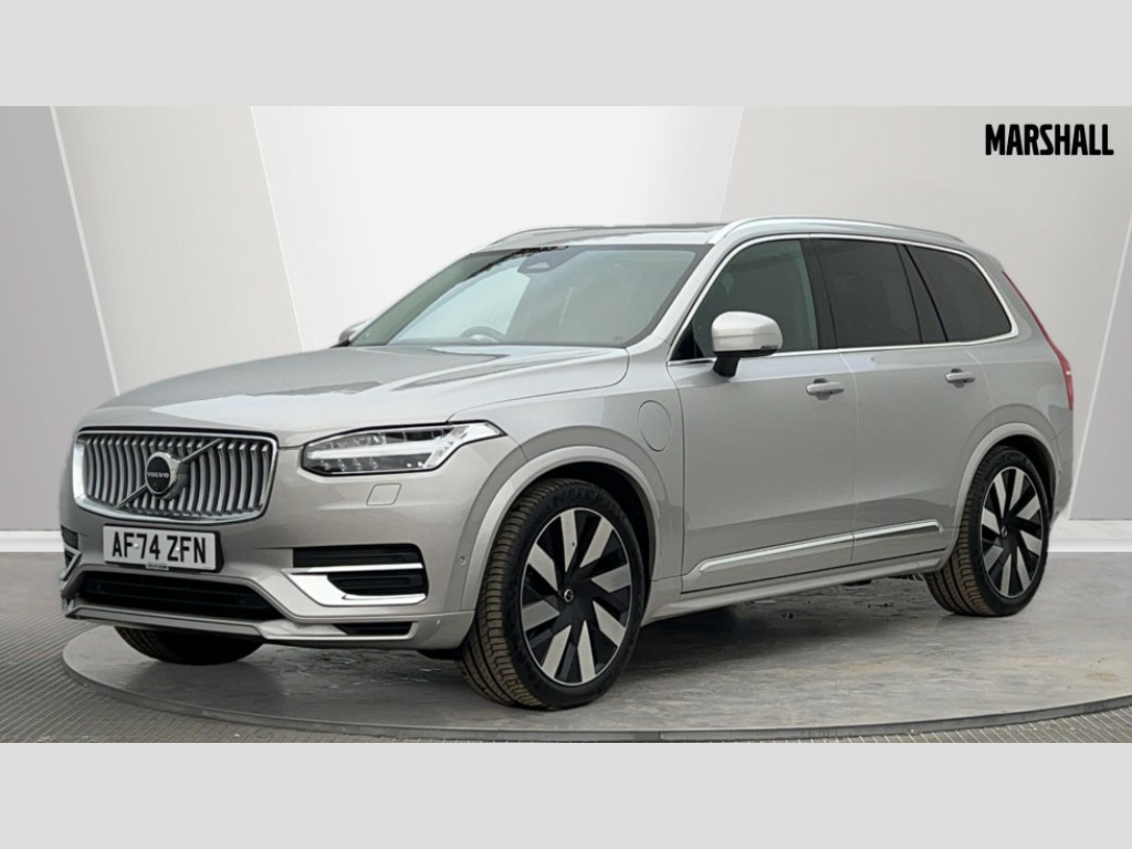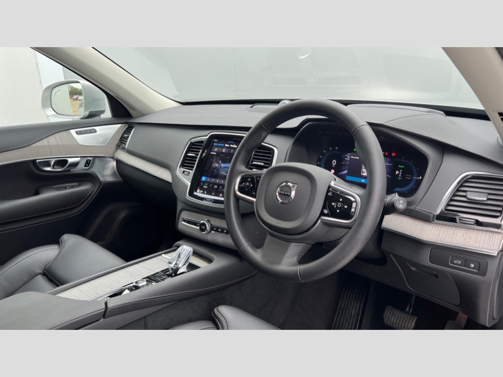 Volvo XC90 2.0 T8 PHEV Ultra Edition Dark 5dr AWD Geartronic 12.3" Progressive Driver Display, 360 degree surround view parking camera with side proximity sensors, 9" centre console portrait touch screen, Adjustable steering wheel force, Bluetooth hands free telephone connection, Drive mode settings, Driver alert control with lane keeping aid, Driver assistance (pilot assist and adaptive cruise control), Driver awareness - Blind spot information system with steer assist, cross traffic alert with autobrake and rear collision warning and mitigation, Emergency call service, Front and rear park assist, Google Automotive Services - Navigation with Voice recoginition and google assistant, Handsfree power tailgate opening and closing, Oncoming Lane Mitigation, Power operated tailgate, Service interval indicator, Speed limiter, Speed sensitive steering, Trip computer, Volvo on call, Wireless Mobile Phone Charger, 6m 3 phase 16amp Type 2 / mode 3 charge cable, 7m 10amp charge cable with 3 pin plug, 8 speed automatic transmission with start/stop + manual change functions, Active four C chassis - four corner adaptive dampers with electronic air suspension, Electric rear axle drive, Lithium-ion battery, On board charger - 6.4 kW 2 phase/3.7kW single phase, Recharging port located in nearside front wing, DAB Radio (Digital Audio Broadcasting), Low speed exterior sound speaker, Premium Sound by Bowers and Wilkins, dirac live, dolby pro logic II surround sound, 18 speakers/1400W output and fresh air subwoofer, Steering wheel remote infotainment controls, Active bending headlights with adaptive shadow technology, Adaptive brake lights with high level LED brake lights, Auto dimming interior + exterior mirrors, Auto folding and heated power door mirrors, Automatic headlight levelling system, Automatic LED Headlights + Active high beam incorporating daytime running lights, Body colour bumpers, Chrome front and rear bumper deco, Chrome lower side mouldings, Chrome window surround, Colour coordinated door mirrors, Dark tinted windows - rear side windows and rear screen, Front and rear power windows, Headlight cleaning system, Home safe and approach lighting, Integrated roof rails in silver, Matt silver front grille with chrome detailing, Power glass tilt and slide panoramic sunroof with sun curtain, Puddle lights, Rain sensor with automatic windscreen wiper activation, Rear side wing doors, Rear wash/wipe with intermittent wipe setting, Roof antenna, Roof spoiler, Visible VIN plate, 12V socket front tunnel console, rear passenger compartment and cargo area, 2 seat bench in 3rd row, 2nd Row centre armrest with and cupholders, 3 seat bench in 2nd row, 4 zone electronic climate control with Clean zone air quality system + pollen filter, A-pillar parking ticket holder, Advanced interior air cleaner PM2.5, Air conditioning for 3rd row of seats, Ambient door and instrument panel lighting, B Pillar ventilation, Bright metal luggage threshold, Centre console cupholders and storage, Floor mats, Front and rear door pocket and front cupholder illumination, Front and rear reading lights, Theatre lighting and centre armrest storage illumination, Front footwell and side step illumination, Front headrests, Front seat cushion extensions, Heated front seats, Heated rear seats, Heated steering wheel, Height/reach adjustable steering column, Illuminated front and rear tread plates, Illuminated luggage compartment, Illuminated tailgate, Illuminated vanity mirrors + ticket holder, Illumination lockable glovebox compartment, Integrated sun curtains in rear doors, Isofix outer rear child seat preparation in 2nd row, Load protection net, Luggage compartment divider with grocery bag holder, Outboard armrest with cupholder and storage for third row passengers, Power driver seat with multi directional lumbar support and memory for seat and exterior mirrors, Power folding 2nd row headrests, Power passenger seat with multi directional lumbar support and memory, Rear footwell and side step illumination, Rear headrests, Semi automatic load cover, Single front passenger seat, Underfloor luggage compartment storage, 7 three point seatbelts, City safety with steering support includes pedestrian, cyclist and large animal detection and front collision warning with full auto brake, Drivers knee airbag, Dual stage driver/passenger airbags, First aid kit, Front seats SIPS airbags, Hill descent control - off drive mode, Hill start assist, IC (Inflatable Curtains) - Full Length, Passenger airbag cut-off switch, Power child locks on rear doors, Power parking brake with auto hold function, Road sign information display, Run off Road Mitigation, Run off Road Protection, Seatbelt reminder and pretensioners for all seats, SIPS (Side Impact Protection System), Slippery road and hazard light alert, Stability and Traction Control with Spin control, Engine Drag Control and Corner Traction Control, Tyre pressure monitoring system, Vehicle deceleration control with Anti-lock Brake System, Electronic Brake Distribution and Emergency Brake Assist, Warning triangle, WHIPS whiplash protection system - front, Anti-theft alarm including immobiliser/volume sensor + level sensor, Care key with user defined top speed, Key integrated remote control central locking + fuel flap with deadlocking system and auto open/close power windows, Keyless drive includes keyless entry and keyless start, Locking wheel nuts, Private locking for glovebox and tailgate, Tailored Instrument Panel and Door Tops with Contrast Stitching, Tyre sealant kit and compressor
