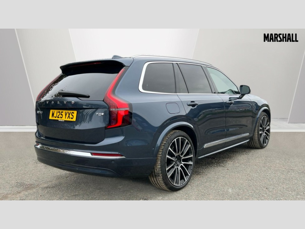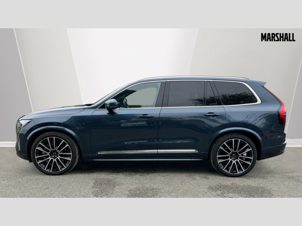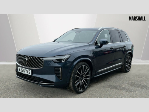 Volvo XC90 2.0 T8 PHEV Ultra Dark 5dr AWD Geartronic 11.2" centre console touch screen, 12.3" Progressive Driver Display, 360 degree surround view parking camera with side proximity sensors, Adjustable steering wheel force, Apple carplay (wired), Bluetooth handsfree system, Drive mode settings, Driver alert control with lane keeping aid, Driver assistance (pilot assist and adaptive cruise control), Driver awareness - Blind spot information system with steer assist, cross traffic alert with autobrake and rear collision warning and mitigation, Emergency call service, Front and rear park assist, Google Automotive Services - Navigation with Voice recoginition and google assistant, Handsfree power tailgate opening and closing, Intelligent speed assistance, Oncoming Lane Mitigation, PAS, Power operated tailgate, Service interval indicator, Speed sensitive steering, Trip computer, Volvo on call, Wireless/Inductive Mobile Phone Charging, 6m 3 phase 16amp Type 2 / mode 3 charge cable, 8 speed automatic transmission with start/stop + manual change functions, Active four C chassis - four corner adaptive dampers with electronic air suspension, Electric rear axle drive, Lithium-ion battery, On board charger - 6.4 kW 2 phase/3.7kW single phase, Recharging port located in nearside front wing, DAB Radio (Digital Audio Broadcasting), Low speed exterior sound speaker, Premium Sound by Bowers and Wilkins, dirac live, dolby pro logic II surround sound, 18 speakers/1400W output and fresh air subwoofer, Steering wheel remote infotainment controls, Adaptive brake lights with high level LED brake lights, Auto dimming interior + exterior mirrors, Auto folding and heated power door mirrors, Automatic headlight levelling system, Automatic matrix LED headlights with Adaptive shadow technology and Active high beam, incorporating Day running lights, Body colour bumpers, Dark tinted windows - rear side windows and rear screen, Front and rear power windows, Headlight cleaning system, High gloss black door mirrors and window surround, High gloss black front and rear bumper deco, High gloss black front grille and deco, Home safe and approach lighting, Integrated roof rails in high gloss black, Laminated side and rear windows, Power glass tilt and slide panoramic sunroof with sun curtain, Puddle lights, Rain sensor with automatic windscreen wiper activation, Rear side wing doors, Rear wash/wipe with intermittent wipe setting, Roof antenna, Roof spoiler, Visible VIN plate, 12V socket in luggage compartment, 2nd Row centre armrest with and cupholders, 3 Spoke tailored sport steering wheel with chrome trim, 4 zone electronic climate control with Clean zone air quality system + pollen filter, A-pillar parking ticket holder, Air conditioning for 3rd row of seats, Air purifier PM2.5, Ambient door and instrument panel lighting, B Pillar ventilation, Bright metal luggage scuff plate, Centre console cupholders and storage, Floor mats, Front and rear courtesy lights, Front and rear door pocket illumination, Front footwell and side step illumination, Front headrests, Front reading lights, Front seat cushion extensions, Front tunnel storage illumination, Glovebox compartment light, Heated front seats, Heated rear seats, Heated steering wheel, Height/reach adjustable steering column, Illuminated front and rear aluminium tread plates, Illuminated luggage compartment, Illuminated tailgate, Illuminated vanity mirrors + ticket holder, Inner door release handle illumination, Integrated sun curtains in rear doors, Isofix outer rear child seat preparation in 2nd row, Load cover, Load protection net, Lockable glovebox compartment, Luggage compartment divider with grocery bag holder, Outboard armrest with cupholder and storage for third row passengers, Power driver seat with multi directional lumbar support and memory for seat and exterior mirrors, Power folding 2nd row headrests, Power passenger seat with multi directional lumbar support and memory, Rear footwell and side step illumination, Rear headrests, Rear reading lights, Second row integrated child seat for centre seat, Single front passenger seat, Three 2nd row individual folding passenger seats with fore/aft adjustment, Two 3rd row individual folding passenger seats, Underfloor luggage compartment storage, 7 three point seatbelts, City safety with steering support includes pedestrian, cyclist detection, front collision warning with full auto brake and rear auto brake, Driver and passenger airbags, Drivers knee airbag, First aid kit, Front seats SIPS airbags, Hill descent control - off drive mode, Hill start assist, IC (Inflatable Curtains) - Full Length, Passenger airbag cut-off switch, Power child locks on rear doors, Power parking brake with auto hold function, Road sign information display, Run off Road Protection, Seatbelt reminder and pretensioners for all seats, SIPS (Side Impact Protection System), Slippery road and hazard light alert, Stability and Traction Control with Spin control, Engine Drag Control and Corner Traction Control, Tyre pressure monitoring system, Vehicle deceleration control with Anti-lock Brake System, Electronic Brake Distribution and Emergency Brake Assist, Warning triangle, WHIPS whiplash protection system - front, 2x Key integrated remote control central locking + deadlocking system and auto open/close windows, Anti-theft alarm including immobiliser/volume sensor + level sensor, Keyless drive includes keyless entry and keyless start, Locking wheel nuts, Tailored instrument panel and door tops, Tyre sealant kit and compressor