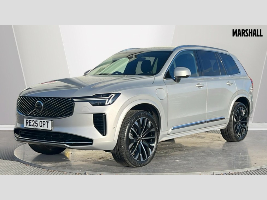 Volvo XC90 2.0 T8 PHEV Ultra Dark 5dr AWD Geartronic 12.3" Progressive Driver Display, 360 degree surround view parking camera with side proximity sensors, 9" centre console portrait touch screen, Adjustable steering wheel force, Bluetooth hands free telephone connection, Drive mode settings, Driver alert control with lane keeping aid, Driver assistance (pilot assist and adaptive cruise control), Driver awareness - Blind spot information system with steer assist, cross traffic alert with autobrake and rear collision warning and mitigation, Emergency call service, Front and rear park assist, Google Automotive Services - Navigation with Voice recoginition and google assistant, Handsfree power tailgate opening and closing, Oncoming Lane Mitigation, Power operated tailgate, Service interval indicator, Speed limiter, Speed sensitive steering, Trip computer, Volvo on call, Wireless Mobile Phone Charger, 6m 3 phase 16amp Type 2 / mode 3 charge cable, 7m 10amp charge cable with 3 pin plug, 8 speed automatic transmission with start/stop + manual change functions, Active four C chassis - four corner adaptive dampers with electronic air suspension, Electric rear axle drive, Lithium-ion battery, On board charger - 6.4 kW 2 phase/3.7kW single phase, Recharging port located in nearside front wing, DAB Radio (Digital Audio Broadcasting), Low speed exterior sound speaker, Premium Sound by Bowers and Wilkins, dirac live, dolby pro logic II surround sound, 18 speakers/1400W output and fresh air subwoofer, Steering wheel remote infotainment controls, Active bending headlights with adaptive shadow technology, Adaptive brake lights with high level LED brake lights, Auto dimming interior + exterior mirrors, Auto folding and heated power door mirrors, Automatic headlight levelling system, Automatic LED Headlights + Active high beam incorporating daytime running lights, Body colour bumpers, Dark tinted windows - rear side windows and rear screen, Front and rear power windows, Headlight cleaning system, High gloss black door mirrors and window surround, High gloss black front and rear bumper deco, High gloss black mesh front grille with surround, Home safe and approach lighting, Integrated roof rails in high gloss black, Power glass tilt and slide panoramic sunroof with sun curtain, Puddle lights, Rain sensor with automatic windscreen wiper activation, Rear side wing doors, Rear wash/wipe with intermittent wipe setting, Roof antenna, Roof spoiler, Visible VIN plate, 12V socket front tunnel console, rear passenger compartment and cargo area, 2 seat bench in 3rd row, 2nd Row centre armrest with and cupholders, 3 seat bench in 2nd row, 4 zone electronic climate control with Clean zone air quality system + pollen filter, A-pillar parking ticket holder, Advanced interior air cleaner PM2.5, Air conditioning for 3rd row of seats, Ambient door and instrument panel lighting, B Pillar ventilation, Bright metal luggage threshold, Centre console cupholders and storage, Floor mats, Front and rear door pocket and front cupholder illumination, Front and rear reading lights, Theatre lighting and centre armrest storage illumination, Front footwell and side step illumination, Front headrests, Front seat cushion extensions, Heated front seats, Heated rear seats, Heated steering wheel, Height/reach adjustable steering column, Illuminated front and rear tread plates, Illuminated luggage compartment, Illuminated tailgate, Illuminated vanity mirrors + ticket holder, Illumination lockable glovebox compartment, Integrated sun curtains in rear doors, Isofix outer rear child seat preparation in 2nd row, Load protection net, Luggage compartment divider with grocery bag holder, Outboard armrest with cupholder and storage for third row passengers, Power driver seat with multi directional lumbar support and memory for seat and exterior mirrors, Power folding 2nd row headrests, Power passenger seat with multi directional lumbar support and memory, Rear footwell and side step illumination, Rear headrests, Semi automatic load cover, Single front passenger seat, Underfloor luggage compartment storage, 7 three point seatbelts, City safety with steering support includes pedestrian, cyclist and large animal detection and front collision warning with full auto brake, Drivers knee airbag, Dual stage driver/passenger airbags, First aid kit, Front seats SIPS airbags, Hill descent control - off drive mode, Hill start assist, IC (Inflatable Curtains) - Full Length, Passenger airbag cut-off switch, Power child locks on rear doors, Power parking brake with auto hold function, Road sign information display, Run off Road Mitigation, Run off Road Protection, Seatbelt reminder and pretensioners for all seats, SIPS (Side Impact Protection System), Slippery road and hazard light alert, Stability and Traction Control with Spin control, Engine Drag Control and Corner Traction Control, Tyre pressure monitoring system, Vehicle deceleration control with Anti-lock Brake System, Electronic Brake Distribution and Emergency Brake Assist, Warning triangle, WHIPS whiplash protection system - front, Anti-theft alarm including immobiliser/volume sensor + level sensor, Care key with user defined top speed, Key integrated remote control central locking + fuel flap with deadlocking system and auto open/close power windows, Keyless drive includes keyless entry and keyless start, Locking wheel nuts, Private locking for glovebox and tailgate, Tailored Instrument Panel and Door Tops with Contrast Stitching, Tyre sealant kit and compressor