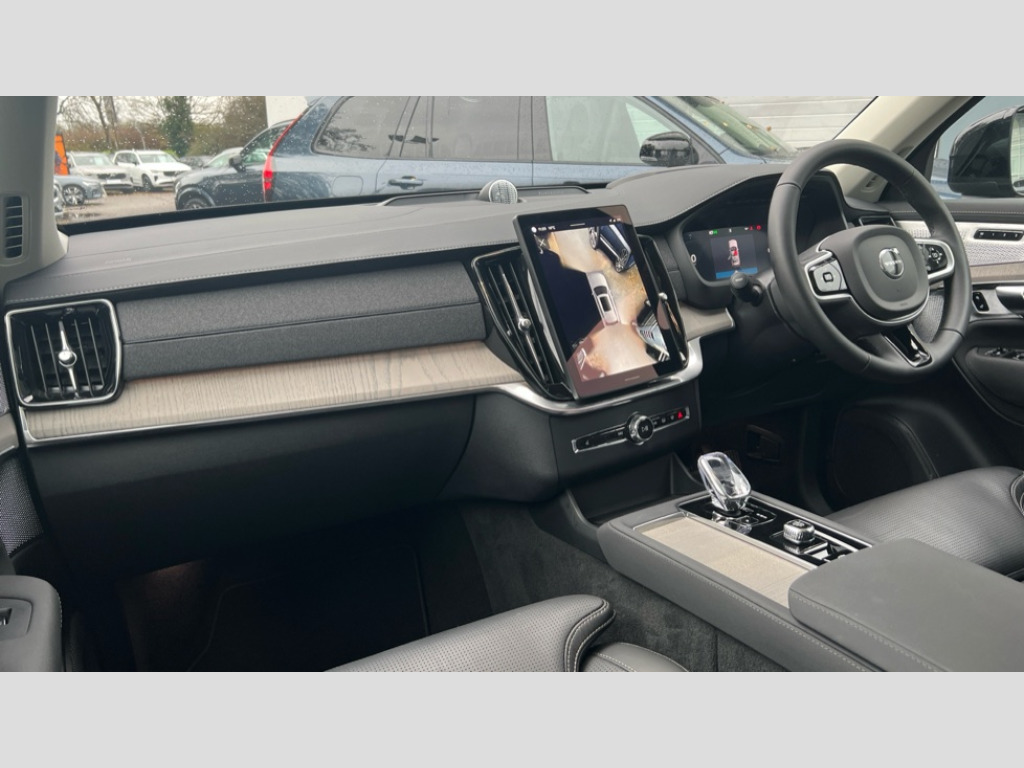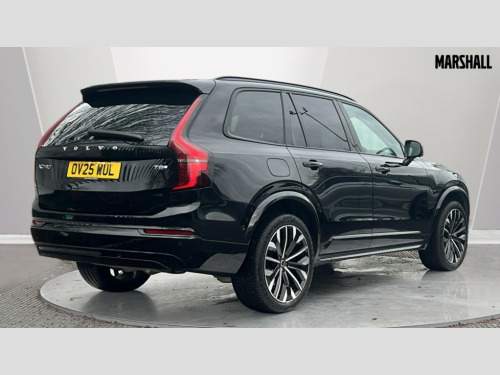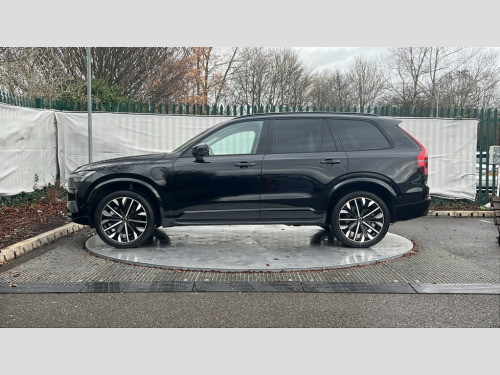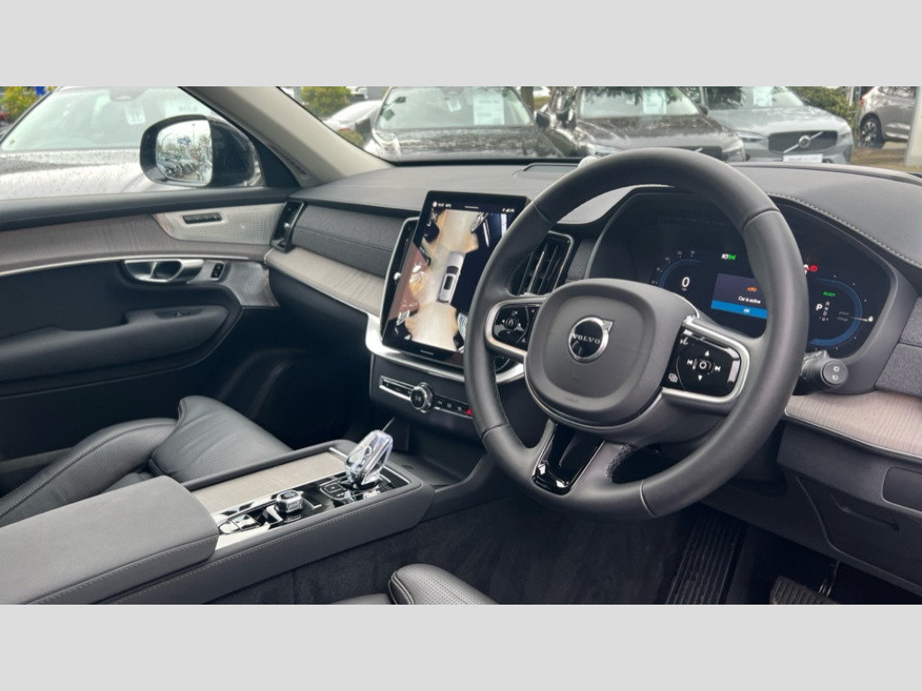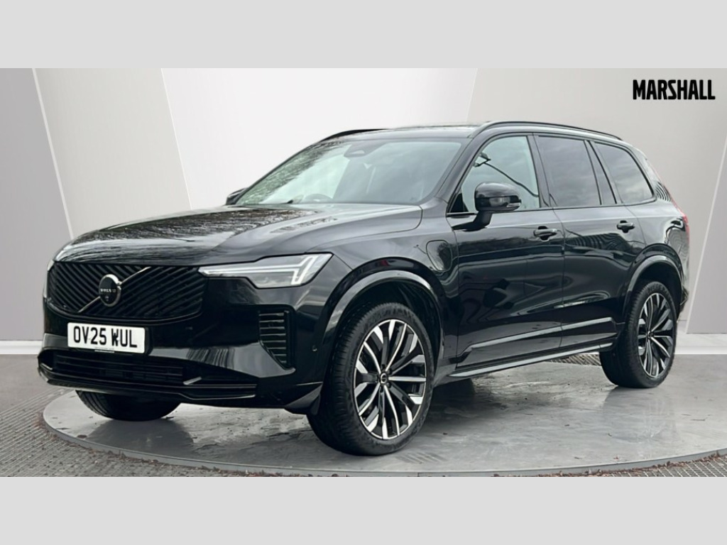 Volvo XC90 2.0 T8 PHEV Ultra Dark 5dr AWD Geartronic 11.2" centre console touch screen, 12.3" Progressive Driver Display, 360 degree surround view parking camera with side proximity sensors, Adjustable steering wheel force, Apple carplay (wired), Bluetooth handsfree system, Drive mode settings, Driver alert control with lane keeping aid, Driver assistance (pilot assist and adaptive cruise control), Driver awareness - Blind spot information system with steer assist, cross traffic alert with autobrake and rear collision warning and mitigation, Emergency call service, Front and rear park assist, Google Automotive Services - Navigation with Voice recoginition and google assistant, Handsfree power tailgate opening and closing, Intelligent speed assistance, Oncoming Lane Mitigation, PAS, Power operated tailgate, Service interval indicator, Speed sensitive steering, Trip computer, Volvo on call, Wireless/Inductive Mobile Phone Charging, 6m 3 phase 16amp Type 2 / mode 3 charge cable, 8 speed automatic transmission with start/stop + manual change functions, Active four C chassis - four corner adaptive dampers with electronic air suspension, Electric rear axle drive, Lithium-ion battery, On board charger - 6.4 kW 2 phase/3.7kW single phase, Recharging port located in nearside front wing, DAB Radio (Digital Audio Broadcasting), Low speed exterior sound speaker, Premium Sound by Bowers and Wilkins, dirac live, dolby pro logic II surround sound, 18 speakers/1400W output and fresh air subwoofer, Steering wheel remote infotainment controls, Adaptive brake lights with high level LED brake lights, Auto dimming interior + exterior mirrors, Auto folding and heated power door mirrors, Automatic headlight levelling system, Automatic matrix LED headlights with Adaptive shadow technology and Active high beam, incorporating Day running lights, Body colour bumpers, Dark tinted windows - rear side windows and rear screen, Front and rear power windows, Headlight cleaning system, High gloss black door mirrors and window surround, High gloss black front and rear bumper deco, High gloss black front grille and deco, Home safe and approach lighting, Integrated roof rails in high gloss black, Laminated side and rear windows, Power glass tilt and slide panoramic sunroof with sun curtain, Puddle lights, Rain sensor with automatic windscreen wiper activation, Rear side wing doors, Rear wash/wipe with intermittent wipe setting, Roof antenna, Roof spoiler, Visible VIN plate, 12V socket in luggage compartment, 2nd Row centre armrest with and cupholders, 3 Spoke tailored sport steering wheel with chrome trim, 4 zone electronic climate control with Clean zone air quality system + pollen filter, A-pillar parking ticket holder, Air conditioning for 3rd row of seats, Air purifier PM2.5, Ambient door and instrument panel lighting, B Pillar ventilation, Bright metal luggage scuff plate, Centre console cupholders and storage, Floor mats, Front and rear courtesy lights, Front and rear door pocket illumination, Front footwell and side step illumination, Front headrests, Front reading lights, Front seat cushion extensions, Front tunnel storage illumination, Glovebox compartment light, Heated front seats, Heated rear seats, Heated steering wheel, Height/reach adjustable steering column, Illuminated front and rear aluminium tread plates, Illuminated luggage compartment, Illuminated tailgate, Illuminated vanity mirrors + ticket holder, Inner door release handle illumination, Integrated sun curtains in rear doors, Isofix outer rear child seat preparation in 2nd row, Load cover, Load protection net, Lockable glovebox compartment, Luggage compartment divider with grocery bag holder, Outboard armrest with cupholder and storage for third row passengers, Power driver seat with multi directional lumbar support and memory for seat and exterior mirrors, Power folding 2nd row headrests, Power passenger seat with multi directional lumbar support and memory, Rear footwell and side step illumination, Rear headrests, Rear reading lights, Second row integrated child seat for centre seat, Single front passenger seat, Three 2nd row individual folding passenger seats with fore/aft adjustment, Two 3rd row individual folding passenger seats, Underfloor luggage compartment storage, 7 three point seatbelts, City safety with steering support includes pedestrian, cyclist detection, front collision warning with full auto brake and rear auto brake, Driver and passenger airbags, Drivers knee airbag, First aid kit, Front seats SIPS airbags, Hill descent control - off drive mode, Hill start assist, IC (Inflatable Curtains) - Full Length, Passenger airbag cut-off switch, Power child locks on rear doors, Power parking brake with auto hold function, Road sign information display, Run off Road Protection, Seatbelt reminder and pretensioners for all seats, SIPS (Side Impact Protection System), Slippery road and hazard light alert, Stability and Traction Control with Spin control, Engine Drag Control and Corner Traction Control, Tyre pressure monitoring system, Vehicle deceleration control with Anti-lock Brake System, Electronic Brake Distribution and Emergency Brake Assist, Warning triangle, WHIPS whiplash protection system - front, 2x Key integrated remote control central locking + deadlocking system and auto open/close windows, Anti-theft alarm including immobiliser/volume sensor + level sensor, Keyless drive includes keyless entry and keyless start, Locking wheel nuts, Tailored instrument panel and door tops, Tyre sealant kit and compressor