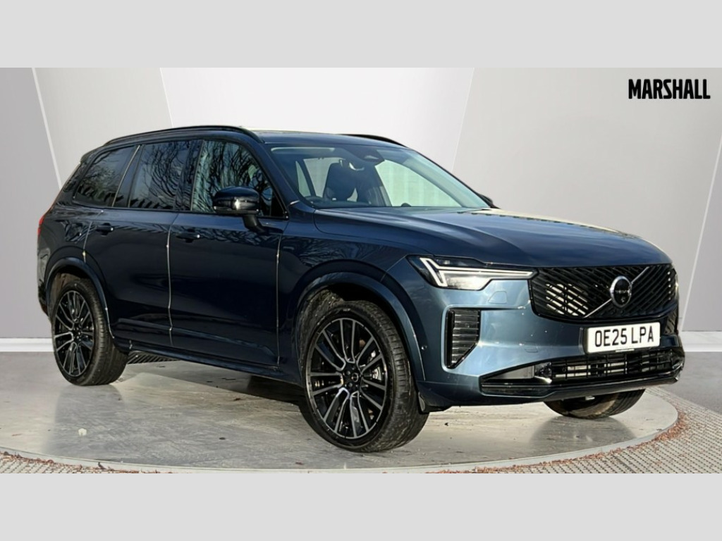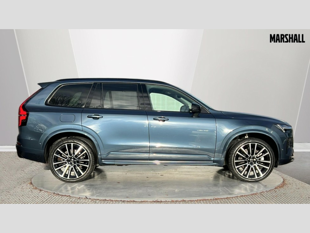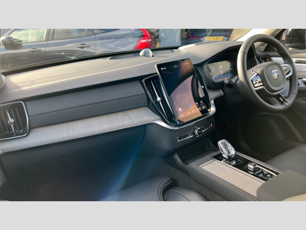 Volvo XC90 2.0 T8 PHEV Ultra Dark 5dr AWD Geartronic 11.2" centre console touch screen, 12.3" Progressive Driver Display, 360 degree surround view parking camera with side proximity sensors, Adjustable steering wheel force, Apple carplay (wired), Bluetooth handsfree system, Drive mode settings, Driver alert control with lane keeping aid, Driver assistance (pilot assist and adaptive cruise control), Driver awareness - Blind spot information system with steer assist, cross traffic alert with autobrake and rear collision warning and mitigation, Emergency call service, Front and rear park assist, Google Automotive Services - Navigation with Voice recoginition and google assistant, Handsfree power tailgate opening and closing, Intelligent speed assistance, Oncoming Lane Mitigation, PAS, Power operated tailgate, Service interval indicator, Speed sensitive steering, Trip computer, Volvo on call, Wireless/Inductive Mobile Phone Charging, 6m 3 phase 16amp Type 2 / mode 3 charge cable, 8 speed automatic transmission with start/stop + manual change functions, Active four C chassis - four corner adaptive dampers with electronic air suspension, Electric rear axle drive, Lithium-ion battery, On board charger - 6.4 kW 2 phase/3.7kW single phase, Recharging port located in nearside front wing, DAB Radio (Digital Audio Broadcasting), Low speed exterior sound speaker, Premium Sound by Bowers and Wilkins, dirac live, dolby pro logic II surround sound, 18 speakers/1400W output and fresh air subwoofer, Steering wheel remote infotainment controls, Adaptive brake lights with high level LED brake lights, Auto dimming interior + exterior mirrors, Auto folding and heated power door mirrors, Automatic headlight levelling system, Automatic matrix LED headlights with Adaptive shadow technology and Active high beam, incorporating Day running lights, Body colour bumpers, Dark tinted windows - rear side windows and rear screen, Front and rear power windows, Headlight cleaning system, High gloss black door mirrors and window surround, High gloss black front and rear bumper deco, High gloss black front grille and deco, Home safe and approach lighting, Integrated roof rails in high gloss black, Laminated side and rear windows, Power glass tilt and slide panoramic sunroof with sun curtain, Puddle lights, Rain sensor with automatic windscreen wiper activation, Rear side wing doors, Rear wash/wipe with intermittent wipe setting, Roof antenna, Roof spoiler, Visible VIN plate, 12V socket in luggage compartment, 2nd Row centre armrest with and cupholders, 3 Spoke tailored sport steering wheel with chrome trim, 4 zone electronic climate control with Clean zone air quality system + pollen filter, A-pillar parking ticket holder, Air conditioning for 3rd row of seats, Air purifier PM2.5, Ambient door and instrument panel lighting, B Pillar ventilation, Bright metal luggage scuff plate, Centre console cupholders and storage, Floor mats, Front and rear courtesy lights, Front and rear door pocket illumination, Front footwell and side step illumination, Front headrests, Front reading lights, Front seat cushion extensions, Front tunnel storage illumination, Glovebox compartment light, Heated front seats, Heated rear seats, Heated steering wheel, Height/reach adjustable steering column, Illuminated front and rear aluminium tread plates, Illuminated luggage compartment, Illuminated tailgate, Illuminated vanity mirrors + ticket holder, Inner door release handle illumination, Integrated sun curtains in rear doors, Isofix outer rear child seat preparation in 2nd row, Load cover, Load protection net, Lockable glovebox compartment, Luggage compartment divider with grocery bag holder, Outboard armrest with cupholder and storage for third row passengers, Power driver seat with multi directional lumbar support and memory for seat and exterior mirrors, Power folding 2nd row headrests, Power passenger seat with multi directional lumbar support and memory, Rear footwell and side step illumination, Rear headrests, Rear reading lights, Second row integrated child seat for centre seat, Single front passenger seat, Three 2nd row individual folding passenger seats with fore/aft adjustment, Two 3rd row individual folding passenger seats, Underfloor luggage compartment storage, 7 three point seatbelts, City safety with steering support includes pedestrian, cyclist detection, front collision warning with full auto brake and rear auto brake, Driver and passenger airbags, Drivers knee airbag, First aid kit, Front seats SIPS airbags, Hill descent control - off drive mode, Hill start assist, IC (Inflatable Curtains) - Full Length, Passenger airbag cut-off switch, Power child locks on rear doors, Power parking brake with auto hold function, Road sign information display, Run off Road Protection, Seatbelt reminder and pretensioners for all seats, SIPS (Side Impact Protection System), Slippery road and hazard light alert, Stability and Traction Control with Spin control, Engine Drag Control and Corner Traction Control, Tyre pressure monitoring system, Vehicle deceleration control with Anti-lock Brake System, Electronic Brake Distribution and Emergency Brake Assist, Warning triangle, WHIPS whiplash protection system - front, 2x Key integrated remote control central locking + deadlocking system and auto open/close windows, Anti-theft alarm including immobiliser/volume sensor + level sensor, Keyless drive includes keyless entry and keyless start, Locking wheel nuts, Tailored instrument panel and door tops, Tyre sealant kit and compressor