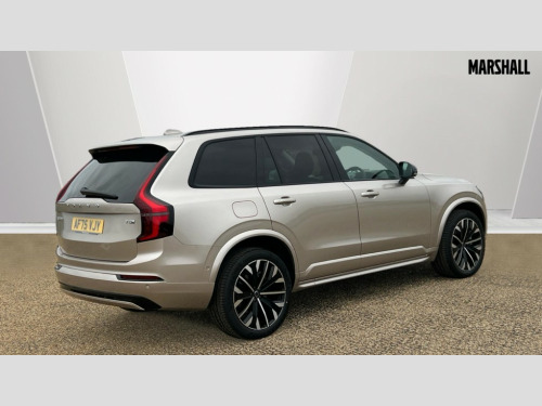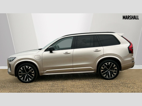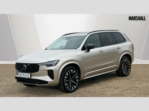 Volvo XC90 2.0 T8 PHEV Ultra Dark 5dr AWD Geartronic 12.3" Progressive Driver Display, 360 degree surround view parking camera with side proximity sensors, 9" centre console portrait touch screen, Adjustable steering wheel force, Bluetooth hands free telephone connection, Drive mode settings, Driver alert control with lane keeping aid, Driver assistance (pilot assist and adaptive cruise control), Driver awareness - Blind spot information system with steer assist, cross traffic alert with autobrake and rear collision warning and mitigation, Emergency call service, Front and rear park assist, Google Automotive Services - Navigation with Voice recoginition and google assistant, Handsfree power tailgate opening and closing, Oncoming Lane Mitigation, Power operated tailgate, Service interval indicator, Speed limiter, Speed sensitive steering, Trip computer, Volvo on call, Wireless Mobile Phone Charger, 6m 3 phase 16amp Type 2 / mode 3 charge cable, 7m 10amp charge cable with 3 pin plug, 8 speed automatic transmission with start/stop + manual change functions, Active four C chassis - four corner adaptive dampers with electronic air suspension, Electric rear axle drive, Lithium-ion battery, On board charger - 6.4 kW 2 phase/3.7kW single phase, Recharging port located in nearside front wing, DAB Radio (Digital Audio Broadcasting), Low speed exterior sound speaker, Premium Sound by Bowers and Wilkins, dirac live, dolby pro logic II surround sound, 18 speakers/1400W output and fresh air subwoofer, Steering wheel remote infotainment controls, Active bending headlights with adaptive shadow technology, Adaptive brake lights with high level LED brake lights, Auto dimming interior + exterior mirrors, Auto folding and heated power door mirrors, Automatic headlight levelling system, Automatic LED Headlights + Active high beam incorporating daytime running lights, Body colour bumpers, Dark tinted windows - rear side windows and rear screen, Front and rear power windows, Headlight cleaning system, High gloss black door mirrors and window surround, High gloss black front and rear bumper deco, High gloss black mesh front grille with surround, Home safe and approach lighting, Integrated roof rails in high gloss black, Power glass tilt and slide panoramic sunroof with sun curtain, Puddle lights, Rain sensor with automatic windscreen wiper activation, Rear side wing doors, Rear wash/wipe with intermittent wipe setting, Roof antenna, Roof spoiler, Visible VIN plate, 12V socket front tunnel console, rear passenger compartment and cargo area, 2 seat bench in 3rd row, 2nd Row centre armrest with and cupholders, 3 seat bench in 2nd row, 4 zone electronic climate control with Clean zone air quality system + pollen filter, A-pillar parking ticket holder, Advanced interior air cleaner PM2.5, Air conditioning for 3rd row of seats, Ambient door and instrument panel lighting, B Pillar ventilation, Bright metal luggage threshold, Centre console cupholders and storage, Floor mats, Front and rear door pocket and front cupholder illumination, Front and rear reading lights, Theatre lighting and centre armrest storage illumination, Front footwell and side step illumination, Front headrests, Front seat cushion extensions, Heated front seats, Heated rear seats, Heated steering wheel, Height/reach adjustable steering column, Illuminated front and rear tread plates, Illuminated luggage compartment, Illuminated tailgate, Illuminated vanity mirrors + ticket holder, Illumination lockable glovebox compartment, Integrated sun curtains in rear doors, Isofix outer rear child seat preparation in 2nd row, Load protection net, Luggage compartment divider with grocery bag holder, Outboard armrest with cupholder and storage for third row passengers, Power driver seat with multi directional lumbar support and memory for seat and exterior mirrors, Power folding 2nd row headrests, Power passenger seat with multi directional lumbar support and memory, Rear footwell and side step illumination, Rear headrests, Semi automatic load cover, Single front passenger seat, Underfloor luggage compartment storage, 7 three point seatbelts, City safety with steering support includes pedestrian, cyclist and large animal detection and front collision warning with full auto brake, Drivers knee airbag, Dual stage driver/passenger airbags, First aid kit, Front seats SIPS airbags, Hill descent control - off drive mode, Hill start assist, IC (Inflatable Curtains) - Full Length, Passenger airbag cut-off switch, Power child locks on rear doors, Power parking brake with auto hold function, Road sign information display, Run off Road Mitigation, Run off Road Protection, Seatbelt reminder and pretensioners for all seats, SIPS (Side Impact Protection System), Slippery road and hazard light alert, Stability and Traction Control with Spin control, Engine Drag Control and Corner Traction Control, Tyre pressure monitoring system, Vehicle deceleration control with Anti-lock Brake System, Electronic Brake Distribution and Emergency Brake Assist, Warning triangle, WHIPS whiplash protection system - front, Anti-theft alarm including immobiliser/volume sensor + level sensor, Care key with user defined top speed, Key integrated remote control central locking + fuel flap with deadlocking system and auto open/close power windows, Keyless drive includes keyless entry and keyless start, Locking wheel nuts, Private locking for glovebox and tailgate, Tailored Instrument Panel and Door Tops with Contrast Stitching, Tyre sealant kit and compressor