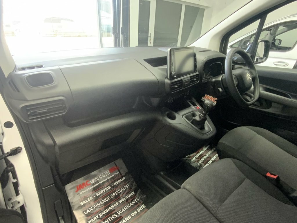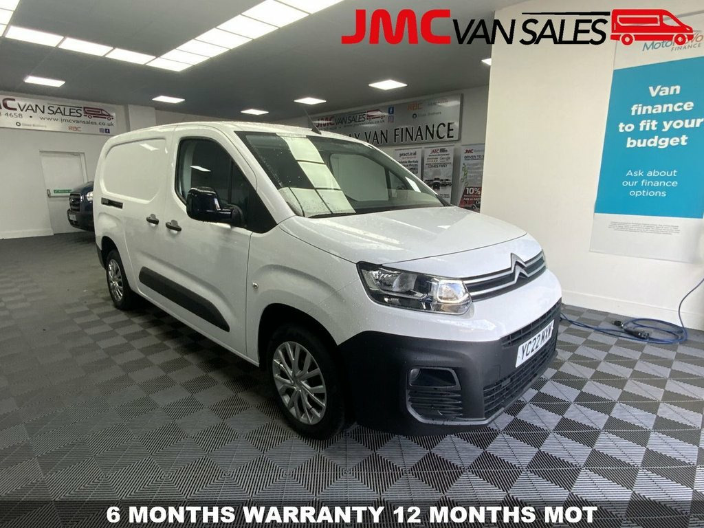 2022 22 reg CITROEN BERLINGO ENTERPRISE 1.6 LWB 63000 WARRANTED MILES,WITH FULL SERVICE HISTORY 6 MONTHS PLATINUM WARRANTY, 12 MONTHS MOT @ POINT OF SALE, AIR CONDITIONING, CRUISE CONTROL, REAR PARK SENSORS, ELECTRIC WINDOWS & MIRRORS, BLUETOOTH PHONE PREP, REMOTE CENTRAL LOCKING, APPLE CARPLAY, SIDE LOADING DOOR, CHOICE OF BERLINGO & PARTNERS 12V Socket in Dashboard, 8in Colour Touchscreen with Citroen Conn, Cruise Control with Programmable Speed L, Electric Power Assisted Steering with Re, Front Fog Lights, Height Adjustable Halogen Headlights, High Level Third Brake Light, Multi-Function On-Board Trip Computer, Pre-Conditioning for the Citroen Box wit, Rear Parking Sensors, Rev Counter with Maintenance and Gear Ef, Tyre Pressure Monitor, 16in Steel Wheel with Twirl Wheel Trim, Electric Windows - Front with One Touch , Electrically Folding - Adjustable Door M, Side Rubbing Strips, Spare Wheel - Full Size Steel, Two-Speed and Intermittent Front Wipers, Visible VIN at Base of Windscreen, 6 Floor-Mounted Load Securing Rings, 6 Way