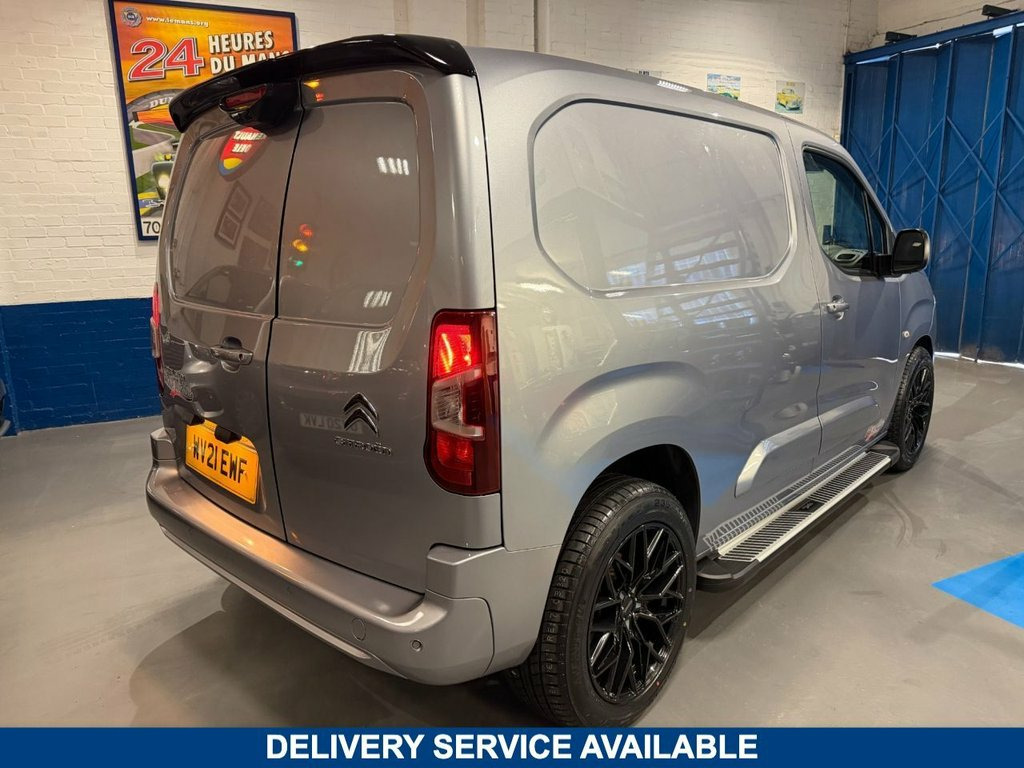 Welcome To Another Of Our PVSsportline Edition Berlingo ULEZ Compliant, Presented In cumulus grey, 1 Owner From New, Benefiting From The Balance Of Manufacturer Warranty, 2 Remote Keys, Features Include: Brand New 18" Alloy Wheel & Tyre Package (XL Rated For Commercial Use) Front Bumper Splitter, Side steps, Rear Spoiler, Reverse Camera + Passenger kerb camera, Satellite Navigation, Ply Lining, Cruise Control, Air Conditioning, Front/Rear Parking Sensors, DAB Radio, Apple/Android Car Play + Much More. Please Take A Look At Our Video Walk Around With Test Drive. Part Exchange Welcome We are delighted to be able to offer one of the most diverse and exciting ranges of premium used vehicles in the UK. With nationwide delivery and bespoke finance packages available, we are confident that we can help with all of your Vehicle Purchasing needs. For more information or to arrange your test drive. Be sure to book an appointment to avoid disappointment. *Click & Deliver, Home Delivery, We Provide A Painless Full Contactless Transaction Process Check Out Our Reviews* Fantastic Finance Options Available Why Not Upgrade!! Give Your Van An Individual Look! Check Out Conversion Site PVSsportline www.pvssportline.co.uk Full Dealer Facilities. We Prepare Our Vehicles To The Highest Standard Which Includes An 82 Point Inspection A Copy Of Which Is Provided, Also 6 Months Independently Underwritten Warranty. Buy With Confidence! We Are Happy To Provide A Phone Tour Of Any Ve 12V Socket in Dashboard, 16in Alloy Wheels - Starlit, 6 Floor-Mounted Load Securing Rings, 6 Way Adjustable Drivers Seat - includes, 8in Colour Touchscreen with Citroen Conn, Acoustic Laminated Windscreen with Sound, Air Conditioning, Airbags - Driver, Alarm - Parametric and Volumetric - That, Automatic Activation of Hazard Warning L, Automatic Electronic Parking Brake, Citroen Connect Box with Emergency and A, Comfort Drivers Seat, Cruise Control with Programmable Speed L, Cumulus Grey, Cup Holders for Driver and Passenger on , Dashboard Mounted Central Locking Push B, Door Opening Warning Light and Audible L, Electric Power Assisted Steering with Re, Electric Windows - Front with One Touch