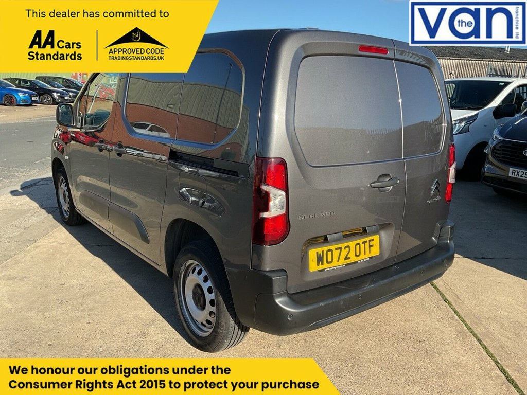 This 2023 Citroen Berlingo Enterprise Edition M SWB is presented with a clear vehicle history check, offering you peace of mind. Powered by a 1.5 litre Blue HDi diesel engine, this Euro 6 compliant model boasts impressive fuel economy, achieving up to 54 miles per gallon. The Enterprise Edition M trim level ensures a well equipped experience, featuring an 8in colour touchscreen with Citroen Connect DAB radio, Bluetooth handsfree, and a USB socket. You'll also benefit from air conditioning and Mirror Screen functionality, which includes Apple CarPlay and Android Auto for seamless smartphone integration. Height adjustable halogen headlights with automatic on functionality are also included. The low CO2 emissions of this Citroen Berlingo are a key highlight, indicating its efficiency and environmental consideration compared to similar vehicles. This, combined with its excellent fuel economy of 54 mpg, demonstrates a cost effective and responsible choice for your motoring needs. The practicalities of the Berlingo are further enhanced by its comfortable interior and user friendly technology, making it a well rounded option for a variety of uses. This popular van benefits from having full service history two keys and the following specification Electric Windows, Radio, Bluetooth and much more. The van will be Oil & filter serviced and health checked in our own workshops prior to collection and will also come with a minimum of 6 months MOT test. We also include a 3 m 12V Socket in Dashboard, 16in Steel Wheels with Black Centre Cap, 6 Floor-Mounted Load Securing Rings, 8in Colour Touchscreen with Citroen Conn, Air Conditioning, Airbags - Driver, Alarm - Parametric and Volumetric - That, Automatic Activation of Hazard Warning L, Citroen Connect Box with Emergency and A, Cruise Control with Programmable Speed L, Cup Holders for Driver and Passenger on , Dashboard Mounted Central Locking Push B, Door Opening Warning Light and Audible L, Driver and Passenger Seatbelt Unfastened, Drivers Seat - 4-Way Adjuctable with Adj, Electric Power Assisted Steering with Re, Electric Windows - Front with One Touch , Electrically Adjustable Door Mirrors wit, ESC with Hill S