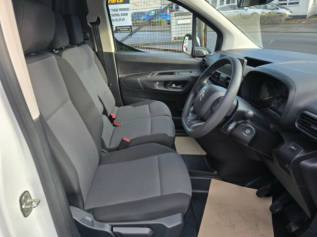 2019 (69) Citroen Berlingo 1000 M BlueHDi Worker EURO 6 Van. ULEZ and Clean air zones compliant. One owner from new with only 24000 miles. Finished in Polar white with contrasting cloth trim. Worker model, so excellent specification to include: Air con, 3 seat cab, adjustable grip control, load through bulkhead, DAB digital radio, Bluetooth, electric windows, electric mirrors , ply lined, side loading door, rear parking sensors, ABS 12V Socket in Dashboard, 16in Steel Wheels with Black Centre Cap, 6 Floor-Mounted Load Securing Rings, 6 Way Adjustable Drivers Seat - includes, Airbags - Driver, Automatic Activation of Hazard Warning L, Automatic Electronic Parking Brake, Citroen Connect Box with Emergency and A, Cup Holders for Driver and Passenger on , DAB Digital Radio with Bluetooth Handsfr, Dashboard Mounted Central Locking Push B, Door Opening Warning Light and Audible L, Electric Power Assisted Steering with Re, Electric Windows - Front with One Touch , Electrically Adjustable Door Mirrors, ESC with Hill Start Assist - ABS Braking, EXTENSO Modular Folding Passenger Bench , Front Fog Lights, Full Steel Bulkhead, Hard