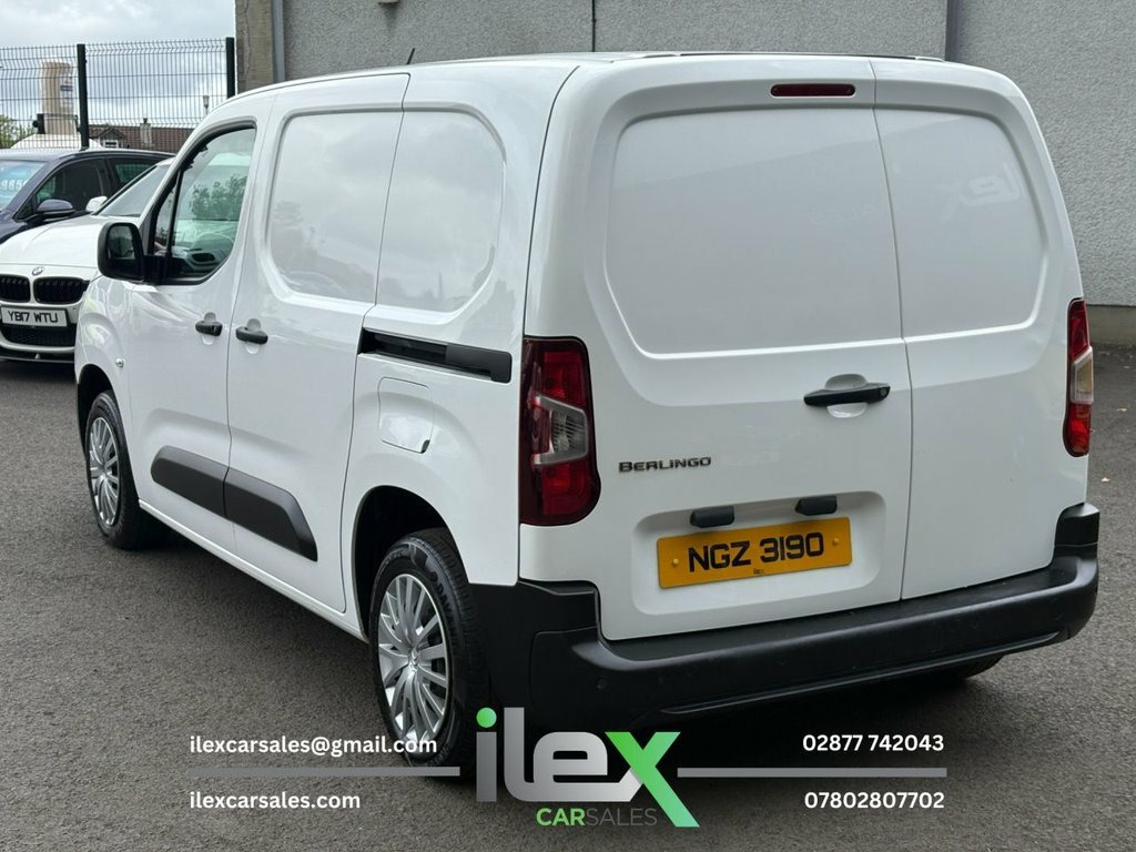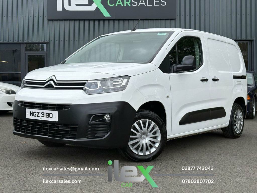 2019 Citroen Berlingo 1.6 BlueHDi 650 Enterprise – Smart, Clean, and Ready for Work This 2019 Citroen Berlingo Enterprise is a fantastic example of a modern, practical work van — with great spec, low running costs, and just 90k warranted miles. Perfect for small businesses, couriers, or tradesmen needing a reliable tool of the trade. 1.6 BlueHDi | 75BHP | Euro 6 90654 Miles | Manual | Full Service History NO VAT to Pay Cabin Features Include: – 8" Colour Touchscreen with DAB, Bluetooth, MirrorLink, Apple CarPlay & Android Auto – Air Conditioning & Cruise Control – EXTENSO 3-Seater Bench with Folding Table, Load-Through Hatch & Underseat Storage – Overhead Cabin Shelf & Multiple Storage Options – USB & AUX Connectivity Exterior & Utility Highlights: – Sliding Side Loading Door – 180° Opening Rear Doors – Steel Bulkhead – Rear Parking Sensors – Electrically Folding Mirrors with Temp Sensors – Full Plastic Floor Protection & 6 Load Rings Safety & Convenience: – Alarm with Tilt Sensor (Thatcham Cat 1) – ESC with Hill Start Assist – Auto Headlights & Cornering Fog Lights – Tyre Pressure Monitoring System – Remote Central Locking with Deadlocks Only £8,195 – NO VAT Viewing by Appointment Only 028 7774 2043 | 07802 807702 DM now to arrange a viewing or get full details 12V Socket in Dashboard, 15in Steel Wheels with Twin Wheel Cover, 6 Floor-Mounted Load Securing Rings, 6 Way Adjustable Drivers Seat - includes, 8in Colour Touchscreen with Citroen Conn, Air Conditioning, Airbags - Driver, Alarm - Parametric and Volumetric - That, Automatic Activation of Hazard Warning L, Automatic Electronic Parking Brake, Citroen Connect Box with Emergency and A, Cruise Control with Programmable Speed L, Cup Holders for Driver and Passenger on , Dashboard Mounted Central Locking Push B, Door Opening Warning Light and Audible L, Electric Power Assisted Steering with Re, Electric Windows - Front with One Touch , Electrically Folding - Adjustable Door M, ESC with Hill Start A