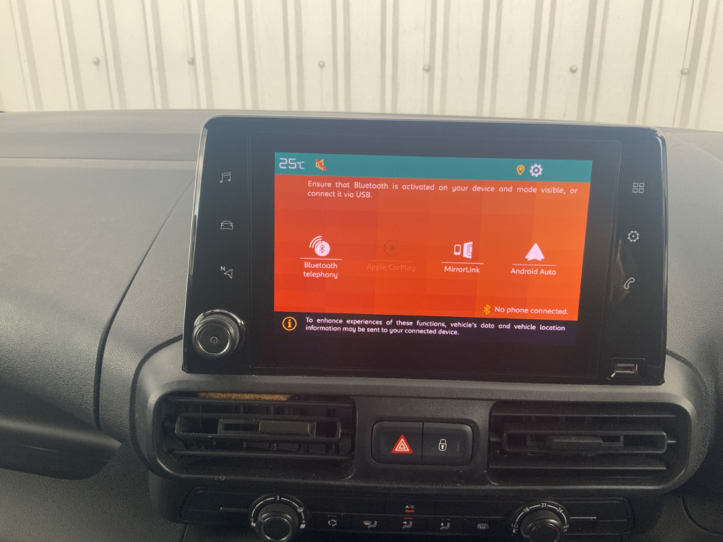 BERLINGO 650 ENTERPRISE 3 SEATER WITH LATEST 1.5 EURO 6 ULEZ/CAZ COMPLIANT ENGINE, REAR PARKING SENSORS, AIR CON, ELECTRIC MIRRORS WITH HEATING FUNCTION, ELECTRIC WINDOWS, CRUISE CONTROL, ANDROID AUTO/MIRROR LINK AND BLUETOOTH, DAB RADIO, AUTO LIGHTS, THROUGH HATCH BULKHEAD FOR LONGER ITEMS. 1 OWNER WITH FULL SERVICE HISTORY, 2 KEYS, FULL MOT AND WARRANTY AVAILABLE, PLY LINED FROM NEW WITH FACTORY BULKHEAD.