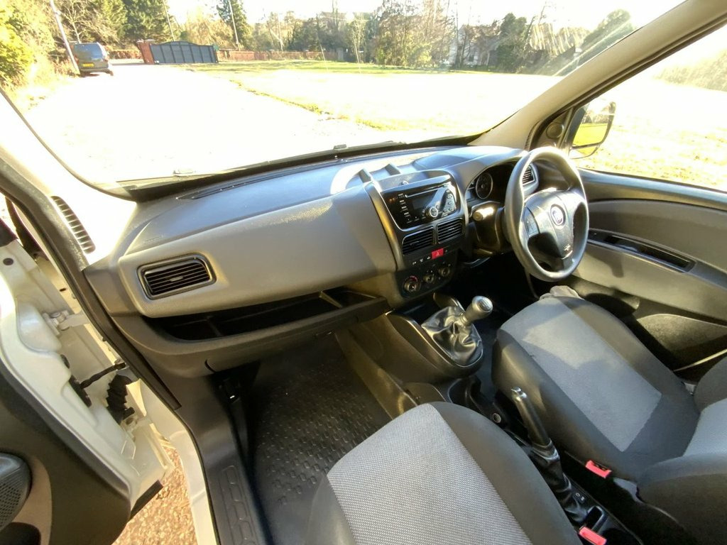 FIAT DOBLO CARGO MULTI-JET PANEL VAN LWB L2 MODEL,ELECTRIC WINDOWS,BLUETOOTH,STEREO,TWIN SIDE LOADING DOORS,FACTORY BULKLHEAD,PLYLINED,1 OWNER WITH FULL DEALER FACILITIES,PX CHANGE AND LOW RATE FINANCE AVAILABLE WITH NO DEPOSIT TO PAY,BEST PX CHANGE PRICES PAID WITH INSTANT DECISION,NATIONWIDE DELIVERY AVAILABLE,WE ALSO HAVE A VAN AND TRUCK HIRE DEPARTMENT PLEASE CALL WITH YOUR REQUIREMENTS TEL 01376 345888 12V Socket - Front, 16in Steel Wheels with Extra Green Tyres, 2nd Offside Sliding Side Door, ABS - Anti-Lock Braking System, Airbags - Driver, Bulkhead - Panelled, Ceiling Mounted Storage Shelf, Deadlocks, ECO Pack, ESC - Electronic Stability Control, Electric Front Windows, Exterior Temperature Sensor, Fix and Go Puncture Repair Kit, Full Width Wheel Trim Covers, Headlights - Adjustable, Height Adjustable Steering Wheel, High Performance Loudspeakers, Hill Holder, Larger Payload, Locking Fuel Cap, Low-Rolling Resistance Tyres, Manually Adjustable Door Mirrors, Nearside Sliding Side Door, Partial Cellophane Wrap, Passenger Seat Undertray, Power Steering, Radio - CD Player Basic, Remote Contr