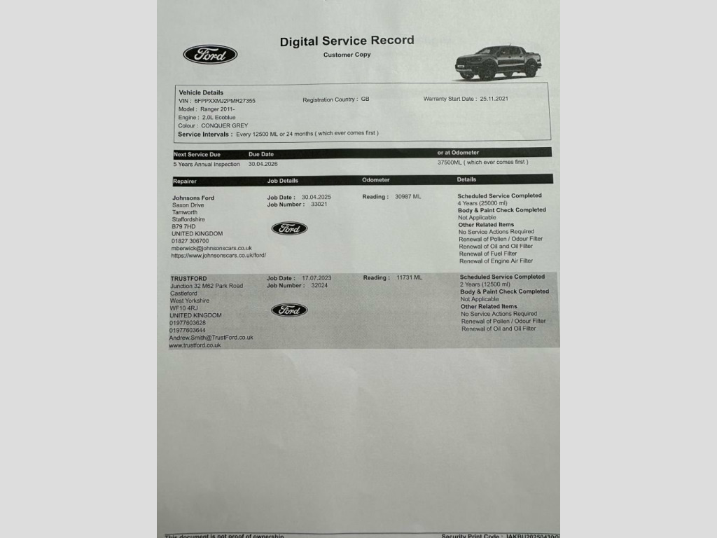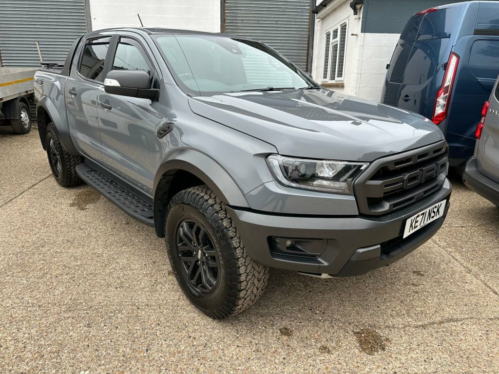 -CHECK OUT OVER 400 5 STAR AUTOTRADER REVIEWS FROM OUR CUSTOMERS-LOW DEPOSIT LOW RATE FINANCE AVAILABLE-INCLUDES 6 MONTHS PARTS AND LABOUR WARRANTY We have for sale an excellent condition ULEZ COMPLIANT 2021 Ford Ranger 2.0 Ecoblue Raptor 4X4 Double Cab 213PS automatic in Storm Grey with Ford main dealer service history In excellent condition throughout the interior and exterior paint and bodywork please review all the images to appreciate just how stunning this Ranger is. Dual zone climate control air conditioning,Touchscreen with Bluetooth phone connection and voice control plus sat nav and music streaming full leather trim,power operated heated seats and windscreen ,alloy wheels,front and rear park assist,power drivers seat,side steps,tow bar,roller shutter Supplied recently serviced by SMC Ford main dealer with MOT until September 2026 no advisories Supplied with 6 months parts and labour warranty plus roadside recovery any independent inspection welcome all vehicles taken in part exchange Delivery available for all the UK mainland and islands 17in Alloy Wheels - 8.5in Dyno Grey, 2 Fobs, 3 Point Inertia Rear Seat Belts, 433 MHz High Power Door Lock Frequency, ABS - ESP-RSC and Terrain Management, Airbags - Curtain, Airbags - Driver and Front Passenger, Airbags - Drivers Knee Bolster, Airbags - Front Side, Airbags - Side Thorax, All Terrain Tyres, Automatic Headlamp Control On-Off, Black Exterior Mirror Finish, Black Front Fender Grill, Black Plastic Front Bumper, Black Radiator Grille, Black Side Steps, Black Tailgate Handle, Cargo Management System, Child Proof Rear Door Locks, Collision Mitigation System, Cruise Control with ASLD -AEB and ISA, Daytime Running Lamps, Double Locking Power Door Lock with Flip, Driver Seat Back Moun