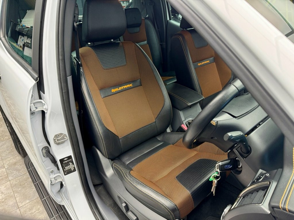 Finished in Frozen White with Black Leather and Brown Cloth Wildtrak Interior throughout. --- FACTORY SPEC --- It boasts some awesome features from the factory including; Towbar - Fixed / Roll Top Lockable with Tailgate Security / Parking Sensor - Rear with Rear View Camera / Seats - Front Heated / Seats - Front 8-Way Power Adjustment with Drivers Seat Lumbar Support / 18in Alloy Wheels / Cruise Control with Adjustable Speed Limiter / Ford SYNC2 / 8in Touchscreen Colour Display / Bluetooth - Audio Streaming / DAB Digital Radio / Satellite Navigation / HLA - Hill Launch Assist / Hill Descent Control / Heated Windscreen / Side Steps - Stainless Steel / Automatic Dimming Rear View Mirror / Tyre Pressure Sensors / Privacy Glass plus so much more. --- SERVICE HISTORY --- This vehicle has been well maintained with Service History Present, 6 services in total. Most recent is due to be completed with a fresh MOT before sale. Towbar - Fixed, Cover - Roll Top Lockable with Tailgate , Frozen White, 18in Alloy Wheels, 8in Touchscreen Colour Display, ABS - Anti-lock Braking System, AUX Audio Input 3.5 mm Jack, Air Conditioning - Dual Zone Electronic , Airbags - Curtain, Airbags - Drivers Knee, Airbags - Front Passenger, Airbags - Passenger Deactivation, Airbags - Side Thorax, Automatic Dimming Rear View Mirror, Automatic Rain Sensing Wipers, Bedliner with Protective Side Walls, Bluetooth - Audio Streaming, Bluetooth Handsfree Phone System, Bumper - Front Body Colour with Sports H, Bumper - Rear Stepped Steel - Titanium, CBC - Cornering Brake Control, Coolbox in Centre Console, Courtesy Light - Ice Blue Ambient Interi