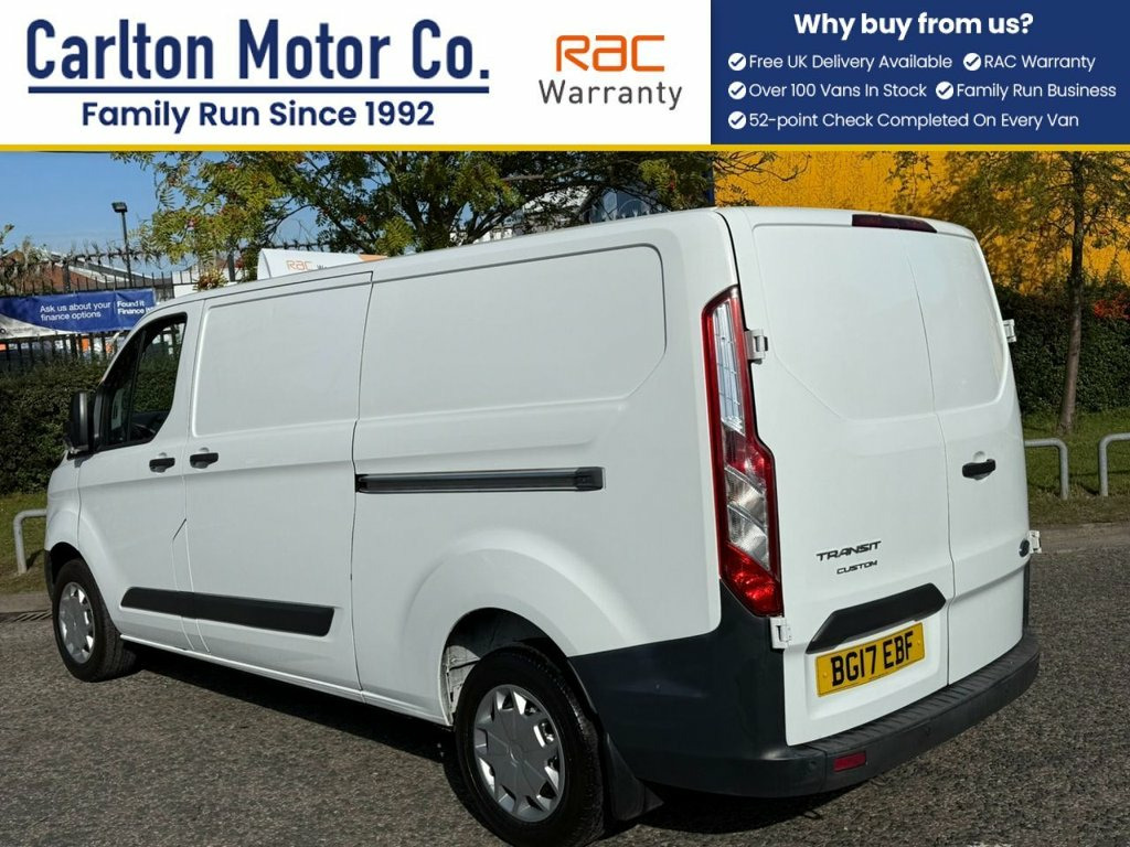 FORD TRANSIT CUSTOM 290 TDCi L2 LWB H1 'Guide me home' headlights, 15" steel wheels, 2 12v sockets, 2 adjustable sunvisors, 3 point seatbelts for all seats, 80 litre fuel tank, ABS, Adjustable steering column, Alternator - 150A, Audio controls mounted on steering wheel, Auto locking on drive-away, Auto relocking, Aux input socket, Courtesy light, Daytime running lights, Diesel particulate filter, Drivers airbag, Easy fuel capless refuelling system, Electric front windows with one touch fa, ESP + EBA, Ford Eco mode, Front mud flaps, Front seatbelt pretensioners, Headlamp levelling, Height adjustable drivers seatbelt mount, Height adjustable front headrests, Intermittent front wash/wipe, Moulded cab headlining, Part body colou