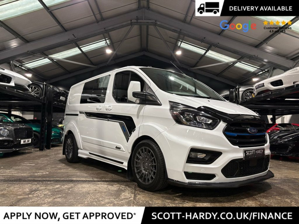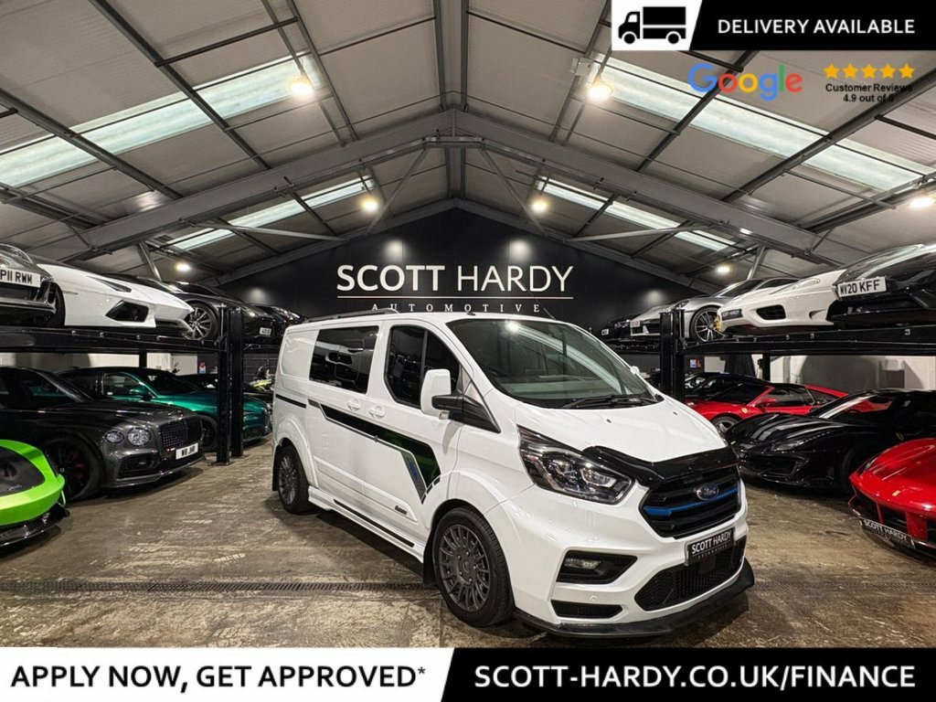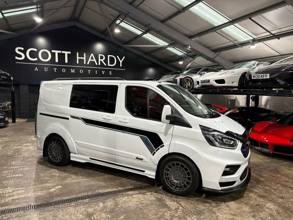 Scott hardy automotive are proud to present this stunning FORD TRANSIT CUSTOM 2.0 320 EcoBlue Limited Crew Van Double Cab MS-RT R-Spec" refers to a high-performance, sport-styled Ford Transit Custom model with motorsport-inspired styling and features, created in collaboration with M-Sport. It is visually distinguished by a unique body kit, including a front splitter, wheel arch extensions, side skirts, and a rear diffuser. The "R-Spec" is an exclusive variant of the MS-RT, often featuring higher-spec components like premium seating, specific wheel and caliper upgrades, and other unique interior and exterior trim. Key features Exterior: Custom front bumper with larger air vents and a low front splitter Wheel arch extensions and side skirts Rear spoiler and an enlarged rear bumper with a diffuser 20-inch OZ Racing alloy wheels with yellow brake calipers are common LED daytime running lights and optional spotlights MS-RT and "R-Spec" decals and a full-colour-coded finish Interior: Sparco bucket seats, often in Alcantara with contrasting stitching Unique steering wheel with carbon inserts M-Sport detailing throughout the cabin Optional features include a full-width load bay liner, LED load light, and a load-through hatch Heated seats and a heated windscreen are also frequently included Performance: Engine: Usually a 2.0-litre EcoBlue diesel engine, often with around 170-185 PS, paired with an 8-speed automatic trans 16in Alloy Wheels, 2nd Remote Key Fob, 2nd Row Privacy Glass - B-Pillar Rearwar, 2nd Row Triple Wide Seat with Underseat , 4-way Adjustable Drivers Seat with Armre, ABS - Anti-lock Braking System, Additional Single AGM Battery, Airbag - Front Passenger, Auto Headlamps and Rain Sensitive Wipers, B Pillar Assist Handle, Body Colour Bumpers and Mirror Housing, Bodyside Mouldings - Body Colour, Complete Rear Trim Board - Half Height, Cruise Control with Adjustable Speed Lim, Door Handles - Body Colour, Drivers Airbag, Drivers Seat Lumbar Adjust, Dual Side Load Doors - Glazed, ESC - Electronic Stability Control, Electric Windows - Front, Flip Opening 2nd Row RHS and LHS Windows, Front Manual Air