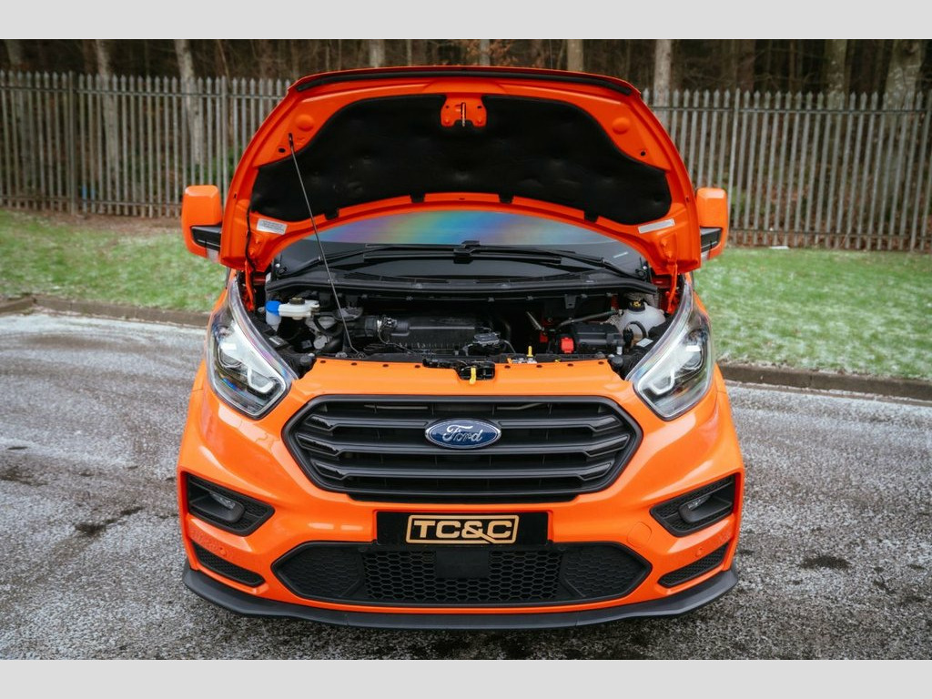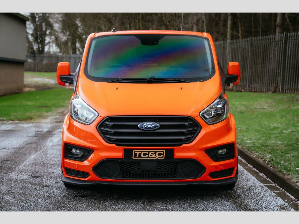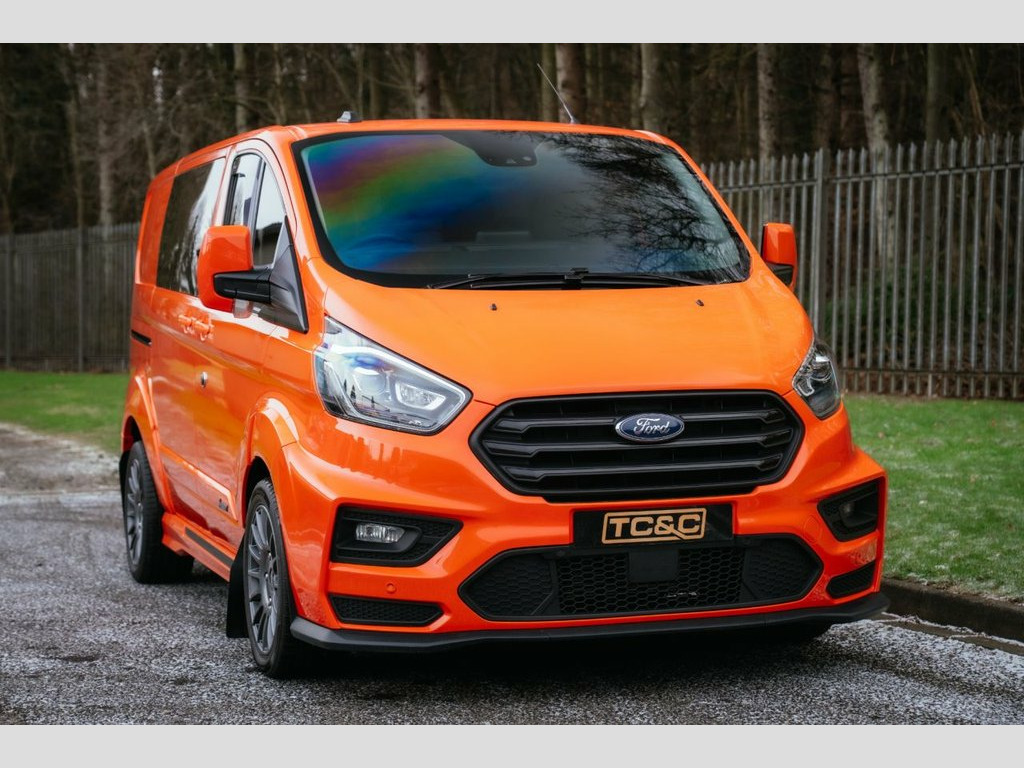 This incredible MS-RT Ford Transit Custom finished in TNT Tango Orange is now available here at TC&C! With only one owner from new, it has been exceptionally well cared for and has just undergone a service! Supplied with two keys, an MOT, and a minimum six-month warranty, this MS-RT Transit boasts an impressive specification including a reversing camera, SATNAV, multi-function steering wheel, heated seats, rear parking sensors, Bluetooth connectivity, heated windscreen, cruise control, automatic headlights, bi-xenon headlights with LED daytime running lights, air conditioning, electric windows, DAB/USB/AUX/Radio player, an on-board computer and more. Externally, the van presents superbly in gleaming TNT Tango Orange, fully colour-coded and enhanced with 18-inch OZ Racing alloy wheels wrapped in matching Hankook tyres. Additional MS-RT styling features include twin side loading doors, converted with tinted windows, black MS-RT exhaust tips, mudflaps and a rear roof spoiler, giving this Transit an unmistakable road presence. Inside, the cabin is in excellent condition and features three half leather and alcantara seats, with blue stitching. Further details include a leather steering wheel with carbon-effect detailing, a factory steel bulkhead, rubber all-weather floor mats and a boarded load bay. 16in Alloy Wheels - Style A, 180 Degree Rear Cargo Check Arms, 2 Interior Grab Handles, 2 Key Fobs, 3 Button Key Fob, 8 Way Adjustable Drivers Seat with Armre, ABS and ESP Plus, Automatic Headlights - Follow Me Home, Automatic Headlights with Rain Sensing W, Body Colour Rear Bumper, Body Coloured Exterior Mirror Finish, Body Coloured Lift - Decklid Exterior Ha, Body Coloured Plastic Front Bumpers, Bodyside Mouldings - Body Colour, Bottle Holder - Twin 2 litre Bottle Capa, Bulkhead - Full Steel with Load Through , Chrome Grille with 3 Bars, Colour Keyed Exterior Pack, Complete Rear Trim Board, Configurable Unlocking - Config 1, Courtesy Lights - Header, Door Handles - Body Colour, Door Open T