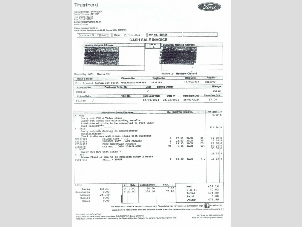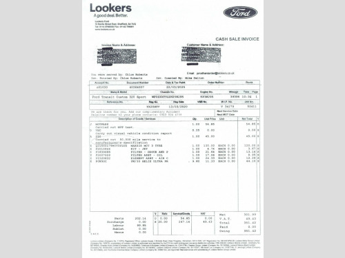 This 2020 Ford Transit Custom Sport Crew Van presents a compelling proposition with its remarkably low mileage of just 52,889 miles for its age. As a 2.0 320 EcoBlue Sport model, it combines a powerful 182 bhp 2.0 litre diesel engine with the practicality of a double cab, seating five people. This Euro 6 compliant van is equipped with ICE Pack 24, featuring SYNC3 audio with navigation, and seamlessly integrates Android Auto and Apple CarPlay for your convenience. Further enhancing its usability are the rear camera and heated seats, alongside a Lane Keeping Alert system that includes automatic headlights. With a towing weight of 2800 kg, it is ready for a variety of tasks. The Ford Transit Custom Sport stands out with its impressive fuel economy, achieving a highlight of 43 mpg, and also boasts low CO2 emissions, indicating a more environmentally conscious choice compared to many similar vehicles. The 182 bhp engine power ensures strong performance, making it a capable and efficient option for both work and leisure. This Sport derivative offers a refined driving experience and a host of features designed to make every journey more comfortable and connected. Comes with 3 Ford Services recorded with the last service carried out March '25 at 39,396 miles. We will send it for a Brand New, Independent, 12 month MOT once it is ordered and it has 2 Keys. See below for its full list of features. Book today to view and test drive. Open 7 days a week. All part exchanges welcome. ICE Pack 24 - SYNC3 Audio with Navigatio, Rear View Camera, Heated Front Seats, Ford SYNC Bluetooth Connection with Voic, Cruise Control, Air Conditioning, Front and Rear Parking Sensors , Quickclear Heated Windscreen, 17in Alloy Wheels, Dual Glazed Side Load Doors , Selectable Drive Mode, Electric Front Windows , Flip Opening 2nd Row RHS and LHS Windows, Ebony Partial Leather Upholstery , 8 Way Adjustable Drivers Seat with Armre, Drivers Seat Lumbar Adjust, Leather-Trimmed Steering Wheel , Trip Computer, 2nd Row Triple Wide Seat with Underseat , LED Load Compartment Light, SportVan Styling Kit, Halogen Projector Headlights with LED Da, Auto Headlamps and Rain Sensitive Wipers, 2nd Row Priva