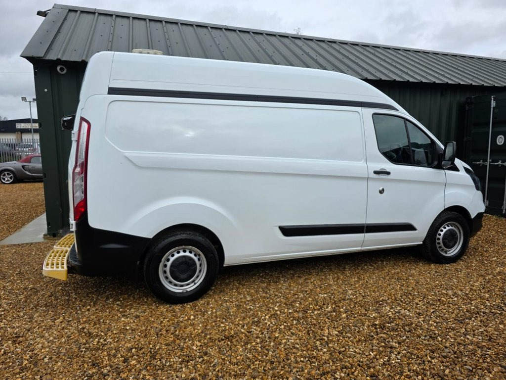 This 2019 Ford Transit Custom presents an exceptional ownership proposition, having been maintained by a single owner from new. This L2 H2 LWB with high roof Euro 6 compliant panel van boasts a robust 2.0 litre EcoBlue diesel engine delivering a capable 130 bhp, ensuring ample power for your needs. With a substantial towing weight of 2800 kg and a generous cargo volume of 7700 litres, it is well equipped for a variety of commercial tasks. The vehicle's provenance is further strengthened by its full service history and a low mileage of just 59919 miles for its age., The Ford Transit Custom 340 Leader is designed for practicality and efficiency. Its Euro 6 emissions rating means it meets current environmental standards, and the 130 bhp engine offers a strong balance of performance and economy. The very low mileage for a 2019 vehicle indicates it has been used sparingly, suggesting less wear and tear compared to other vans of the same age. Combined with a full service history and single owner status, this Transit Custom stands out as a well cared for and reliable choice for any busines, Full service history, Black Cloth interior, Long wheel-base, 3 seats, White, 1 owner, 4-way Adjustable Drivers Seat with Armrest, ABS - Anti-lock Braking System, AM-FM Radio with USB - Bluetooth - Emergency Assistance, Air Conditioning, BOTT Cargo Racking, DIN-ISO Compliant Metal Bulkhead with Load Through Hatch, Doors - Unglazed Rear, Drivers Airbag, ESC - Electronic Stability Control, Elec 16in Steel Wheels, 4-way Adjustable Drivers Seat with Armre, ABS - Anti-lock Braking System, Air Conditioning, AM-FM Radio with USB - Bluetooth - Emerg, DIN-ISO Compliant Metal Bulkhead with Lo, Doors - Unglazed Rear, Drivers Airbag, Electric Windows - Front, ESC - Electronic Stability Control, ICE Pack 12 - Single DIN Sized Audio Uni, Passenger Side Sliding Load Door with Tr, Power Assisted Steering, Remote Central Door Locking with Deadloc, RSC - Roll Stability Control, Side Wind Mitigation, Spare Wheel - Conventional, Steering Column - Rake and Reach Adjustm, Tinted Glass Complete, Trip Computer, Two 12V Power Socket