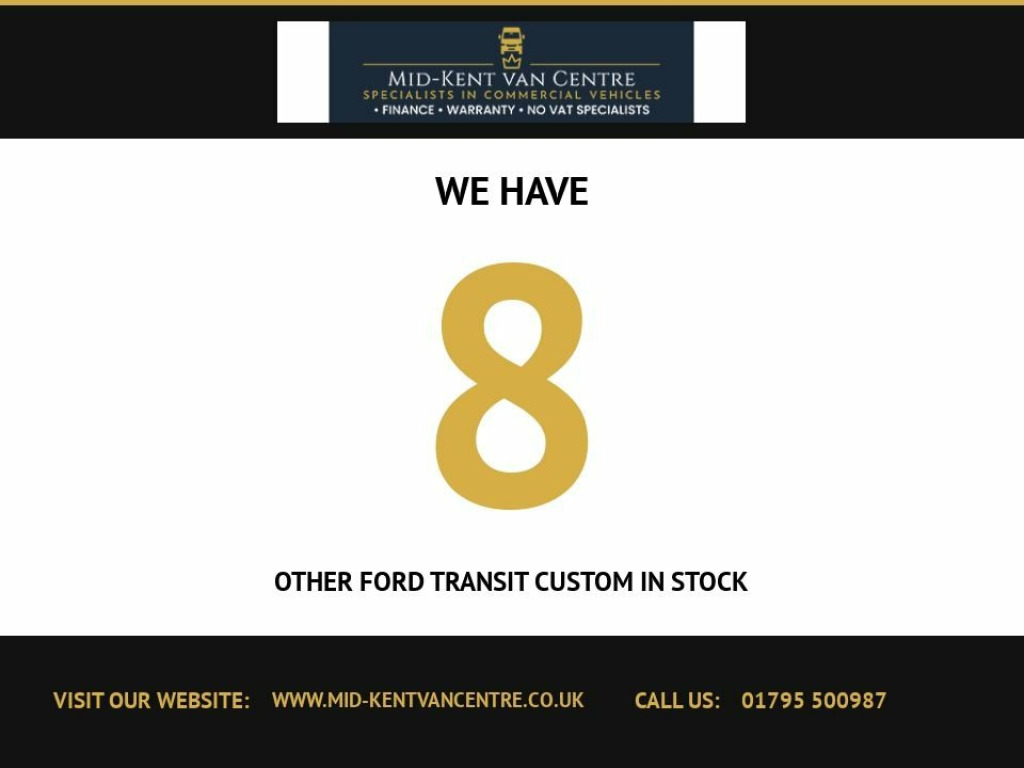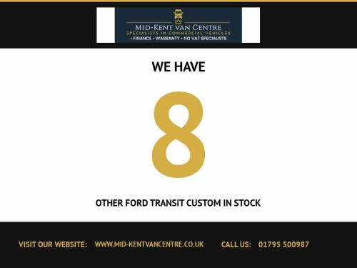 HERE AT MID-KENT VAN CENTRE WE ARE DELIGHTED TO OFFER THIS FORD TRANSIT CUSTOM 2.0 TDCi 270 Limited Panel Van 5dr Diesel Manual L1 H1 (163 g/km, 128 bhp) with around 99,000 miles from new. ****** NO VAT ON THIS VEHICLE ****** ALL VEHICLES ARE SUPPLIED AND SOLD BY US. WE TAKE HUGE PRIDE IN OUR VEHICLES AND FOCUS ON ENSURING OUR CUSTOMERS RECEIVE THE VERY BEST SERVICE. ****** THIS VEHICLES COMES WITH OUR STANDARD 3 MONTH WARRANTY ALONG WITH THE OPTION TO UPGRADE TO OUR PREMIUM 12 MONTH OR 24 MONTH PACKAGE, WHICH INCLUDES BREAKDOWN COVER AND ROADSIDE ASSISTANCE. ****** WE ACCEPT PART EXCHANGE ON ANY VEHICLE AND OFFER GREAT FINANCE PACKAGES. PLEASE CALL A MEMBER OF OUR SALES TEAM NOW FOR MORE INFORMATION. 2nd Remote Key Fob, Alloy Wheels - 6.5x16in, Anti-Lock Braking System (ABS) and Emerg, Auto Wipers with Rain Sensor, Automatic Headlights, Auxiliary Connection Point - 3x60 Amp, L, Body Coloured Bumpers, Bulkhead - Full Width Steel, Unglazed wi, Complete Rear Trim Board - Half Height, Cruise Control, Deadlocks, Driver Seat Armrest, Driver Seat Height Adjustment, Driver Seat Lumbar Adjustment, Drivers Airbag, Easy Clean Load Floor, Electrically-Operated Front Windows with, Electronic Brake-Force Distribution (EBD, Electronic Stability Control (ESC) and R, Ford DAB Audio System w SYNC/Applink (IC, Ford Eco Mode (Driver Information System, Four Front Speakers, Front Manual Air Conditioning, Hea